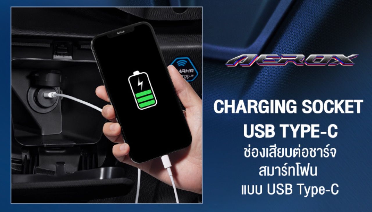 ความสะดวกสบาย All New Yamaha AEROX SP พร้อม Smart Key System ระบบกุญแจรีโมทอัจฉริยะ ช่วยให้การสตาร์ทเครื่องยนต์ ปลดล็อกแฮนด์ เบาะ และฝาถังน้ำมันเป็นเรื่องง่าย รวมถึงช่องเก็บของด้านหน้าพร้อม ช่องชาร์จ USB Type-C และกล่องเก็บของใต้เบาะขนาดใหญ่ 25 ลิตร ที่สามารถเก็บหมวกกันน็อกเต็มใบได้