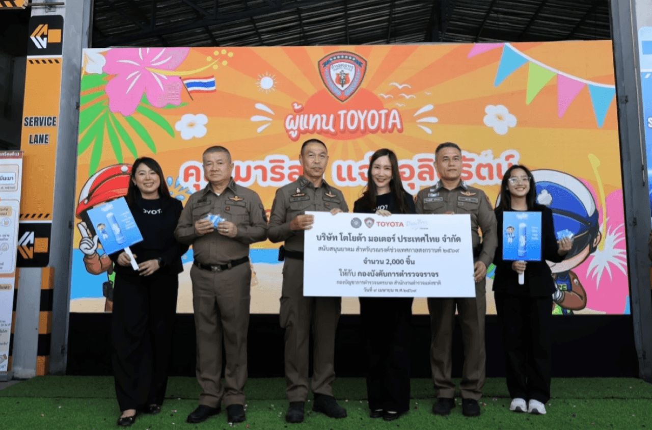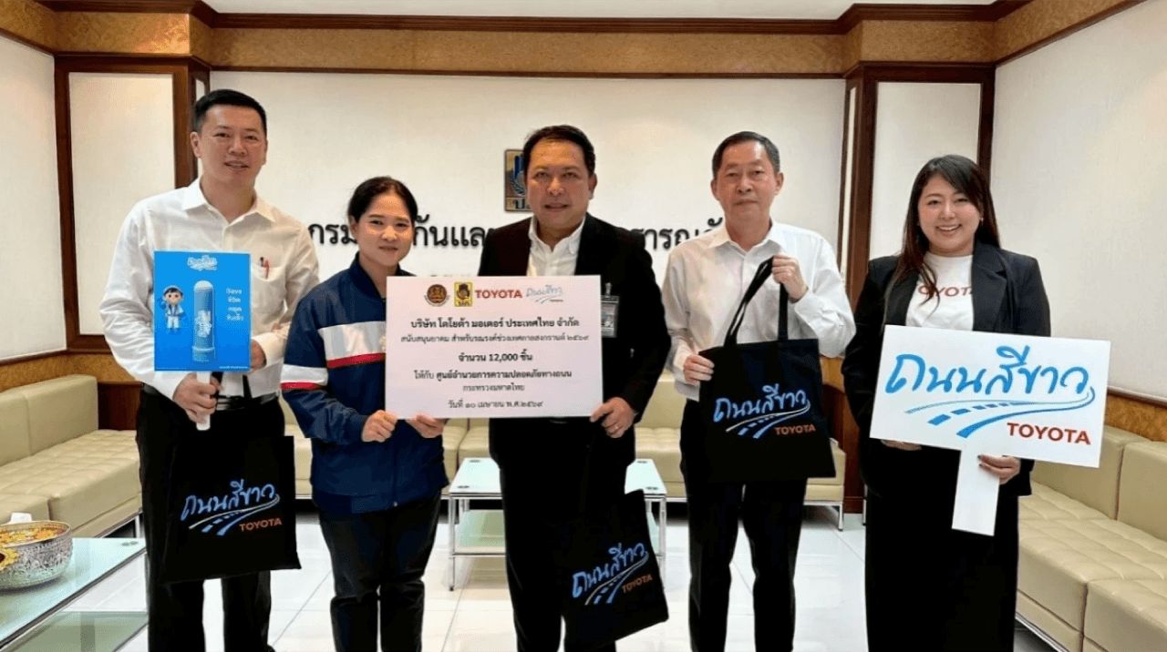 ในช่วงเทศกาลสงกรานต์ปีนี้ Toyota ร่วมมือกับ 3 หน่วยงานหลัก ได้แก่ กรมคุมประพฤติกรมป้องกันและบรรเทาสาธารณภัย (ปภ.) และกองบังคับการตำรวจจราจร (บก.จร.) สนับสนุนอุปกรณ์สำหรับกิจกรรมรณรงค์และการตั้งจุดพักรถใน 8 จังหวัดสำคัญทั่วประเทศ ได้แก่ กรุงเทพมหานคร ฉะเชิงเทรา นครราชสีมา ชลบุรี พระนครศรีอยุธยา นครสวรรค์ ราชบุรี และเพชรบุรี โดยมีการมอบยาดมรวม 30,000 ชิ้น เพื่อแจกจ่ายให้ผู้ขับขี่รู้สึกสดชื่น ผ่อนคลายระหว่างการเดินทาง พร้อมเสื้อกั๊กสะท้อนแสงจำนวน 500 ตัว สำหรับอาสาสมัครในพื้นที่ เพื่อเสริมความปลอดภัยตลอดช่วงการเดินทาง