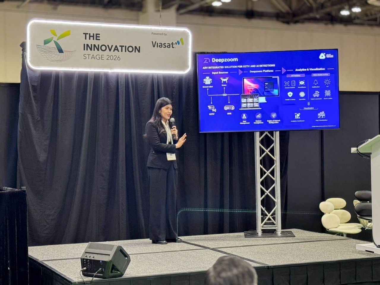 ขณะที่ในส่วนของโซน Digital Construction ทาง ARV ได้นำเสนอแพลตฟอร์ม Deepzoom โดยอาศัยเทคโนโลยี AI Computer Vision ขั้นสูงที่ใช้เทคโนโลยี Multi-Target Multi-Camera Tracking (MTMC) ระบบวิเคราะห์ข้อมูลเชิงปฏิบัติการที่แม่นยำ เหมาะสำหรับการจัดการโรงงานและ Smart City