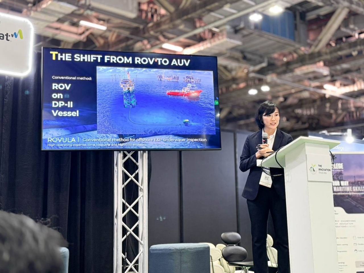 นางสาวมยุรี แดงประสิทธิพร, Sales Executive บริษัท โรวูล่า (ประเทศไทย) จำกัด หรือ Rovula ได้แสดงวิสัยทัศน์ต่ออนาคตของการตรวจสอบท่อใต้ทะเลด้วยเทคโนโลยีล้ำสมัย โดยระบุว่า ท่อส่งปิโตรเลียมใต้ทะเลเป็นหนึ่งในแกนหลักสำคัญของโครงสร้างพื้นฐานด้านพลังงานในภูมิภาคอาเซียน แต่การตรวจสอบด้วยวิธีดั้งเดิมนั้นมีต้นทุนการดำเนินงานค่อนข้างสูงและแฝงความเสี่ยงต่อผู้ปฏิบัติงาน
