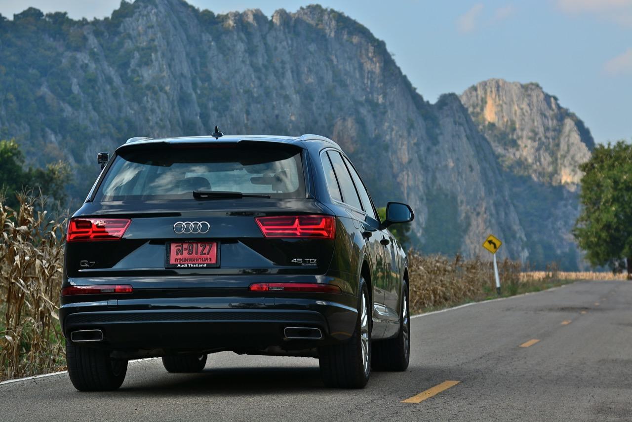 Q7 รุ่นเครื่องดีเซล V6 Biturbo มีกำลัง 249 แรงม้า กัแรงบิดที่มากถึง 600 นิวตัน-เมตร น้ำหนักแค่ 1.9 ตันทั้งๆ ที่ตัวโตบิ๊กบึ้มกว้าง 2 เมตร ยาว 5 เมตร เร่งความเร็วจาก 0-100 ได้ในเวลาเพียงแค่ 6.9 วินาทีเท่านั้น! ราคา 4,799,000 บาท แม้จะโดนตัดออปชั่นบางอย่างออกไปเพื่อทำราคาสู้กับ BMW และ Mercedes Benz แต่ Q7 ก็ยังคงเหนือชั้นกว่าในด้านการขับขี่ควบคุมและความสบายหลังพวงมาลัย
