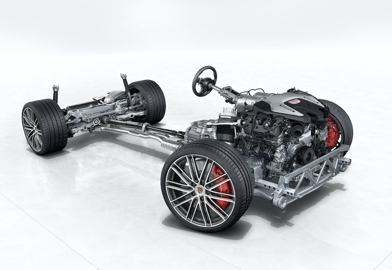 ระบบขับเคลื่อน 4 ล้อ all-wheel drive ใน Panamera Turbo S E-Hybrid Sport Turismo ที่ถ่ายทอดความเป็นเลิศมาจากรถซุปเปอร์สปอร์ต Porsche 918 Spyder เครื่องยนต์เบนซิน V8 เทอร์โบคู่ (550 แรงม้า/404 กิโลวัตต์) ทำงานร่วมกับชุดมอเตอร์ไฟฟ้า (136 แรงม้า/100 กิโลวัตต์) ก่อกำเนิดแรงบิดมหาศาลมากถึง 850 นิวตันเมตร ตั้งแต่รอบการทำงานต่ำเพียง 1,400 รอบต่อนาที