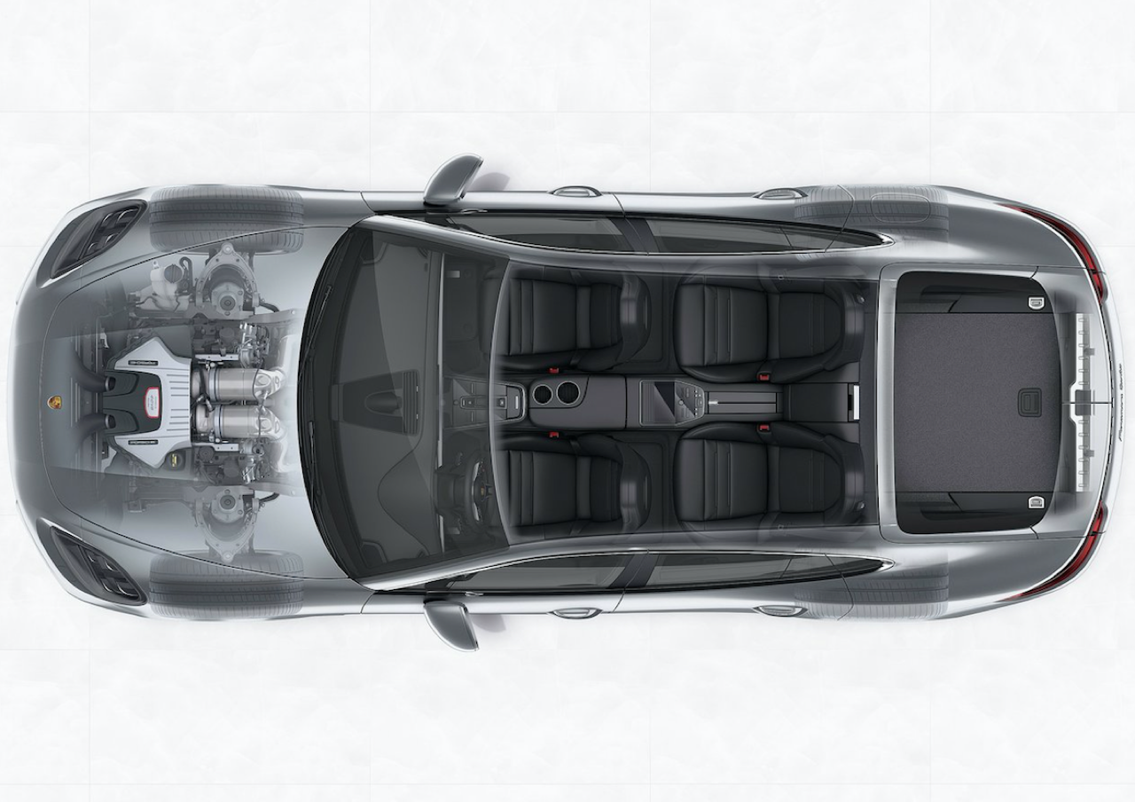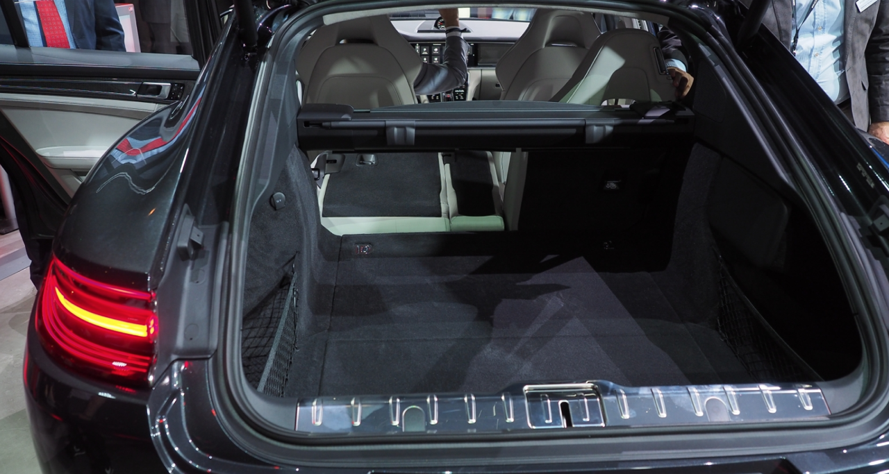 ส่วน Panamera 4 E-Hybrid Sport Turismo อยู่ที่ 425 ลิตร มากกว่ารุ่นตัวถังสปอร์ตซาลูนถึง 20 ลิตร สามารถเพิ่มปริมาตรความจุได้อีก 50 ลิตร เมื่อทำการพับเบาะหลังลง พนักพิงเบาะหลังสามารถปรับเปลี่ยนตำแหน่งการพับได้อย่างอิสระ (40:20:40) ระบบการปลดล็อกเบาะหลังแบบไฟฟ้า ภายในห้องเก็บสัมภาระท้ายรถ เมื่อพับพนักพิงเบาะหลังลงทั้งหมด จะเพิ่มปริมาตรความจุได้ถึง 1,390 ลิตร สำหรับ Panamera 4 E-Hybrid Sport Turismo อยู่ที่ 1,295 ลิตร