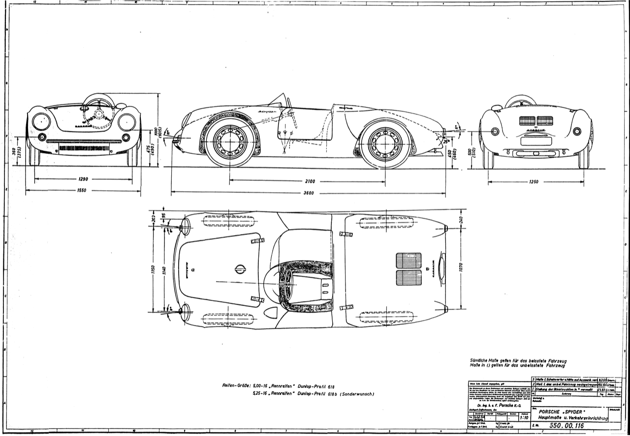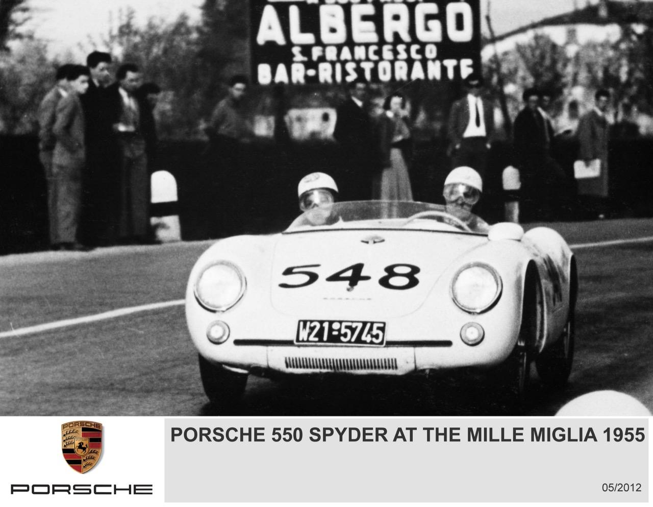 รถ PORSCHE 550 SPYDER สร้างโดยบริษัท PORSCHE มีลักษณะเป็นรถสปอร์ตเปิดประทุนคันเล็ก (ROADSTER) โดยมีต้นแบบมาจากรถ PORSCHE 547 และส่งออกขายในปี ค.ศ.1954 ซึ่งผลิตจำนวนน้อยมาก โดยมีวัตถุประสงค์เพื่อใช้ในการแข่งขันรายการแข่งรถใหญ่ๆ ในยุโรป เช่น LEMANS ซึ่งเป็นการแข่งรถแบบมาราธอนเพื่อแสดงให้เห็นถึงความแข็งแรงทนทานของทั้งเครื่องยนต์และตัวผู้ขับรถ PORSCHE 550 SPYDER ออกแบบโดย ERWIN KOMENDA สร้างขึ้นเพียง 74 คันในโลกเท่านั้น โดยมีความยาว 140 นิ้ว กว้าง 51 นิ้ว และสูงเพียง 40 นิ้วเท่านั้น รถสปอร์ตเครื่องวางกลางรุ่น 550 มีน้ำหนัก 1,480 ปอนด์ และสามารถจุน้ำมันได้ 22 แกลลอน วางเครื่องยนต์ไว้กลางลำตัวรถ โดยใช้เครื่องยนต์ขนาดความจุ 1,490 C.C. 110 แรงม้า ระบายความร้อนด้วยอากาศ สามารถเร่งจาก 0-100 กิโลเมตรได้ใน 7.2 วินาที และมีความเร็วสูงสุด 129 ไมล์ ต่อชั่วโมง คำพูดสุดท้ายของดาราวัยรุ่นขวัญใจอเมริกันชนและคนทั่วโลกในยุค 1950 ก่อนที่จะหมดลมหายใจที่โรงพยาบาล คือคำว่า "เขาควรจะหยุด...เขามองเห็นเรา"