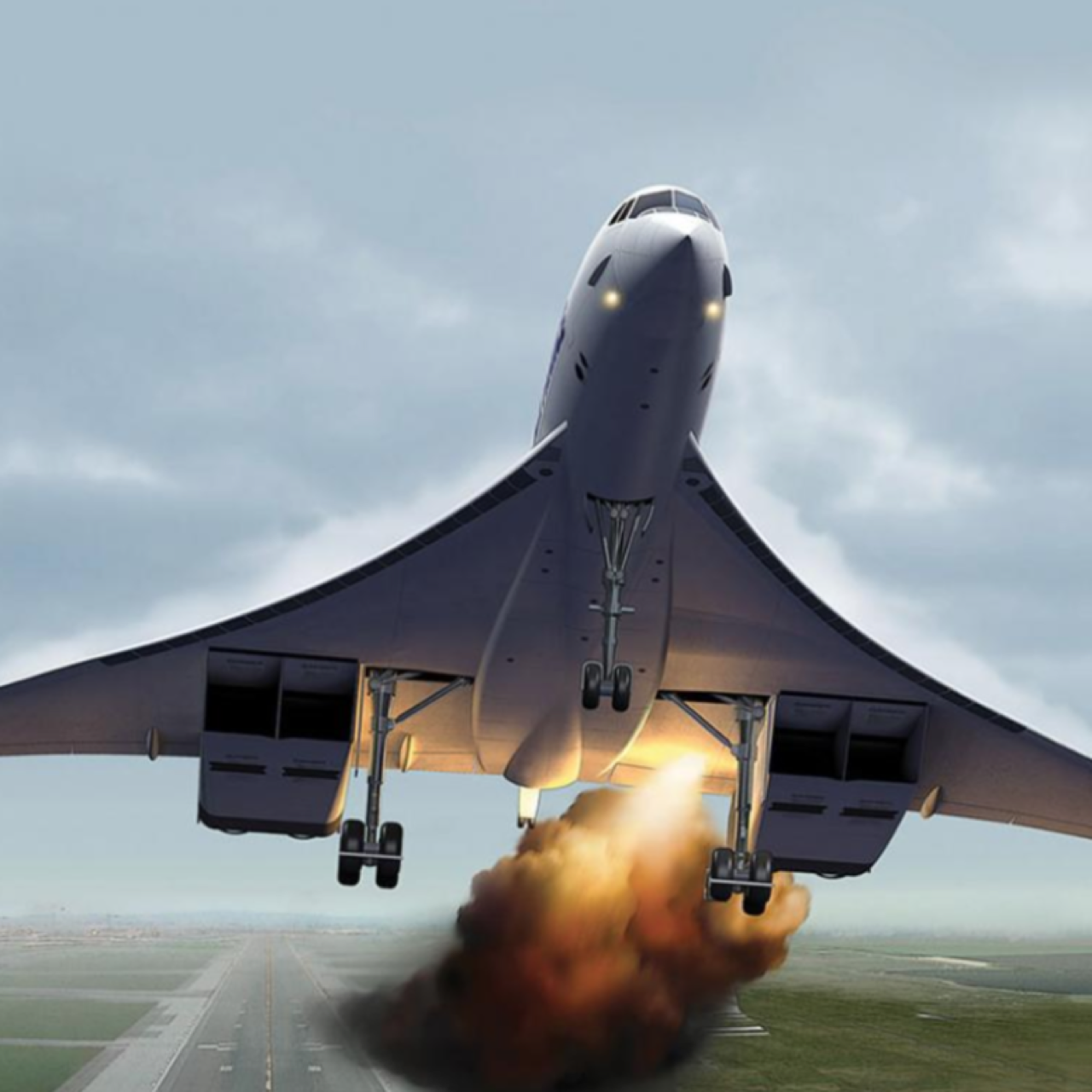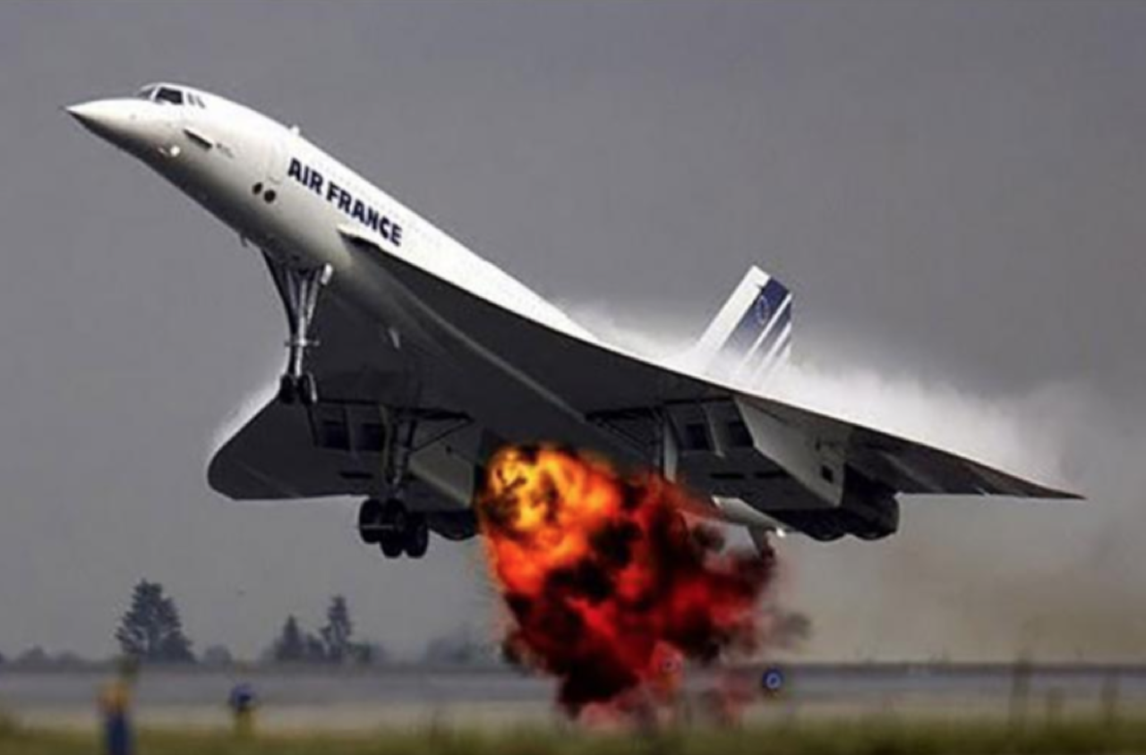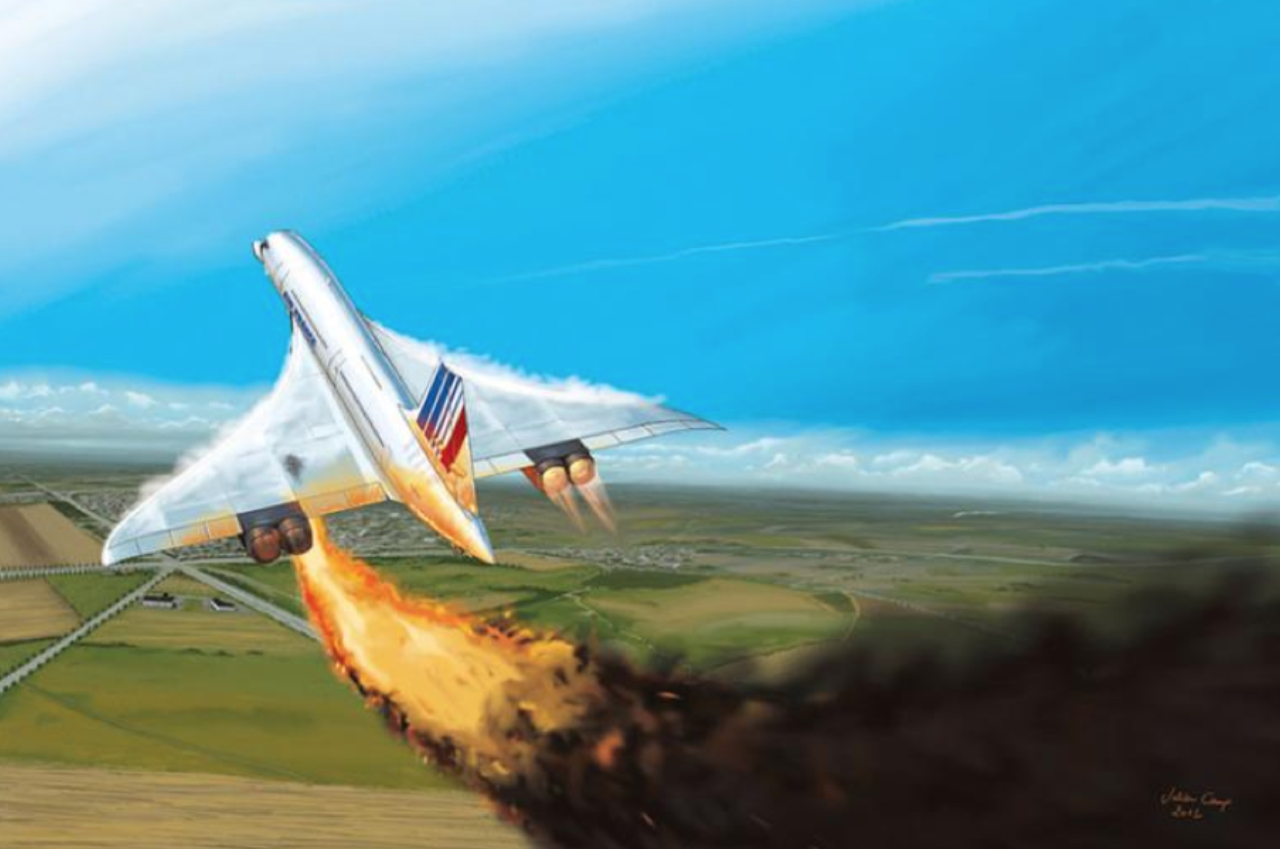 เครื่องยนต์ Rolls-Royce /Snecma Oylmpus 593 หมายเลข 1 และ 2 สูญเสียกำลังในที่สุด เนื่องจากเพลิงไหม้ เครื่อง Concorde เชิดหัวสูงขึ้นและเอียง เนื่องจากแรงขับของเครื่องยนต์ทั้งสี่ไม่สมดุลกัน หลังจากนั้นไม่กี่วินาที เครื่องยนต์หมายเลข 3-4 ก็มีกำลังลดลงอย่างรวดเร็วจากท่าทางการบินที่ผิดปกติ ทำให้อากาศเข้าสู่เครื่องยนต์น้อยจนเกินไป Concorde เลขทะเบียน F-BTSC ตกกระแทกเข้ากับพื้นดินอย่างรุนแรง และชนเข้าไปในอาคารขนาดเล็กที่ใช้เป็นโรงแรม กัปตัน ลูกเรือและผู้โดยสารเสียชีวิตทั้งหมด 109 คน และทำให้มีผู้เสียชีวิตบนพื้นอีก 4 คน จากเหตุการณ์เลวร้ายที่เกิดขึ้นกับเครื่องบิน Concorde เพียงลำเดียวจากจำนวนทั้งหมด 20 ลำ (ซึ่งสาเหตุของอุบัติเหตุที่เกิดขึ้นในครั้งนี้ไม่เกี่ยวข้องกับความบกพร่อง ล้มเหลวของระบบ หรือพบว่ามีความผิดพลาดใดๆ กับตัวโครงสร้างและเครื่องยนต์ของมันทั้งสิ้น) ประกอบกับตัวเครื่องบินที่เหลืออยู่มีอายุการใช้งานยาวนานกว่า 30 ปี การบูรณะปรับปรุงโครงสร้างของเครื่องที่เหลืออยู่จะต้องใช้งบประมาณมหาศาล และปัญหาราคาน้ำมันเชื้อเพลิงที่พุ่งสูงขึ้นมาก ทำให้สายการบินจำเป็นต้องยุติเส้นทางการบินทั้งหมด และปลดระวางเครื่อง Concorde ทั้งหมดลงให้กลายเป็นเพียงตำนานแห่งความเร็วของการเดินทางบนอากาศในยุค Supersonic.