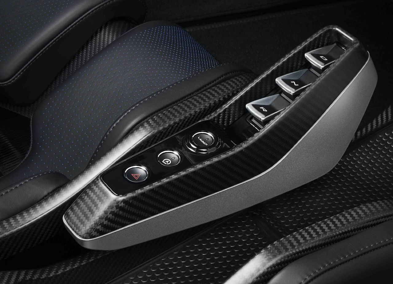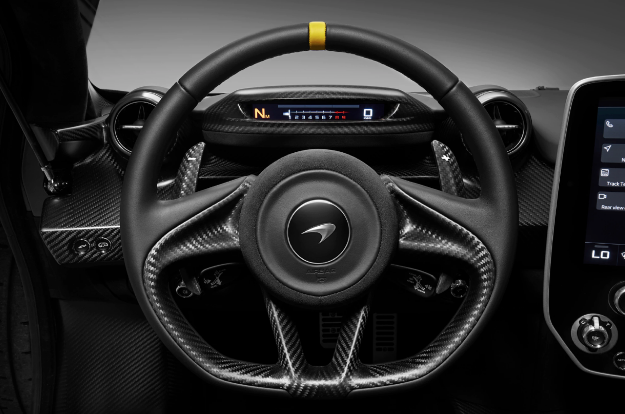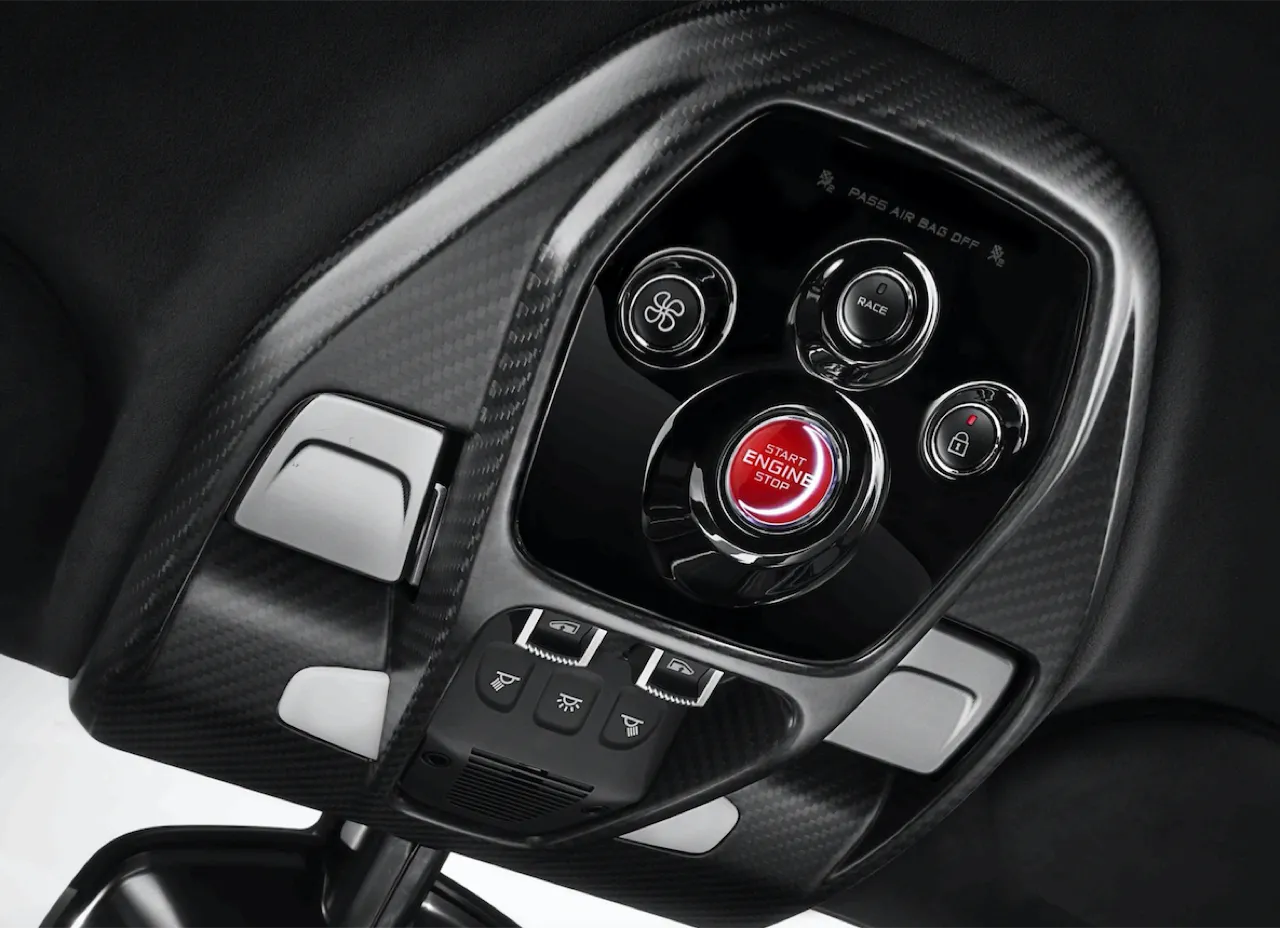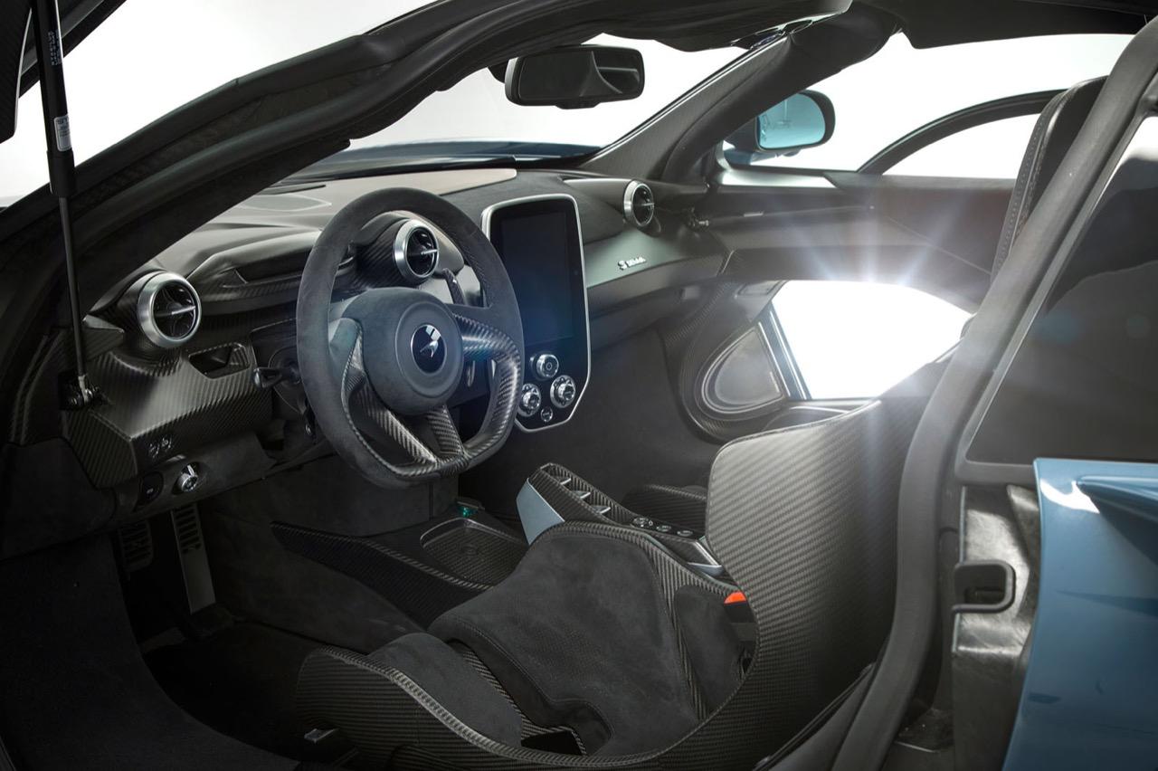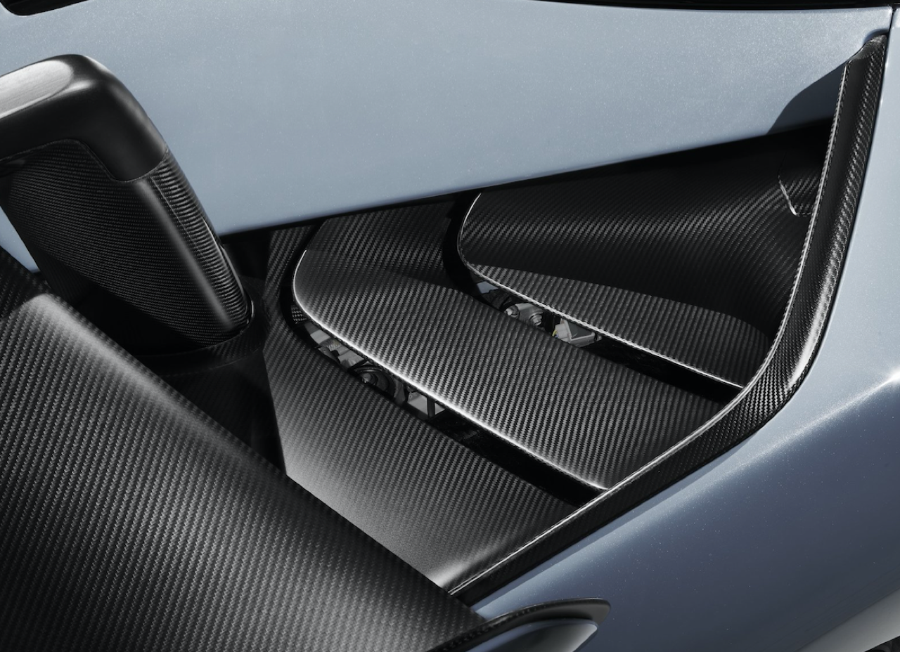 เบาะนั่งคนขับสามารถเลื่อนปรับได้ด้วยรางโดยแป้นเหยียบซึ่งติดตั้งในตำแหน่งตายตัว นับเป็นโซลูชั่นที่ดีที่สุดในการลดความซับซ้อนของชิ้นส่วนและน้ำหนัก ส่วนการเปลี่ยนโหมดการขับขี่ทั้งแบบ Drive, Neutral และ Reverse ติดตั้งอยู่ตรงที่นั่งของผู้ขับและจะเลื่อนไปตามการปรับตำแหน่งของเบาะ กลไกการเปิดประตูและสวิตช์หน้าต่างถูกย้ายมาอยู่กลางตัวรถบนแผงควบคุมที่ติดกับหลังคา พวงมาลัยแบบสามแกนซึ่งตกแต่งด้วยหนัง Alcantara® ปราศจากปุ่มและสวิตช์ใด ๆ เพื่อให้ผู้ขับมีสมาธิอยู่กับการขับได้อย่างเต็มที่ การจับพวงมาลัยได้รับการปรับปรุงให้กระชับถนัดมือยิ่งขึ้นไม่ว่าจะสวมหรือไม่สวมใส่ถุงมือ เพื่อเพิ่มสมรรถนะการขับขี่ในสนามแข่งขัน อีกทั้งพวงมาลัยยังถูกออกแบบให้มีดีไซน์เหมือนกับล้อรถอีกด้วย พวงมาลัยติดตั้งแป้นเปลี่ยนเกียร์คาร์บอนไฟเบอร์ทำผิวแบบซาติน ที่เชื่อมต่อกับสวิตช์แบบกระดกด้านหลังพวงมาลัยอย่างกลมกลืน