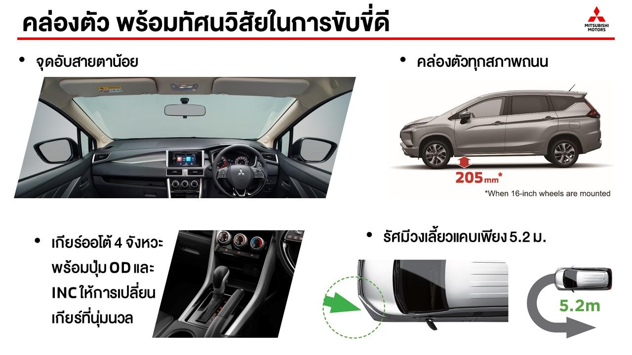 Mitsubishi Xpander รถครอบครัวอเนกประสงค์เอ็มพีวีผสมครอสโอเวอร์ เป็นเซกเมนต์รถยนต์ที่บุกเบิกขึ้นใหม่ในประเทศไทยโดย บริษัท Mitsubishi Motor Thailand มาพร้อมรูปลักษณ์ล้ำอนาคต ด้วยเอกลักษณ์การออกแบบ Advanced ‘Dynamic Shield’ รวมถึงประสิทธิภาพการขับขี่ที่รองรับการใช้งานในชีวิตประจำวัน ห้องโดยสารมีขนาดใหญ่เมื่อเทียบกับคู่แข่งในระดับเดียวกัน