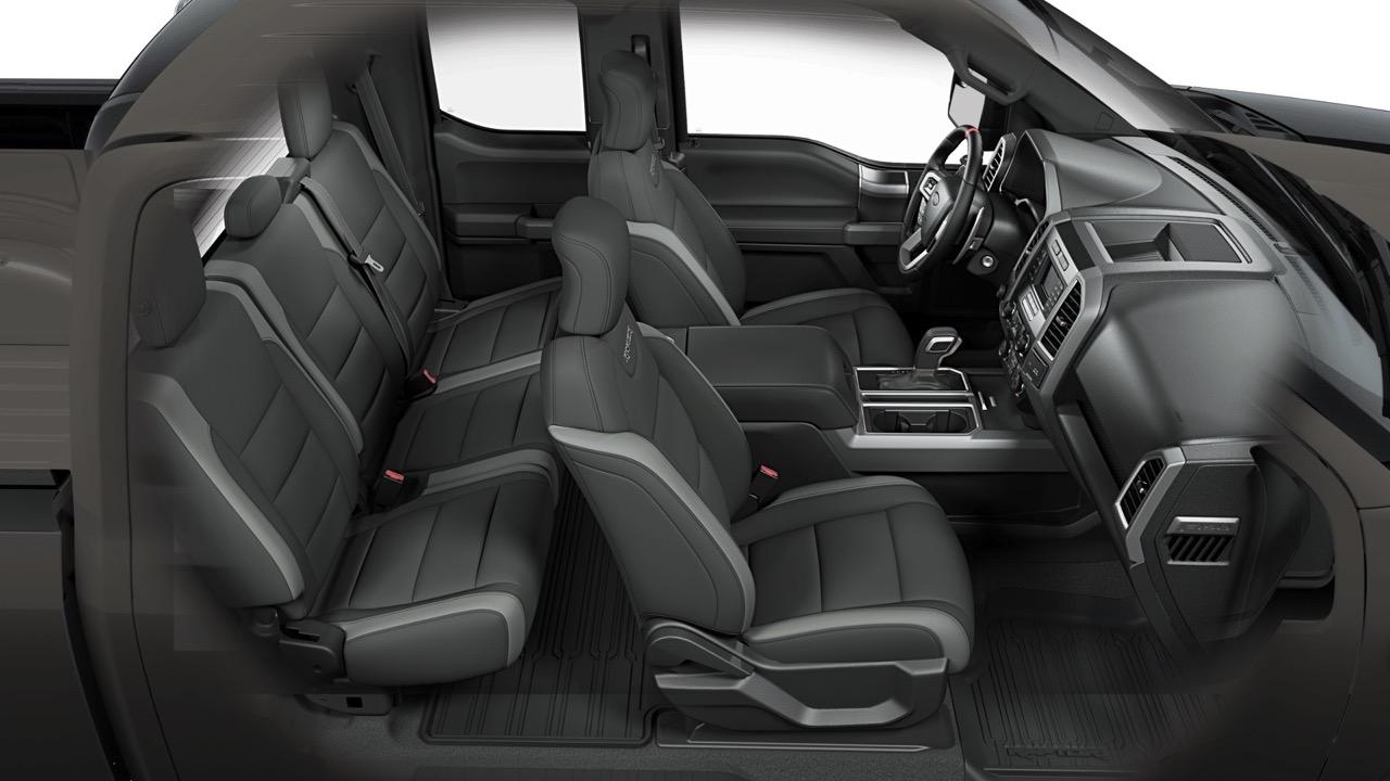 ภายในแม้จะแข็งทื่อและอุดมไปด้วยพลาสติกเกรดต่ำแต่ดูโหดสมกับตัวตนของปิกอัพสมรรถนะสูงภายในของ Ford F-150 Raptor Super Crew 2017 ตกแต่งสไตล์มะกันที่ยังดูโบราณบานบุรี เอาเข้าจริงๆ ภายในของ Ranger รุ่นใหม่ยังทำออกมาดูดีกว่าเห็นๆ Ford ยกระดับความกว้างของห้องโดยสารรองรับคนอเมริกันที่ส่วนใหญ่ตัวอ้วนยังกับหมี โดยลงมือปรับปรุงบานประตูและตำแหน่งเบาะนั่งหลังใหม่ให้มีขนาดที่ใหญ่และกว้างมากขึ้น