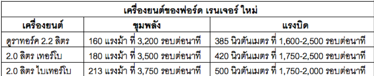 ข้อมูลของฟอร์ด เรนเจอร์ รุ่นปรับโฉม ปี 2018