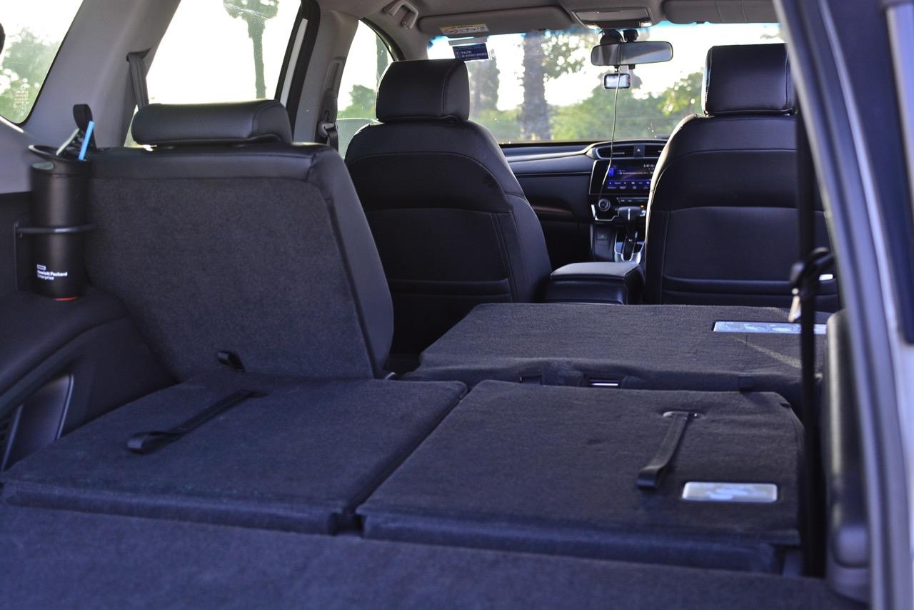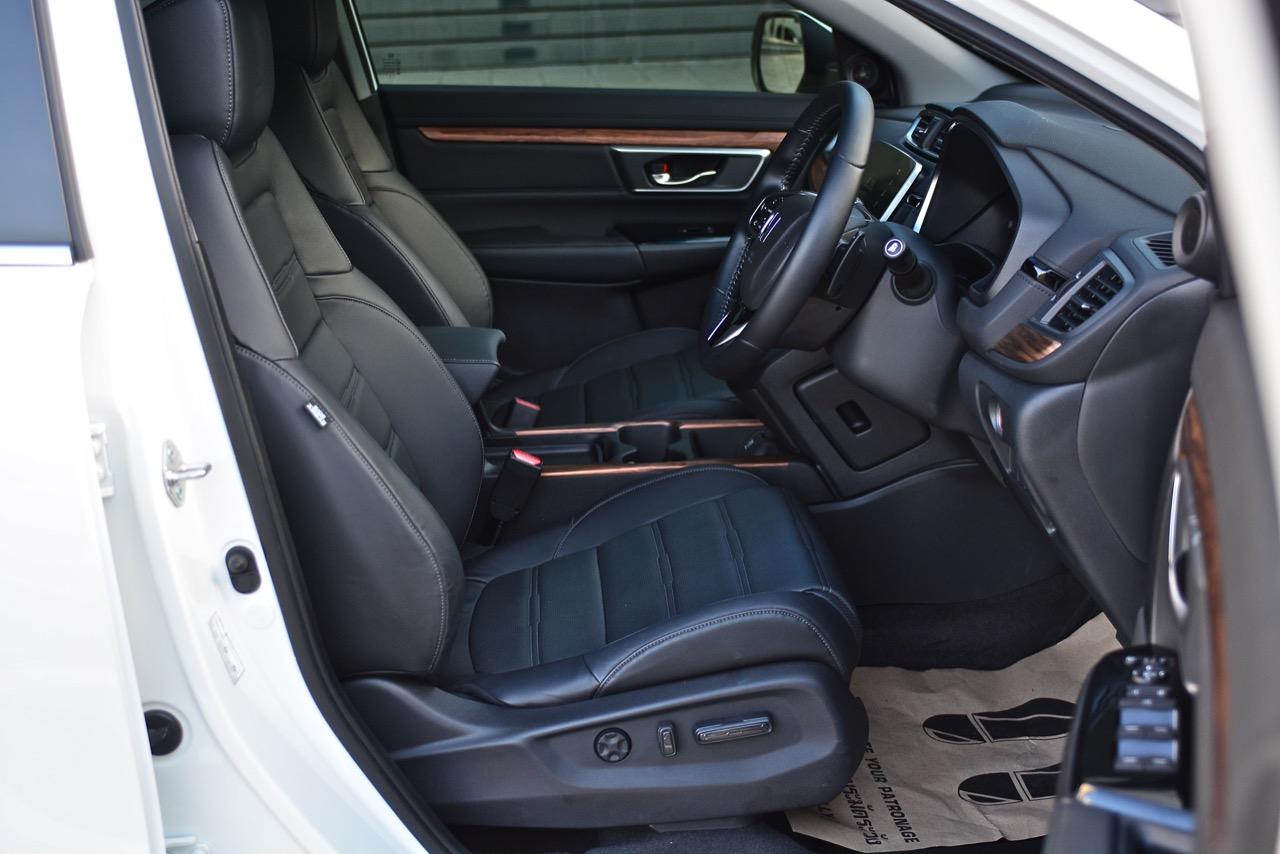 ห้องโดยสารของ New CR-V ไม่ว่าจะเป็นรุ่นดีเซลหรือเบนซินมีความโอ่โถง มีพื้นที่เหลือเฟือสำหรับผู้โดยสารและคนขับรวม 7 ที่นั่ง ข้อสังเกตก็คือ เบาะแถวที่ 3 ที่เพิ่มเข้ามาเหมาะกับเด็กตัวเล็กมากกว่าจะให้ผู้ใหญ่ตัวสูงนั่งโดยสาร หากมีสัมภาระเยอะและมีผู้โดยสารแค่ 4 คน เบาะแถว 3 ที่สามารถพับลงกับพื้นเพื่อเปิดพื้นที่สำหรับการใส่สัมภาระช่วยเปิดพื้นที่ได้มากกว่าปกติ ส่วนเบาะแถว 2 มีการออกแบบอย่างชาญฉลาดให้สามารถพับเพื่อเปิดพื้นที่ สำหรับการยัดรถจักรยานได้เหมือนกันโดยสามารถยัดเสือหมอบไซส์ 54 แบบไม่ต้องถอดล้อกันเลยทีเดียวแต่ก็จะเสียพื้นที่โดยสารด้านหลังไปทั้งหมด เบาะคู่หน้าปรับไฟฟ้า เบาะคนขับปรับไฟฟ้า 8 ทิศทาง ส่วนเบาะผู้โดยสารตอนหน้าก็ยังปรับไฟฟ้า 4 ทิศทาง จุดเด่นอีกอย่างก็คือ เบาะหุ้มหนังนั่งสบายขึ้นเยอะ ถือว่าทำเบาะคู่หน้าออกมาได้ดี (มาก) นั่งขับหรือนั่งโดยสารได้ทั้่งวัน โดยเฉพาะพนักพิงศีรษะที่ออกแบบให้เข้ากับสรีระของคนขับไม่ว่าจะเตี้ยอ้วนสั้นหรือสูงโย่ง เมื่อเอนหัวพิงลงไปก็พบกับความนุ่มของฟองน้ำที่ใช้รองไม่ดันจนหัวชะโงกไปข้างหน้าเหมือนรถบางรุ่น!
