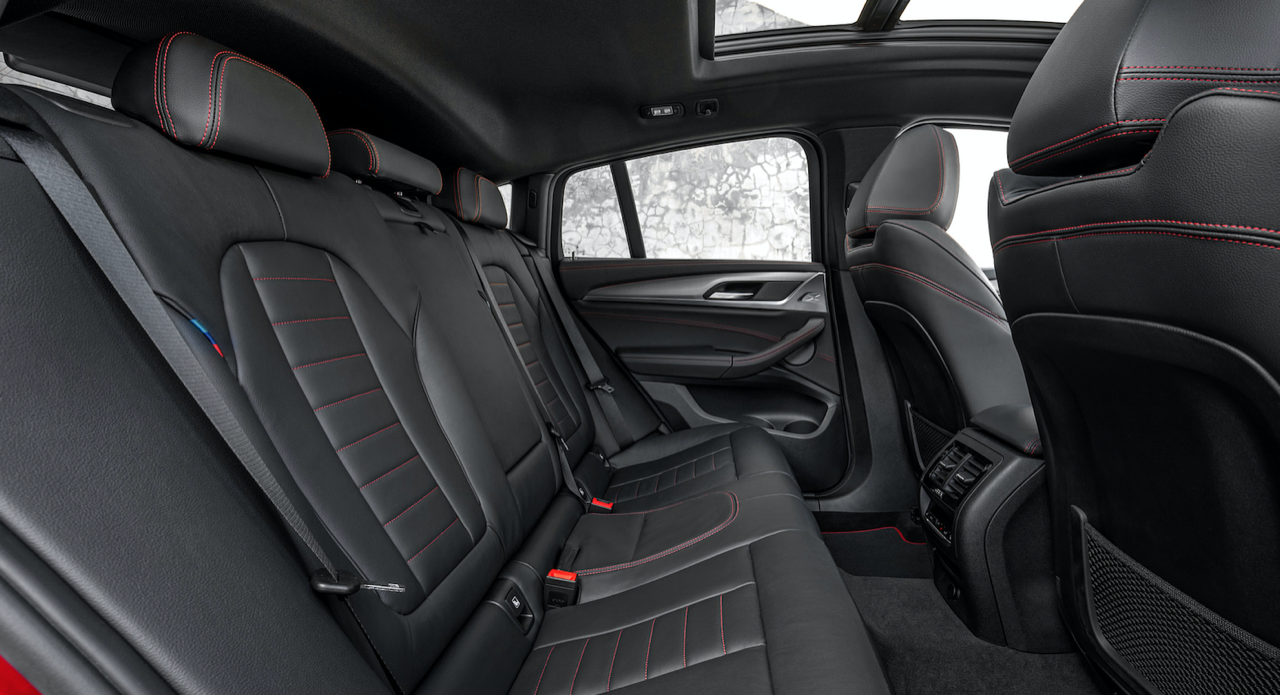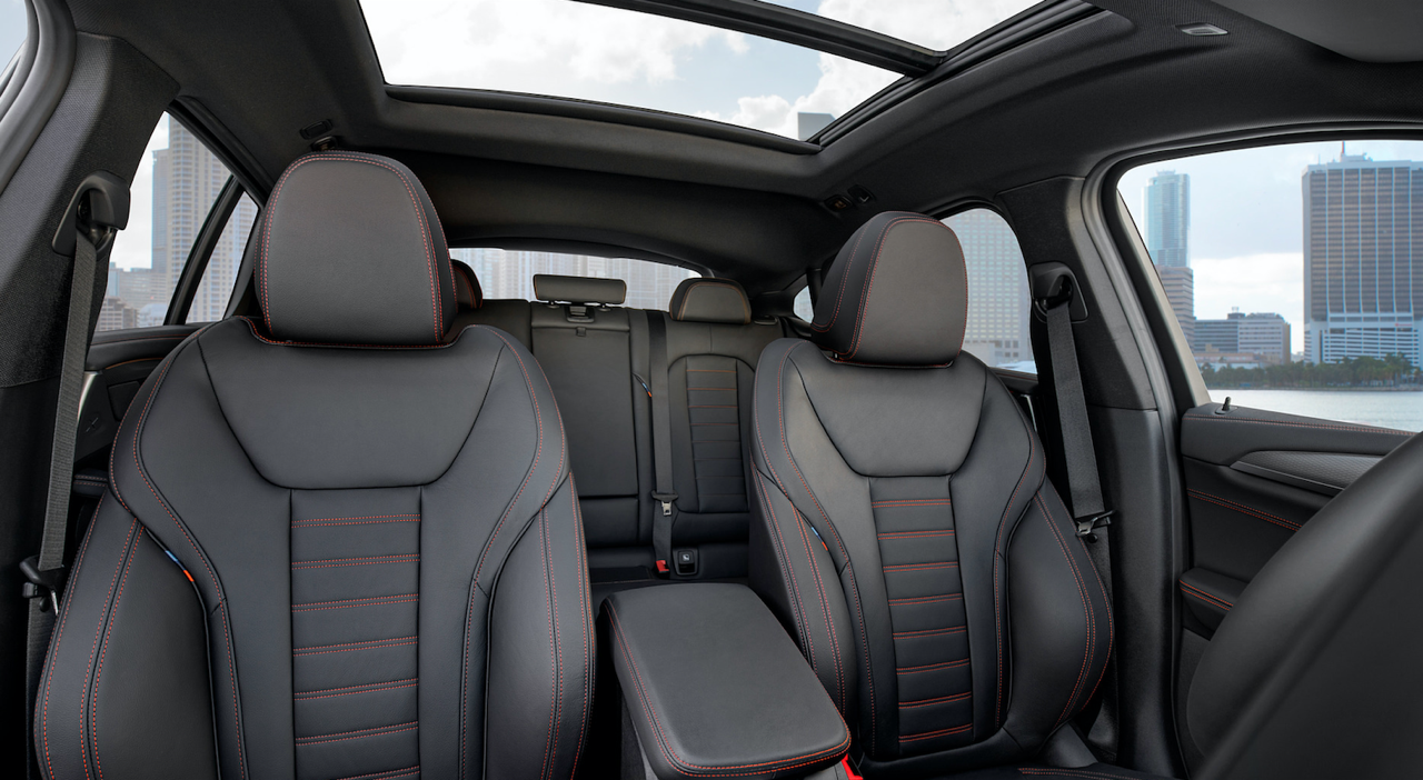 ห้องโดยสารของ BMW New X4 xDrive20d M Sport ผสมภาพลักษณ์ของความแข็งแกร่งเข้ากับความหรูหราของรถลุยผู้บริหาร ภายในออกแบบโดยคำนึงถึงผู้ขับเป็นหลัก เบาะที่นั่งแบบสปอร์ต เบาะรองเข่าออกแบบใหม่ หลังคากระจกแบบพาโนรามิก พวงมาลัยมัลติฟังก์ชั่น M Sport เบาะหนังแท้ Vernasca แผงคอนโซลหุ้มหนัง Sensatec ตกแต่งภายในด้วย Aluminium Rhombicle พร้อมแถบโครเมียม