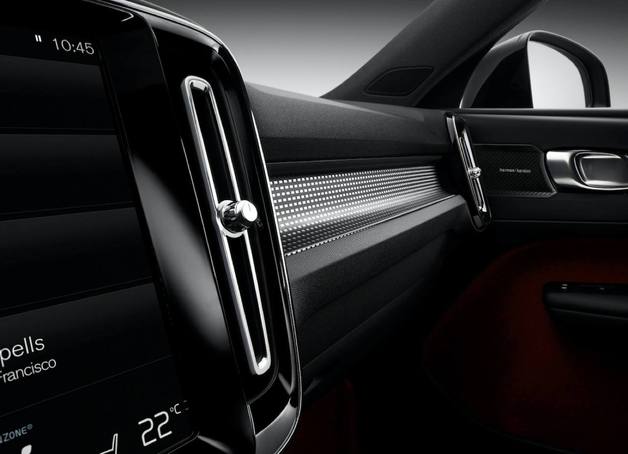 การตกแต่งห้องโดยสารถูกติดตั้งด้วยระบบแสงสว่างรุ่นใหม่ เพื่อสร้างบรรยากาศภายในรถให้รู้สึกอบอุ่นและสวยงามแบบร่วมสมัย โดยใช้ไฟแอลอีดีเพื่อขับความเงางามของการตกแต่งด้วยอลูมิเนียมให้โดดเด่นยิ่งขึ้น การผสมผสานที่ลงตัวนี้ช่วยสร้างความรู้สึกตื่นตัว สร้างสรรค์ และเปี่ยมด้วยชีวิตชีวา ซึ่งพบได้ใน XC40 เท่านั้น