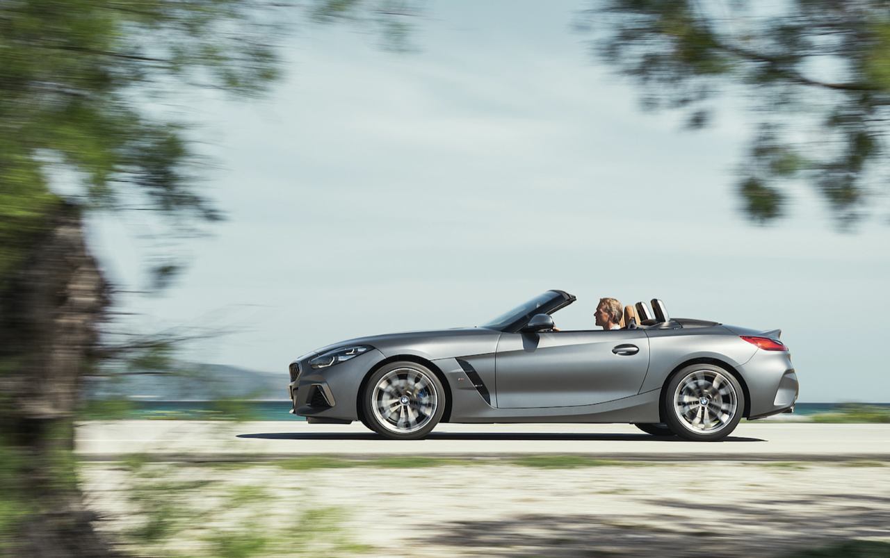 BMW Z4 รุ่นใหม่ ใชัรหัสตัวถัง G29 รุ่น M40i มีความสวยงามดุดันมากกว่ารุ่นที่แล้ว ชุดแต่ง M Performance ไล่จากกระจังหน้าแบบใหม่ที่มีขนาดใหญ่ขึ้น ไฟหน้า Adaptive LED พร้อมไฟหรี่ LED Daytime Running Lights สปอยเลอร์หน้า ล้ออัลลอยลาย M ขอบ 19 นิ้ว แก้มข้างแปะตราสัญลักษณ์ M-Power ฝากระโปรงหน้าอะลูมิเนียมยาวเหยียดพร้อมส่วนท้ายที่สั้นกุดในสไตล์รถโรสเตอร์สองที่นั้น ทรงด้านข้างดุดันด้วยเส้นข้างตัวถังที่ลากผ่านบานประตูโดยยกแนวของเส้นข้างไปจนถึงขอบไฟท้าย ฝาท้ายแบบใหม่ที่สอดรับกับไฟท้ายทรงยาวหลอด LED สปอยเลอร์หลังจาก BMW M Performance มีท่อระบายไอเสียทรงเหลี่ยมกับครีบรีดอากาศ diffuser ติดอยู่บริเวณกึ่งกลางของสปอยเลอร์หลัง ไฟเบรกดวงที่ 3 ฝังอยู่ในขอบด้านบนของฝาท้าย
