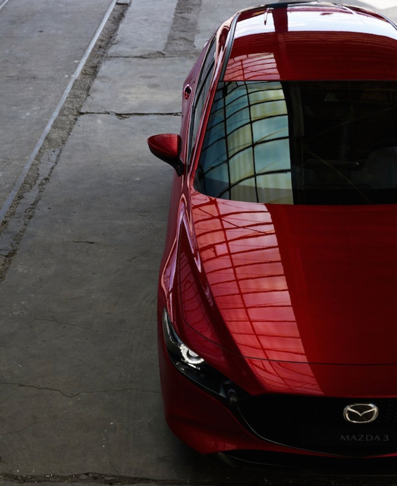 Mazda 3 ใหม่ประจำปี 2019 ใช้การออกแบบ Kodo Design ตัวถังแฮตช์แบ็กและซีดานของ new Mazda 3 ถูกเปิดเผยออกมาในงานพร้อมเครื่องยนต์ 2.0 และ 2.5 ลิตร ที่จะทำตลาดในอเมริกาและยุโรป ทีมพัฒนาของ Mazda ได้นำเสนอรูปลักษณ์ใหม่ที่เชื่อมโยงกับรถต้นแบบ HAI Concept ปรับบุคลิกภาพของรถให้ลงตัวมากยิ่งขึ้น ด้วยความสามารถของทีมออกแบบ Mazda 3 มีการเพิ่มเอกลักษณ์ของรถรุ่นใหม่โดยใช้กระจังหน้า ไฟหน้า ส่วนท้ายที่งดงามลงตัวพร้อมไฟท้าย LED แบบใหม่ ตัวถังแฮตช์แบ็กนำเสนอรูปลักษณ์ที่น่าประทับใจ ดูโค้งมนเหมือนเดิมแต่ทันสมัยขึ้น วิศวกรของแบรนด์ Mazda มั่นใจว่า new Mazda 3 จะมีประสิทธิภาพของการขับเคลื่อน พร้อมแรงดึงดูดทางสายตาด้วยรูปทรงที่โดนใจ ผลที่จากการพัฒนาก็คือ Mazda 3 รุ่นใหม่ทั้งสองตัวถัง (4 ประตูและ 5 ประตู) ที่ใช้ช่วงล่างหลังแบบทอร์ชั่นบีม สวนทางกับรถคู่แข่งเจ้าตลาดที่เปลี่ยนระบบรองรับด้านหลังมาเป็นดับเบิ้ลวิชโบน