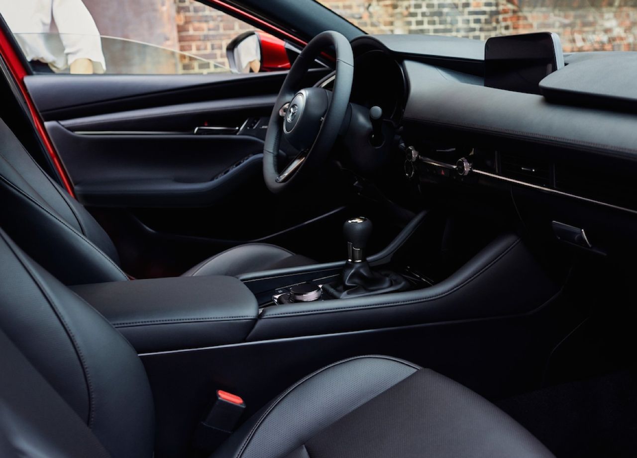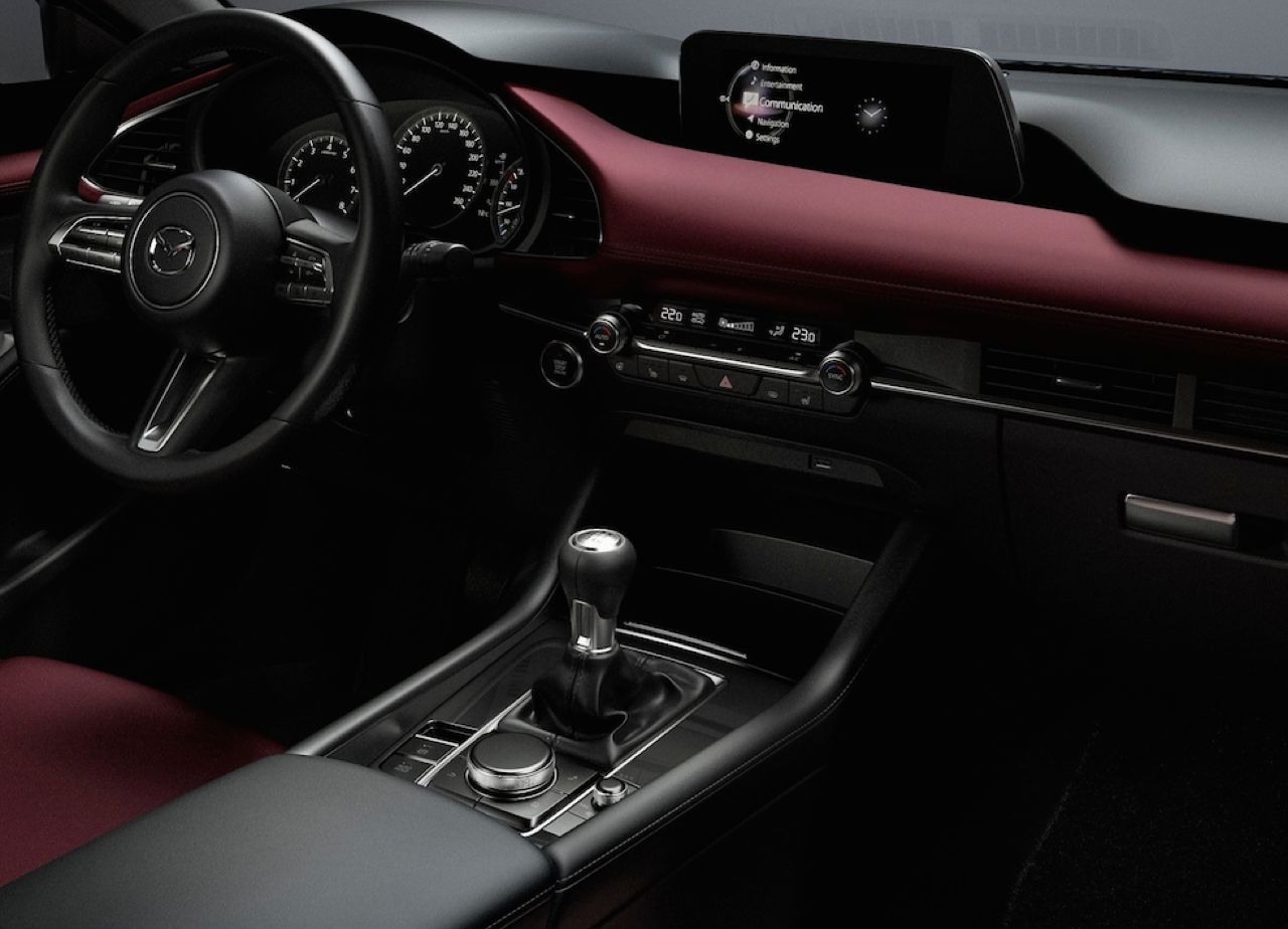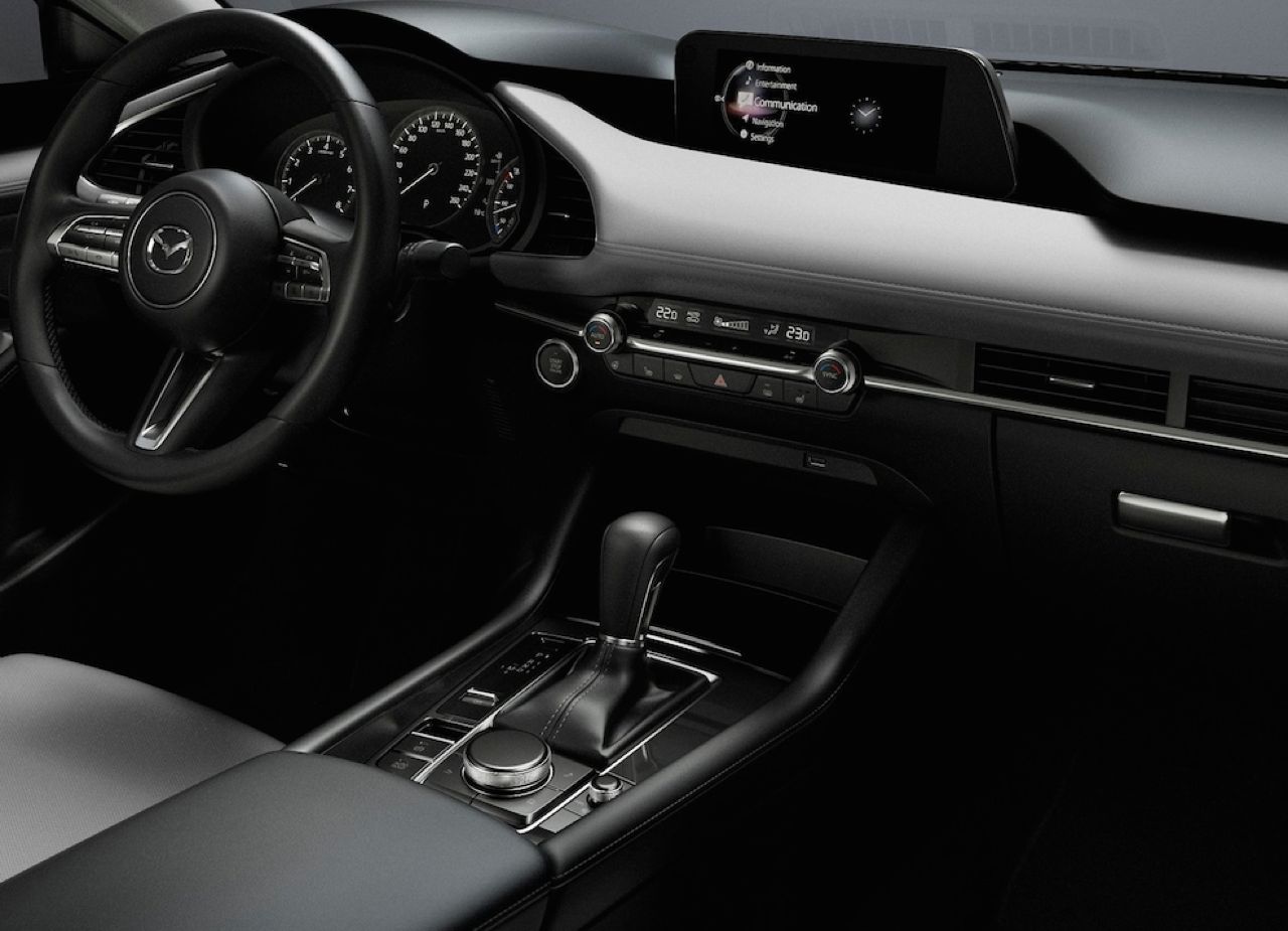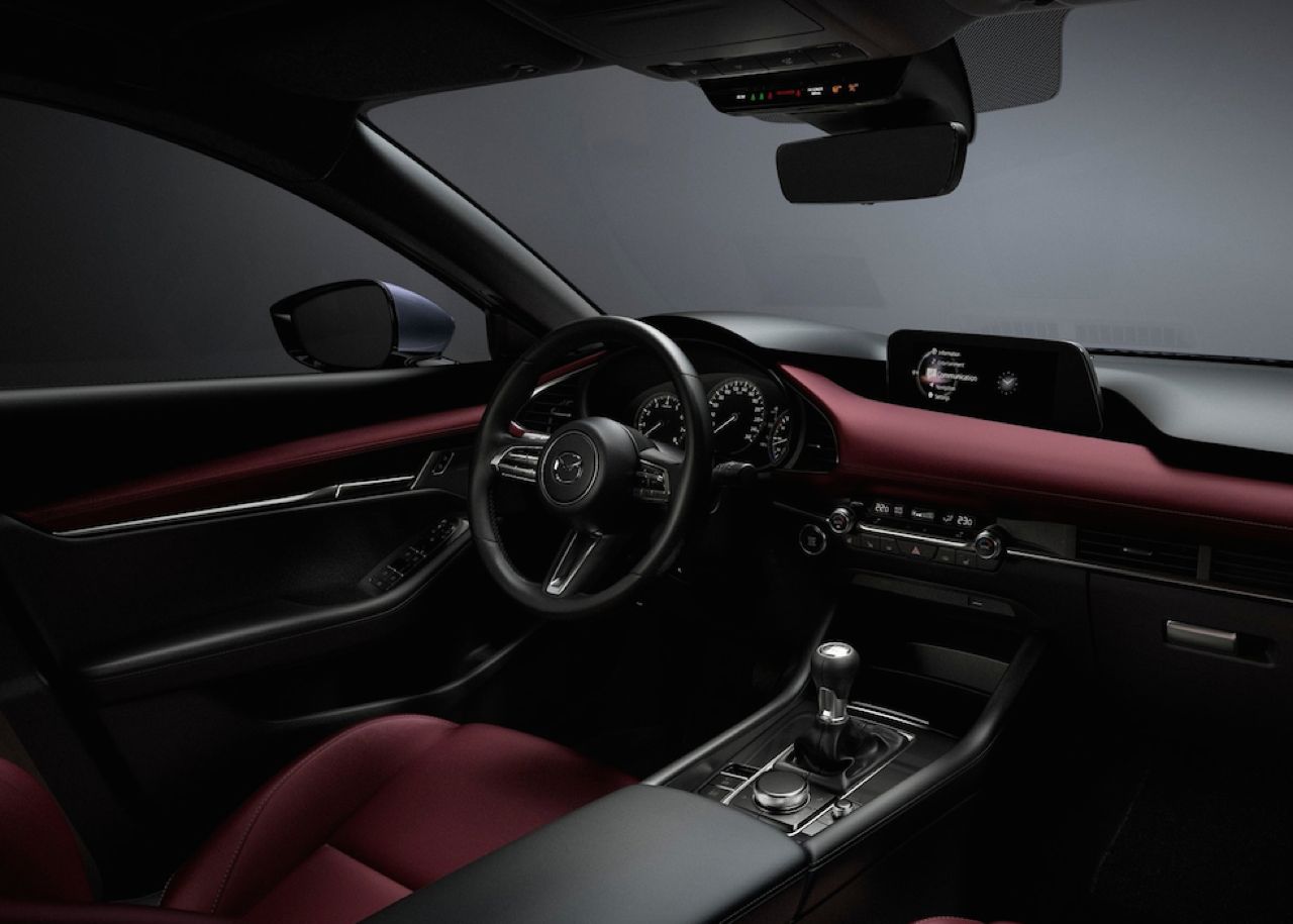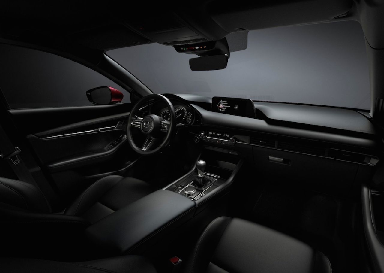เพื่อสร้างความเชื่อมโยงระหว่างรถกับคนขับ ทุกแง่มุมของแดชบอร์ดถูกวางไว้ในแนวนอนแบบสมมาตร อุปกรณ์ทุกอย่างออกแบบเพื่อทำให้คนขับเป็นจุดศูนย์กลางของการใช้งานอุปกรณ์นั้นๆ องค์ประกอบทุกชิ้นภายในห้องโดยสารถูกออกแบบมาเพื่อให้ตรงกับคนขับและช่วยเน้นแกนขับเคลื่อนของคนขับไปที่ศูนย์กลาง นอกจากนี้ภายในประกอบด้วยแนวคิด "น้อยกว่า" ที่เป็นกุญแจสำคัญในการออกแบบ KODO ที่พัฒนาขึ้นใหม่ของ Mazda3 มีองค์ประกอบทั้งหมดของภายในแตกต่างจากรุ่นที่แล้วอย่างเห็นได้ชัด นอกเหนือจากห้องโดยสารที่เรียบง่าย การออกแบบที่ชาญฉลาดช่วยขยายพื้นที่
