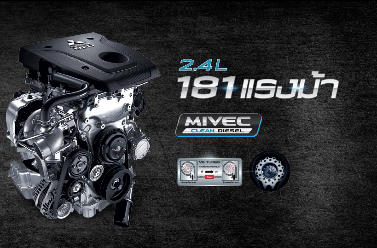 เครื่องยนต์ของ Mitsubishi Triton เป็นเครื่องยนต์ดีเซล เสื้อสูบและฝาสูบอะลูมิเนียม อัดอากาศด้วยเทอร์โบแปรผัน เป็นเครื่องยนต์แบบ 4 สูบแถวเรียง MIVEC VG Turbo Diesel 4N15 Clean Diesel กำลังสูงสุด 181 แรงม้า แรงบิด 430 นิวตันเมตร พร้อมระบบ Auto Stop and Go ดับเครื่องยนต์อัตโนมัติเมื่อจอดนิ่งเพื่อประสิทธิภาพของการประหยัดเชื้อเพลิงและลดมลพิษ เครื่องยนต์ทำงานร่วมกับระบบส่งกำลังซึ่งเป็นเกียร์อัตโนมัติ 6 สปีดรุ่นใหม่