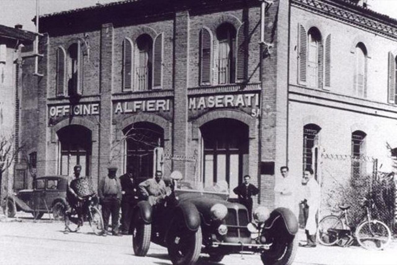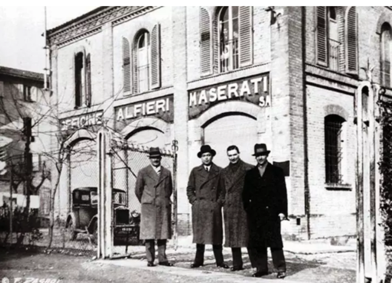 ในช่วงฤดูหนาวของวันที่ 14 ธันวาคม ปี ค.ศ. 1914 บริเวณห้องแถวเล็กๆ สองห้องชั้นล่างของอาคาร VIA DE’ PEPOLI ป้ายบริษัทที่มีชื่อว่า SOCIETA ANONIMA OFFICINE ALFIERI MASERATI ก็ได้ถูกยกขึ้นติดตั้งขึ้นที่ด้านหน้าของอาคาร ท่ามกลางความยินดีของคนในตระกูล MASERATI และนี่คือจุดเริ่มต้นของตำนานรถแข่งของอิตาลี ALFIERI พี่น้องในตระกูล MASERATI ตกลงกันว่าจะใช้ตราสามง่ามหรือตรีศูล ซึ่งเป็นอาวุธของเทพเจ้า NEPTUNE และยังเป็นตราประจำตระกูลของขุนนาง JEAN DE BOULOGNE แห่ง PIAZZA DEL NETTUNO ใน BOLOGNA ซึ่งคอยให้การสนับสนุนทางการเงินแก่คนในตระกูล MASERATI ในการแข่งขันรถยนต์ตลอดมา ตราดังกล่าวถูกนำมาติดตั้งไว้บนรถยนต์ที่ MASERATI ผลิตและออกขายในอิตาลีเป็นครั้งแรก นั่นก็คือที่มาของรถ MASERATI TIPO 26