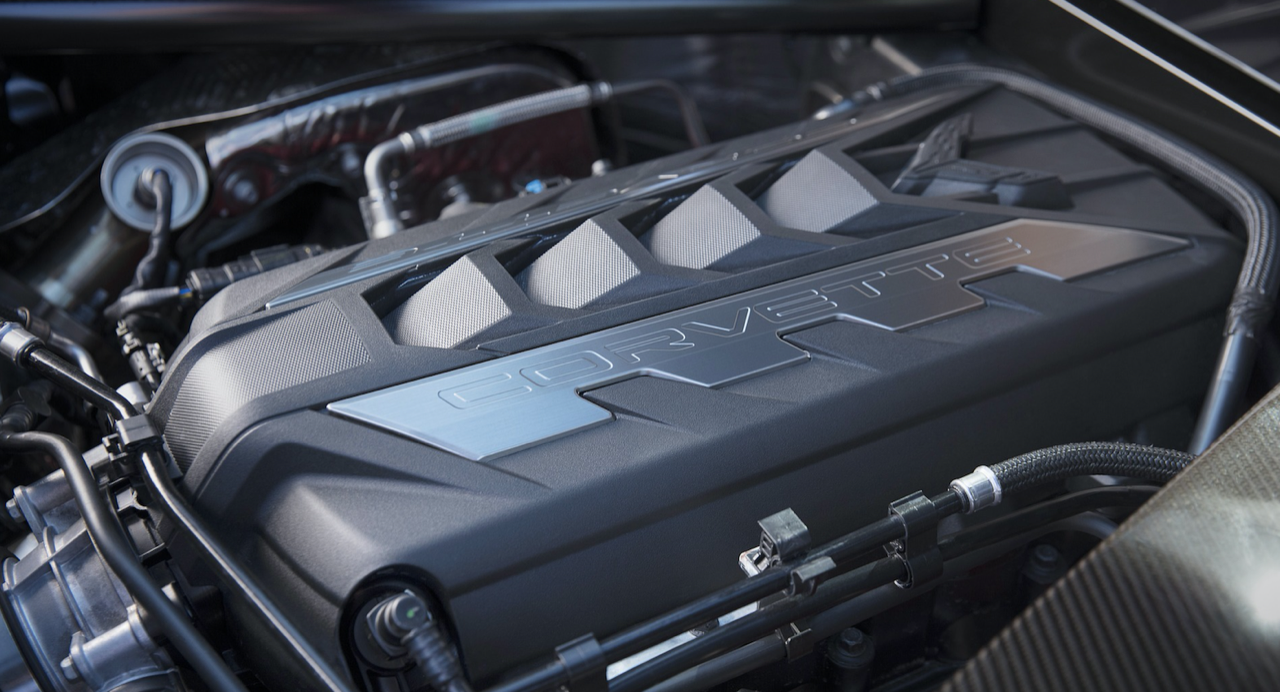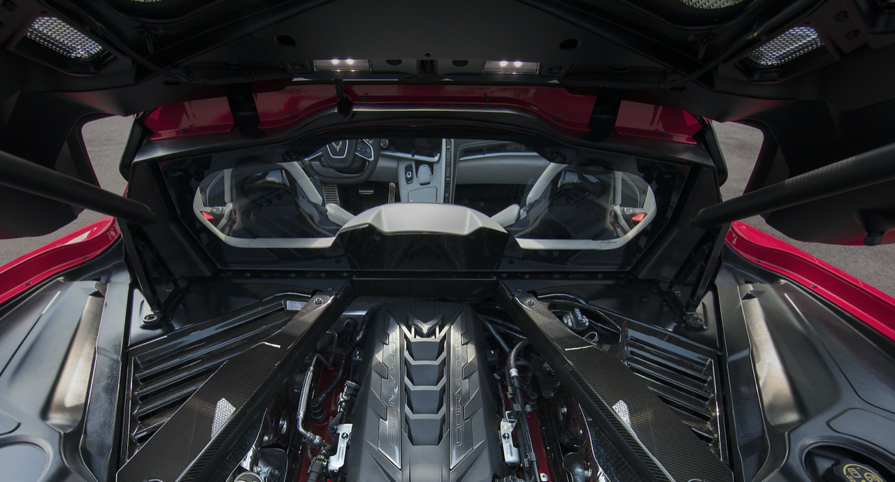 ฝาครอบเครื่องยนต์ด้านหลังเป็นกระจกน้ำหนักเบาที่มีความหนา 3.2 มม. เปิดโอกาสให้เจ้าของรถสามารถโชว์เครื่องยนต์ได้อย่างเต็มที่ ฝาครอบกระจกดังกล่าวมีร่องขอบด้านข้างที่ช่วยระบายความร้อนจากห้องเครื่องยนต์ LT2 ทุกชิ้นส่วนของเครื่องยนต์ ไม่ว่าจะเป็นสายไฟของระบบไอเสีย ท่อทางเดินต่างๆ แนวสลักเกลียว ท่อน้ำยาหล่อเย็น ท่อไอเสีย รวมถึงนอตและสลักสกรูต่างๆ ถูกสร้างขึ้นโดยคำนึงถึงความสวยงามเป็นสำคัญ ทุกชิ้นส่วนเครื่องยนต์ได้รับการเอาใจใส่อย่างพิถีพิถันเหมือนกับรูปลักษณ์ภายนอก เสื้อสูบและระบบระบายอากาศถูกออกแบบใหม่ทั้งหมด แกนกลางของเพลาข้อเหวี่ยงติดตั้งในตำแหน่งใกล้กับพื้นต่ำลง 1 นิ้ว ซึ่งเชื่อมต่อกับชุดเพลาส่งกำลังเพื่อการควบคุมที่ดี อ่างน้ำมันเครื่องน้ำหนักเบา ตัวหล่อเย็นน้ำมันเครื่องมีความจุเพิ่มขึ้น 25 เปอร์เซ็นต์ ฝาครอบวาล์วสีแดง