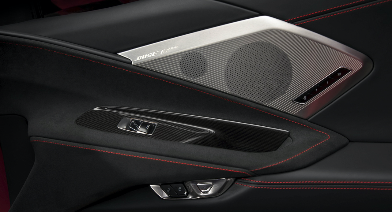 Corvette Stingray 2020 มาพร้อมวัสดุห้องโดยสารที่ดีขึ้น ใช้หนังที่ตัดเย็บด้วยมือ พร้อมเดินตะเข็บด้ายแบบหนา คิ้วโลหะแท้ ฝาปิดลำโพงสเตนเลส พร้อมระบบเครื่องเสียง Bose Performance Series คาร์บอนไฟเบอร์สำหรับเบาะ GT2 และ Competition Sport Seats วัสดุอะลูมิเนียมหรือคาร์บอนไฟเบอร์ตกแต่งคอนโซลและแผงประตู