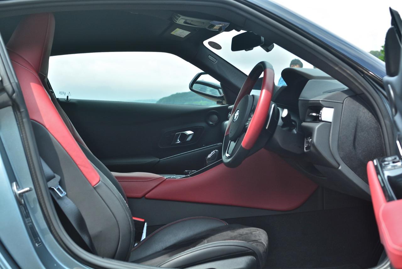 ภายในรถ GR Supra แม้จะพยายามออกแบบงานตกแต่งต่างๆ เช่น แดชบอร์ดและคอนโซล เบาะ พวงมาลัย มาตรวัด ให้แตกต่างจาก Z4 แต่ก็ยังพบชิ้นส่วนประกอบที่ดูคล้าย BMW แทบจะทุกส่วน ตั้งแต่คันเกียร์ ไปจนถึงจอมอนิเตอร์กลาง ยังดีที่แผงหน้าปัดกับจอ HUD ของ GR Supra ไม่เหมือนกับของ BMW อย่างชัดเจน รวมถึงเครื่องเสียง JBL ของ GR Supra ที่แตกต่างจาก harman kardon surround sound system ของ Z4 M40i ในภาพรวม ผมคิดว่าการที่ GR Supra จะมีส่วนเหมือน BMW บ้างก็คงไม่ใช่ปัญหา ลองคิดดูว่าถ้าการที่เรายอมให้มีชิ้นส่วน BMW มาปะปนบ้างแล้วมันจะทำให้ Toyota สามารถฟื้นคืนชีพ Supra ได้ มันก็คุ้มค่ามิใช่หรือ ?Tada ยืนยันความคิดนั้น “คือถ้าสมมติว่าเราสร้าง Supra ด้วยตัวเองทั้งหมด ก็ต้องลงทุนเยอะมาก โอกาสที่จะได้ไฟเขียวจากกรรมการบริหารบริษัทก็แทบจะไม่มี เราก็เลยต้องมีการร่วมมือกันในลักษณะนี้ แต่เราก็ทำ GR Supra ให้แตกต่างจาก Z4 ในส่วนที่เราทำได้ เช่นการที่ Supra เป็นรถที่ให้ความสำคัญกับความสนุกในการขับ ห้องโดยสารจึงถูกออกแบบให้ฝั่งคนขับมีพื้นที่ให้ขยับตัวได้มากกว่า แต่ Z4 จะมีแนวทางที่ต่างกัน กล่องควบคุมเครื่องยนต์และช่วงล่างแบบสปอร์ตที่เซตค่ามาแบบตายตัวก็แตกต่างกัน ในระหว่างที่ Toyota พัฒนารถช่วงแรก ก็พบว่ามีความคิดหลายอย่างไม่ตรงกัน สงสัยเหมือนกันว่าทำไมจึงเป็นอย่างนั้นทั้งๆ ที่เราก็มีเป้าหมายในการสร้างรถสปอร์ตเหมือนกัน ท้ายสุดแล้วผมก็คิดได้ว่าเราต้องเริ่มจากกระดาษขาวแผ่นใหม่ถึงจะถูก แต่เดิม เราเริ่มด้วยดีไซน์และรถแบบเดียวกับของ BMW แล้วพยายามทำให้มันเป็นรถของ Toyota วิธีคิดใหม่ของผมในเวลานั้นก็คือ เราต้องออกแบบรถของเราเองต่างหาก แล้วค่อยมาดูว่าตรงไหนบ้างที่สามารถใช้ชิ้นส่วนร่วมกับ BMW ได้ ดังนั้นผมบอกได้เลยว่านี่จะทำให้รถเราต่างกัน แม้จะเป็นเครื่องยนต์และเกียร์แบบเดียวกัน แต่การปรับจูนที่ทำโดย Toyota รวมไปถึงช่วงล่าง และการขับขี่ รถทั้งสองคันนี้จะให้ประสบการณ์ในการขับที่ไม่เหมือนกัน ส่วนที่แตกต่างกันชัดเจนที่สุด น่าจะเป็นหลังคา เพราะในขณะที่ BMW Z4 G29 จะมีแต่เวอร์ชั่นหลังคาผ้าใบ Toyota ก็จะทำแต่รถ GR Supra เฉพาะรุ่นคูเป้หลังคาแข็งเท่านั้น ดังนั้นความได้เปรียบเรื่องความแข็งแรงของตัวถังจึงน่าจะมากกว่า Z4 Tada ยังเคลมอีกว่าตัวถังเหล็กธรรมดาของ GR Supra นั้นมีดีกรีทนต่อแรงบิดเค้นมากกว่าตัวถังคาร์บอนไฟเบอร์ของ Lexus LF-A เสียอีก การกระจายน้ำหนักของตัวถังก็อยู่ในเกณฑ์ 50:50 และยังมีจุดศูนย์ถ่วงต่ำกว่าของ Toyota 86 ด้วยซ้ำ ตำแหน่งการนั่งเตี้ยแบบรถสปอร์ต มีเบาะนั่งที่โอบอุ้มตัวคนนั่งไว้ได้อย่างรัดกุม หลังคาแบบนูนทำให้มีพื้นที่เหนือ