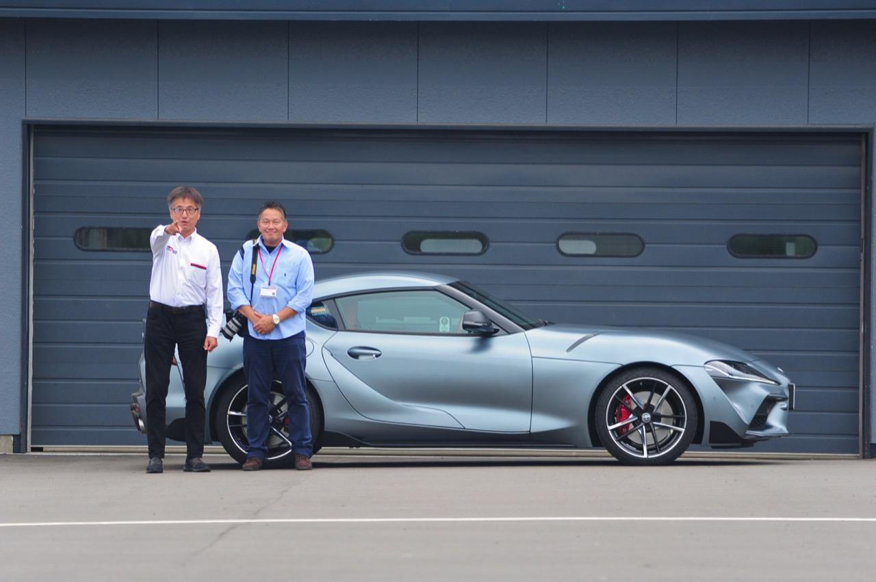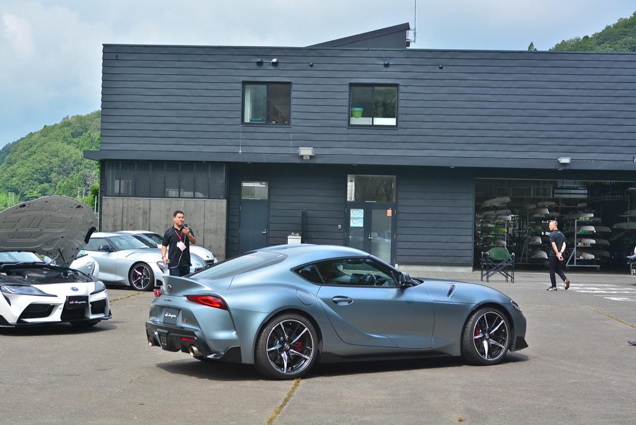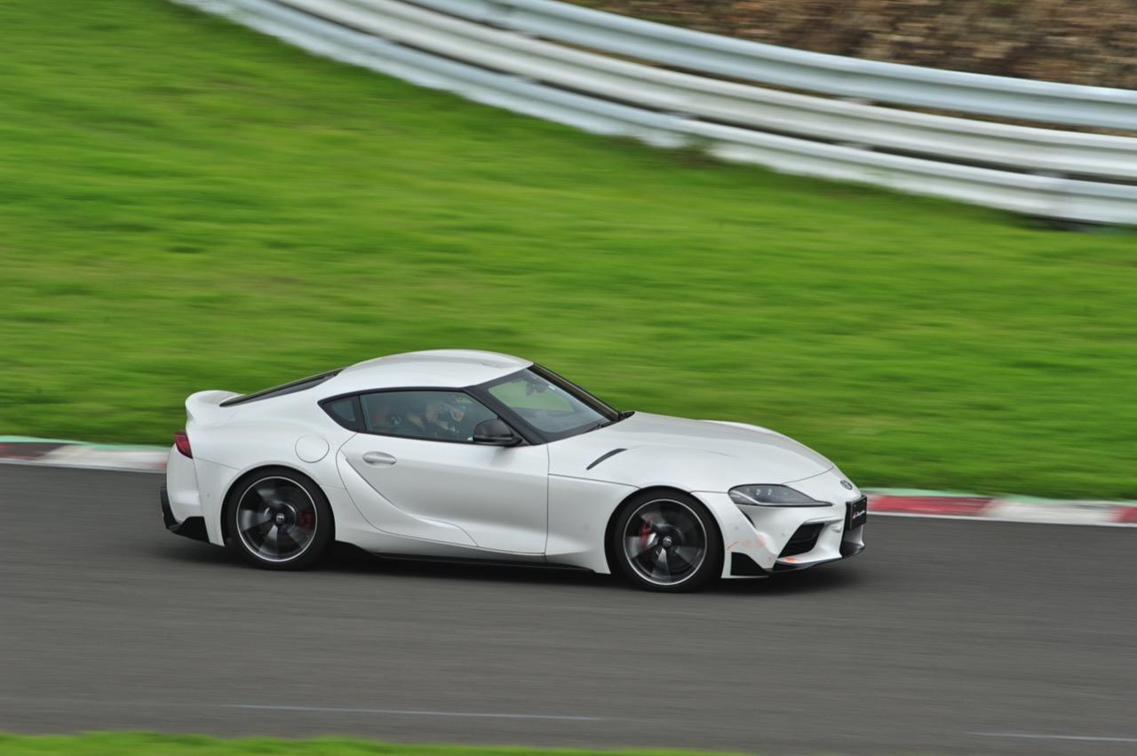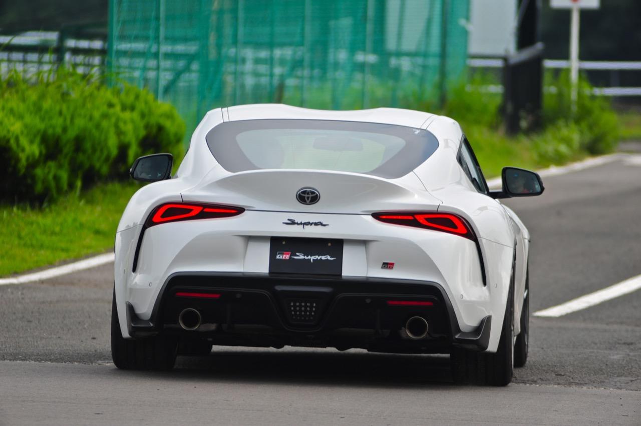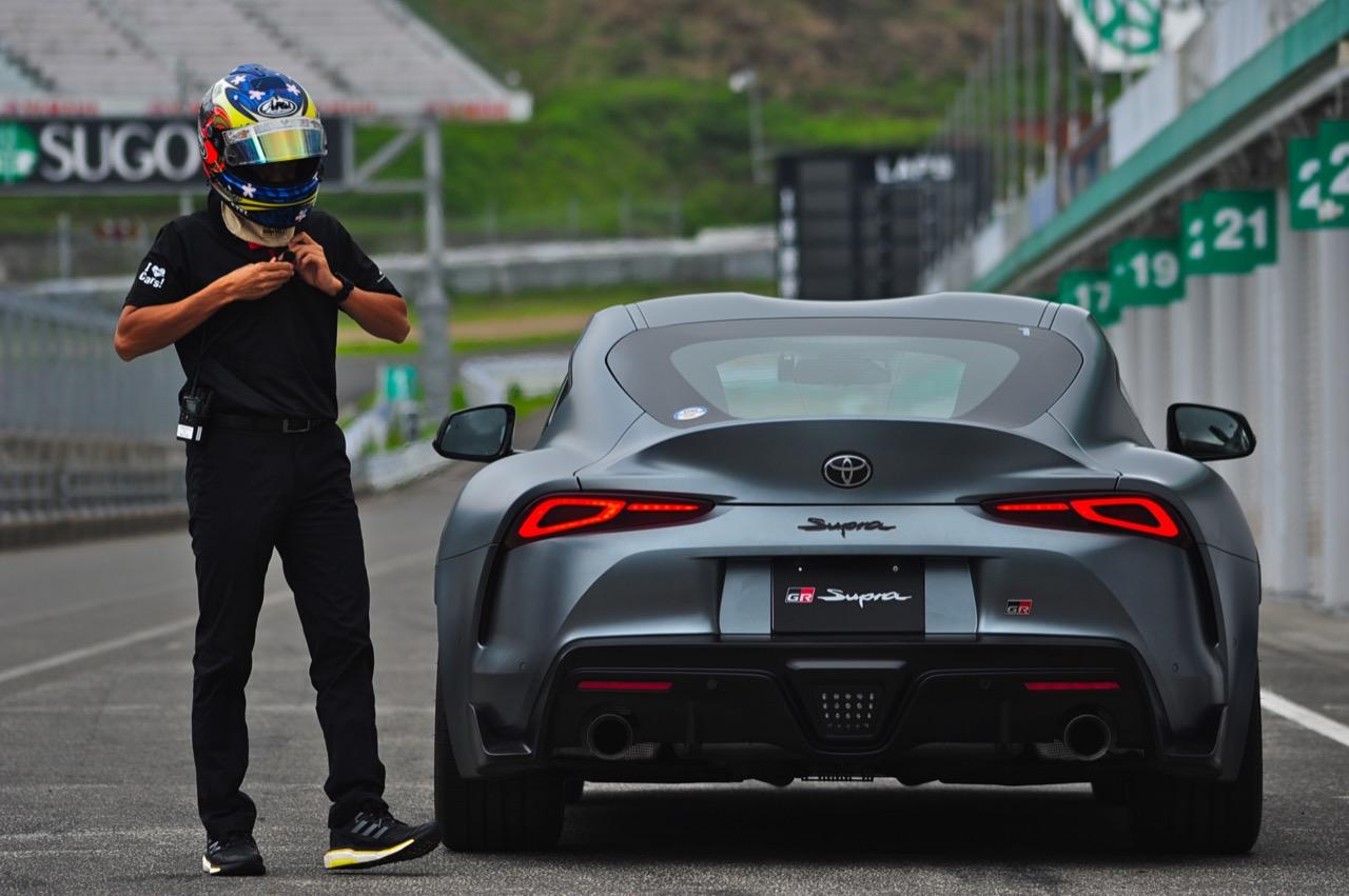 ในช่วงบ่าย หลังจากขับบนถนนสาธารณะของเมืองเซนไดก็มาถึงการอัดสปอร์ตรุ่นใหม่ของ Toyota ในสนามแข่ง Sugo International Racing Course ความยาว 3.737 กิโลเมตร เป็นสนามแข่งรถเล็กๆ ที่อุดมไปด้วยโค้งอันน่าหวาดหวั่นมากถึง 13 โค้ง จุดอันตรายที่สุดในสนามมีอยู่ทั่วไปหมดและทำให้คนที่ไม่เคยลองขับในสนามแข่งแห่งนี้ถึงกับขนหัวลุก ผมขึ้นรถ GR Supra สีเทาที่ขับตั้งแต่ตอนเช้าบนถนนของเมืองเซนได แล้วขับออกไป เพียงแค่ 2-3 โค้งแรกก็รู้สึกได้แล้วว่าแม้วงพวงมาลัยจะอวบอ้วนและมีน้ำหนักตึงมือกับแป้นเปลี่ยนตำแหน่งเกียร์ Paddle Shift สไตล์ BMW แต่น้ำหนักเวลาหักเลี้ยวนั้นจะไม่ขืนมือมากเท่า BMW Z4 M40i โรดสเตอร์สายพันธุ์แรงที่ผมขับก่อนหน้าที่จะเดินทางมาทดสอบในญี่ปุ่นแค่อาทิตย์เดียว และที่สำคัญ การตอบสนองของรถมีความคล้ายกับ GT86 อย่างมาก คือเลี้ยวเท่าไร เร่งเท่าไร มันก็ให้เราตามที่เราสั่ง ไม่มากหรือน้อยเกินไป คาดเดาอาการได้ง่าย GR Supra ไม่ได้กวาดท้ายออกง่ายอย่างที่คิด เว้นเสียแต่ว่าคุณตั้งใจทำ ตอบสนองไว แต่ไม่กระโชกโฮกฮาก เกาะถนนดี แชสซีและช่วงล่างแบบค่าตายตัวรู้อาการทุกอย่างที่เกิดกับหน้าและท้ายรถ ขับสนุกและง่ายต่อการควบคุมแบบรถเครื่องวางหน้าขับหลังตามที่คาดหวัง แต่อันที่จริง ตัวเครื่องยนต์เกือบทั้งหมดถูกวางไว้หลังแนวแทร็คล้อหน้า คล้ายกับของ Lexus LC500 ดังนั้นจะเรียกว่าเป็น Front/Mid Engine ก็คงจะไม่ผิด การกระจายน้ำหนัก 50/50 แบบ Z4 ก็ยิ่งทำให้รถมีความเสถียรมากยิ่งขึ้นเมื่อขับเข้าโค้งด้วยความเร็วสูงอาการโคลงตัวแทบจะไม่ปรากฏออกมาให้เสียวสันหลัง