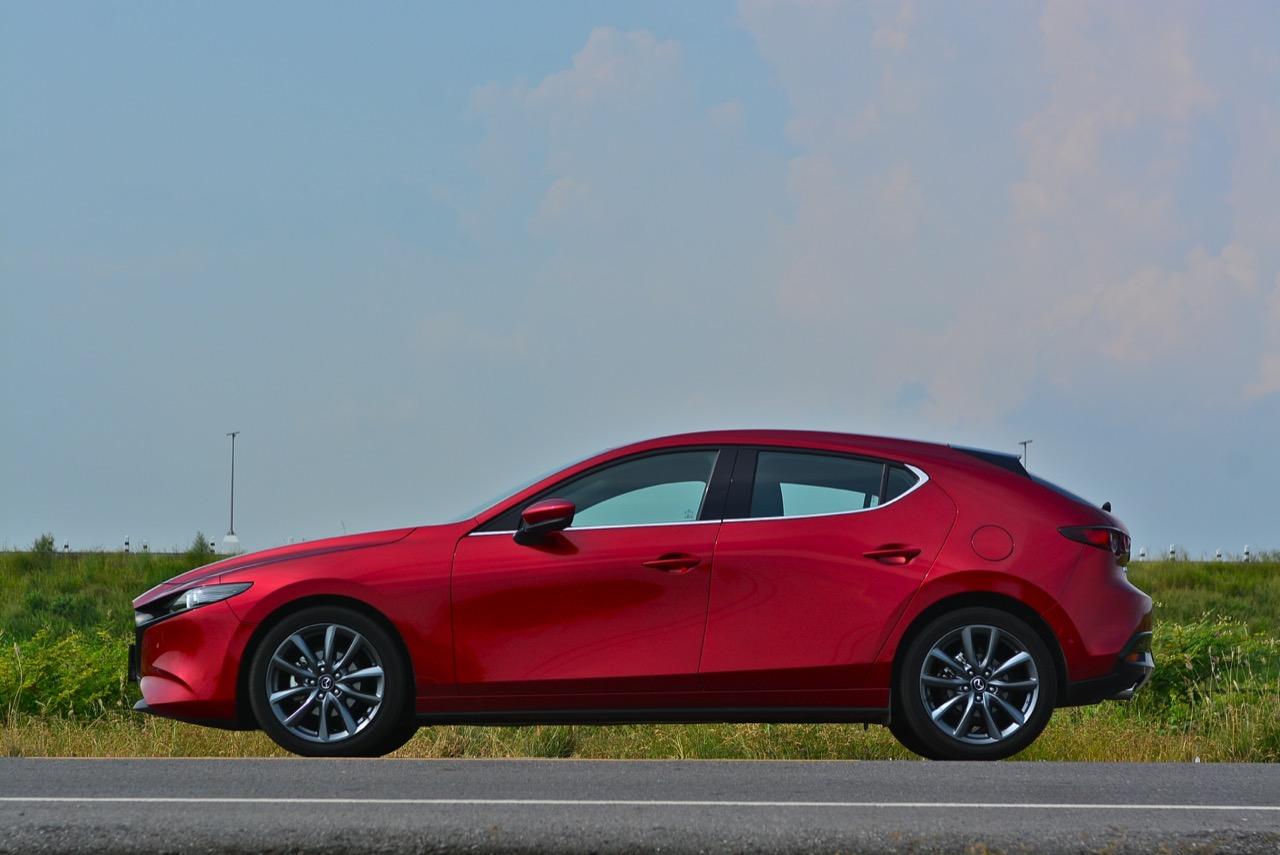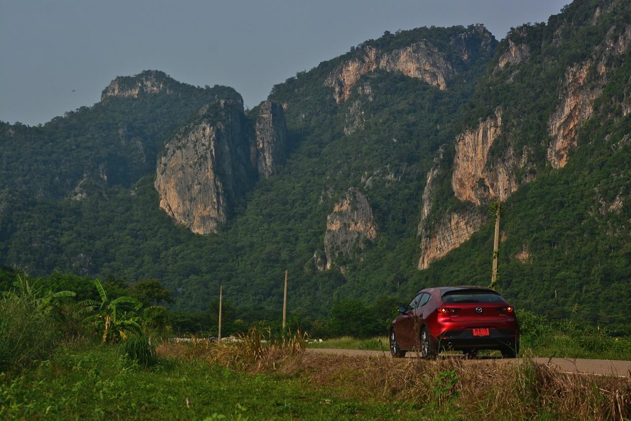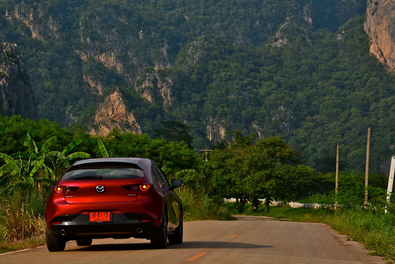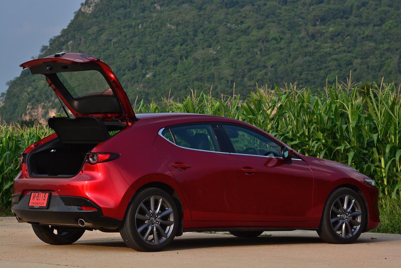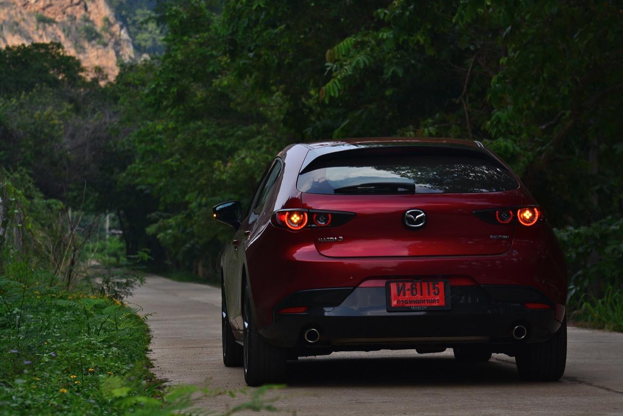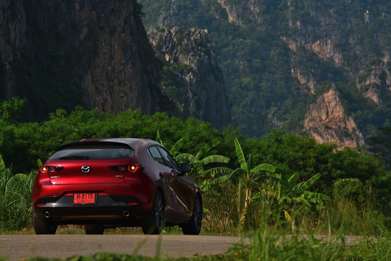 Mazda ปรับเปลี่ยนช่วงล่างของ 3 ใหม่ จากที่ระบบรองรับด้านหลังเคยเป็นแบบมัลติลิงก์ก็เปลี่ยนมาเป็นคานแข็งทอร์ชั่นบีม หลายคนพอเห็นเข้ายังไม่ได้เคยลองขับก็ร้องยี้ คิดว่าชิ้นส่วนที่ลดลงจากการเปลี่ยนมาใช้ระบบคานแข็งน่าจะทำให้การทรงตัวแย่ลง แต่กลับไม่ใช่ ทอร์ชั่นบีมที่เซตมาให้นั้นลงตัวกับแพลตฟอร์มใหม่จนไม่ส่งผลกระทบหรือทำให้การทรงตัวเปลี่ยนไปในทางที่แย่ คุณสามารถเข้าโค้งได้เร็วขึ้นด้วยการยึดเกาะทั้งส่วนหน้าและหลังที่หลอมรวมเป็นหนึ่งเดียว มันเป็นรถแฮตช์แบ็คที่สามารถขับเข้าออกโค้งได้อย่างเมามันและสามารถสนุกกับสไตล์การขับของรถรุ่นนี้ได้ทุกเมื่อ ช่วงล่างแบบสปอร์ตของ New Mazda 3 หนึบแน่นมากขึ้น มีแอบกระด้างในบางจังหวะจะโคนที่เจอกับผิวถนนไม่เรียบ แต่ไม่ได้ทำให้สะเทือนจนรู้สึกแย่ ยาง DB เมื่อขับบนทางปูนซีเมนต์มีเสียงการทำงานที่เงียบขึ้น ความหนึบของช่วงล่างทำให้เข้าโค้งได้มั่นใจ โดยเฉพาะถนนที่มีโค้งแคบๆ วกไปวนมา บางโค้งก็พร้อมจะเหวี่ยงรถออกไปนอกถนนหากใช้ความเร็วสูงเกินไป แต่การยึดเกาะที่ยอดเยี่ยมของมันทำให้คุณรู้สึกดี