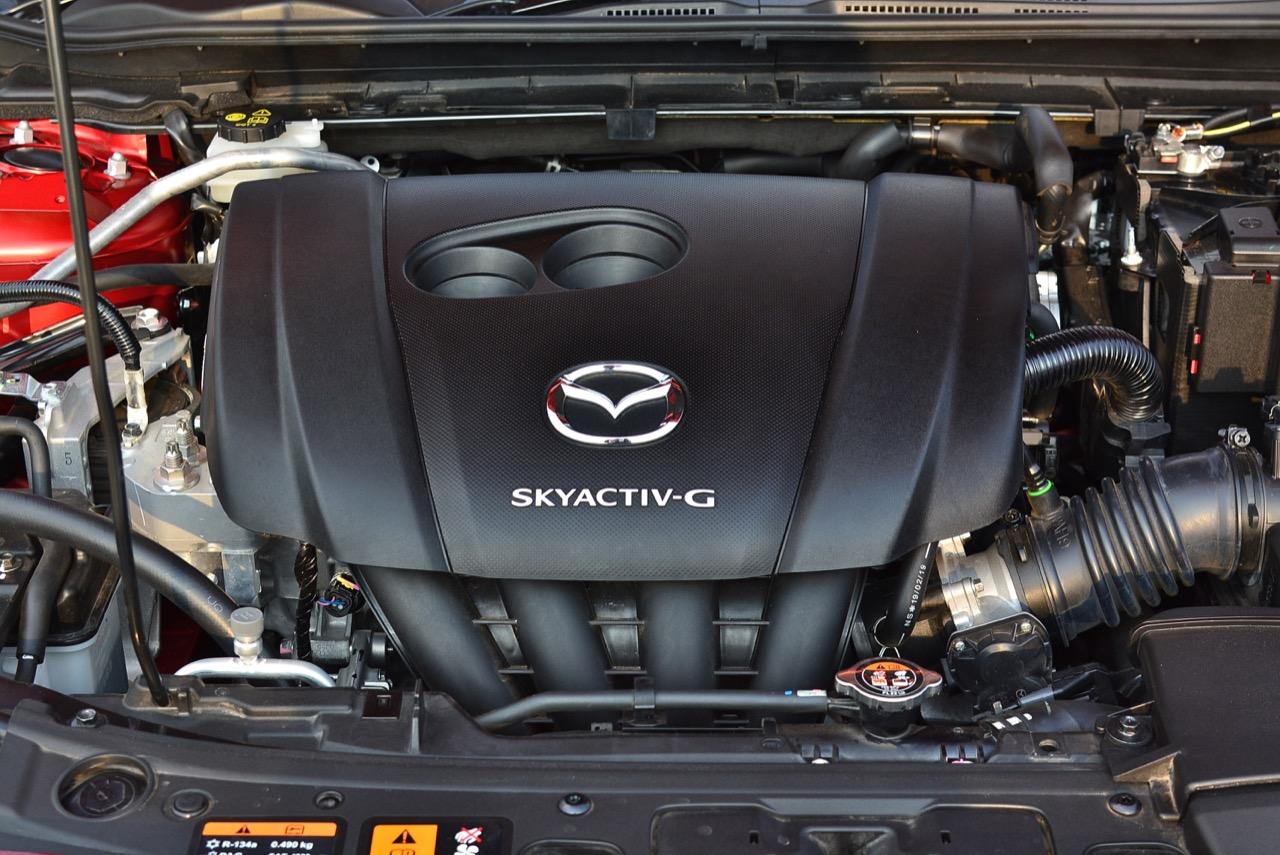 เครื่องยนต์ 2.0 ลิตร รุ่นเดิมแต่มีการปรับปรุงใหม่เล็กๆ น้อยๆ เพื่อเติมประสิทธิภาพการทำงาน ระบบส่งกำลัง 6 สปีดปรับเซตอัตราทดมาใหม่เพื่อการทดกำลังที่ตอบสนองได้ดีขึ้น เครื่องยนต์และเกียร์ก็ทำงานร่วมกันได้ดี อัตราสิ้นเปลืองเชื้อเพลิงเมื่อขับแบบปกติอยู่ที่ 12 กิโลเมตรต่อลิตรถ้าขับเร็วๆ และเมื่อขับในย่านความเร็วต่ำ อัตราสิ้นเปลืองดีขึ้นนิดเดียวเท่านั้น เครื่องยนต์ Skyactiv-G 2.0 ลิตร เป็นเครื่องยนต์เบนซินแถวเรียง 4 สูบ 16 วาล์ว ฝาสูบและแคมชาร์ปแบบดับเบิ้ลโอเวอร์เฮดแคมชาร์ป DOHC มีการติดตั้งระบบวาล์วแปรผันคู่ Dual S-VT ปริมาตรความจุ 1,998 ซีซี อัตราส่วนกำลังอัด 13.0:1 กำลังสูงสุด 165 แรงม้า ที่ 6,000 รอบต่อนาที แรงบิดสูงสุดทำได้แค่ 213 นิวตันเมตรในย่าน 4,000 รอบต่อนาที ส่วนชุดส่งกำลังใช้เกียร์ออโต้ลูกเดิม Skyactiv-Drive 6 สปีด ขับเรื่อยๆ พอใช้ได้ เครื่องยนต์ตอบสนองดี แต่ถ้าวางเครื่องเบนซินเทอร์โบ 2.5 ลิตรที่ประจำการอยู่ใน CX-5 รุ่นปรับโฉมก็น่าจะทำให้ Mazda 3 ใหม่มีสมรรถนะที่ดีขึ้น เนื่องจากช่วงล่างหนึบๆ ของมันสามารถรองรับม้าระดับ 230 ตัวได้อย่างสบายๆ