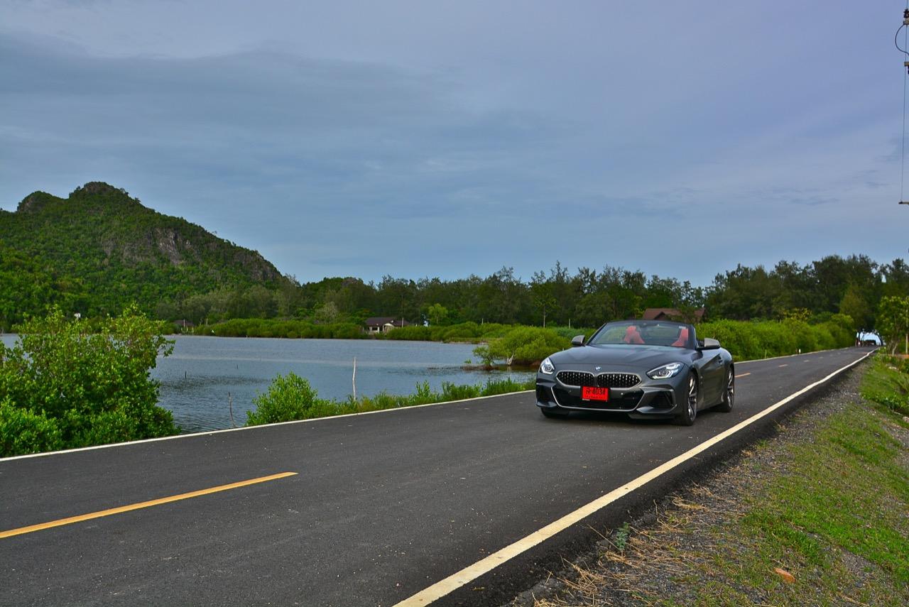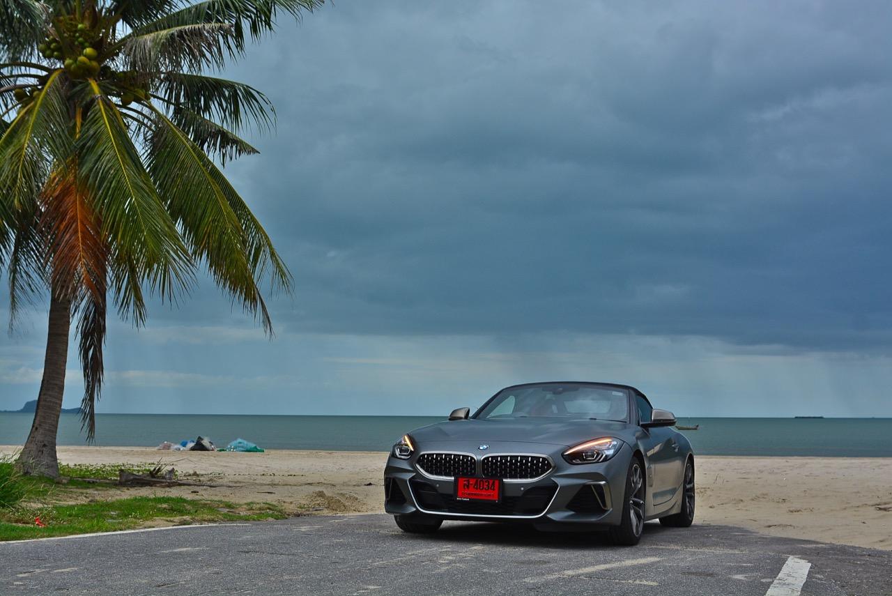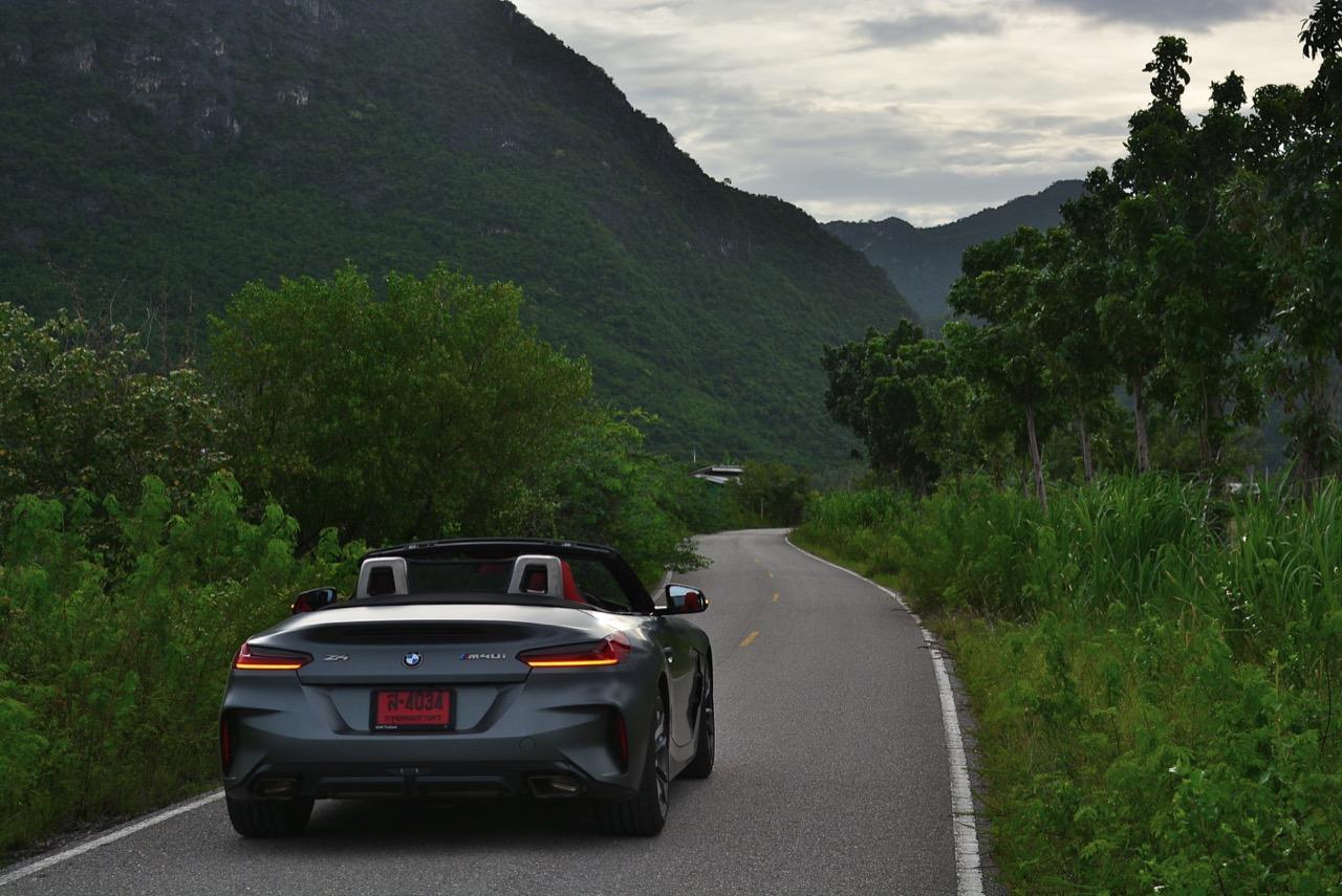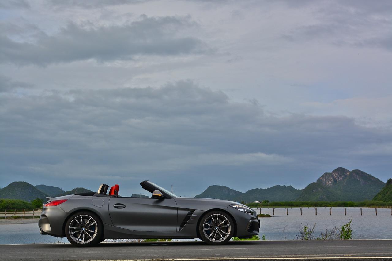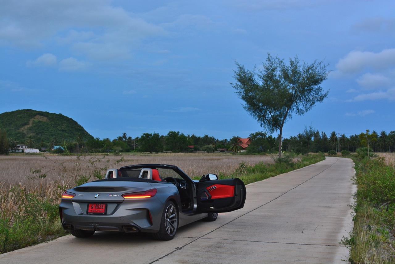 การทดสอบ 8 วัน โดยขับในเมืองแค่นิดเดียว ส่วนใหญ่ เจ้า M40i เปิดหลังคาจะโลดโผนโจนทะยานอยู่บนเส้นทางของอุทยานสามร้อยยอดต่อเชื่อมกับอำเภอกุยบุรี ผมคิดว่า BMW New Z4 M40i เป็นรถที่ขับง่ายกว่า เร่งได้เร็ว เบรกดี คุมแรงให้เบรกตามใจได้เนียนเหมือนหงส์ร่อนลงผิวน้ำ มันมีชุดบังคับเลี้ยวไฟฟ้าที่สามารถหักเลี้ยวไปตามโค้งอย่างว่านอนสอนง่าย เล็งไปทางไหนก็ไปตามสั่ง พร้อมกับน้ำหนักของพวงมาลัยที่แสนจะพอดิบพอดีไม่มีขาดหรือเกิน ไม่เบาจนขาดสัมผัสที่ดีและไม่หนักเหมือน M4 CS ที่มีน้ำหนักของพวงมาลัยราวกับรถแข่ง การที่คุณสามารถใช้ความเร็วในโค้งได้สูงมากนั้นมีส่วนช่วยทำให้เกิดความมั่นใจในการขับและจะยิ่งจัดหนักมากขึ้นเรื่อยๆ ขับในฤดูฝน เมื่อพบเจอกับถนนเปียกแล้วอยากสนุกแต่ก็ต้องระวังให้ดีๆ เพราะการปล่อยแรงบิด 500 นิวตันเมตรลงบนผิวถนนที่เปียกชื้น เป็นเรื่องที่อาจก่อให้เกิดอุบัติเหตุได้ง่ายๆ แค่เข้าโค้งด้วยความเร็วที่เหมาะสม ปล่อยให้ระบบทุกอย่างทำหน้าที่ของมันไปตามเรื่องตามราว ถ้าแน่ใจว่ามีฝีมือมากพอก็เลือกได้เลยว่าจะกดคันเร่งเป็น Power slide หรือจะมาเร็วแล้วยกคันเร่งหมดเป็น Lift-off oversteer รถจะทำตามอย่างว่าง่าย แต่ถ้าถนนแห้ง มันจะไม่ใช่รถที่ท้ายออกง่ายอย่างที่คุณคิดถ้าไม่ใช่ว่าเหยียบคันเร่งเยอะจริงๆ ที่เป็นอย่างนั้นก็เพราะมันใส่ยางที่เกาะสุดๆ อย่าง Pilot Super Sport นั่นเอง