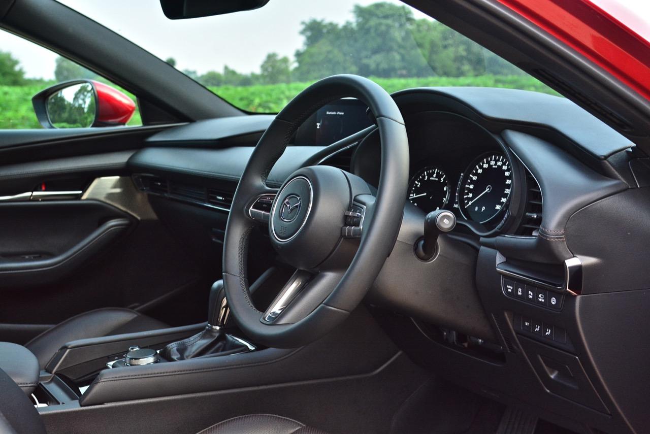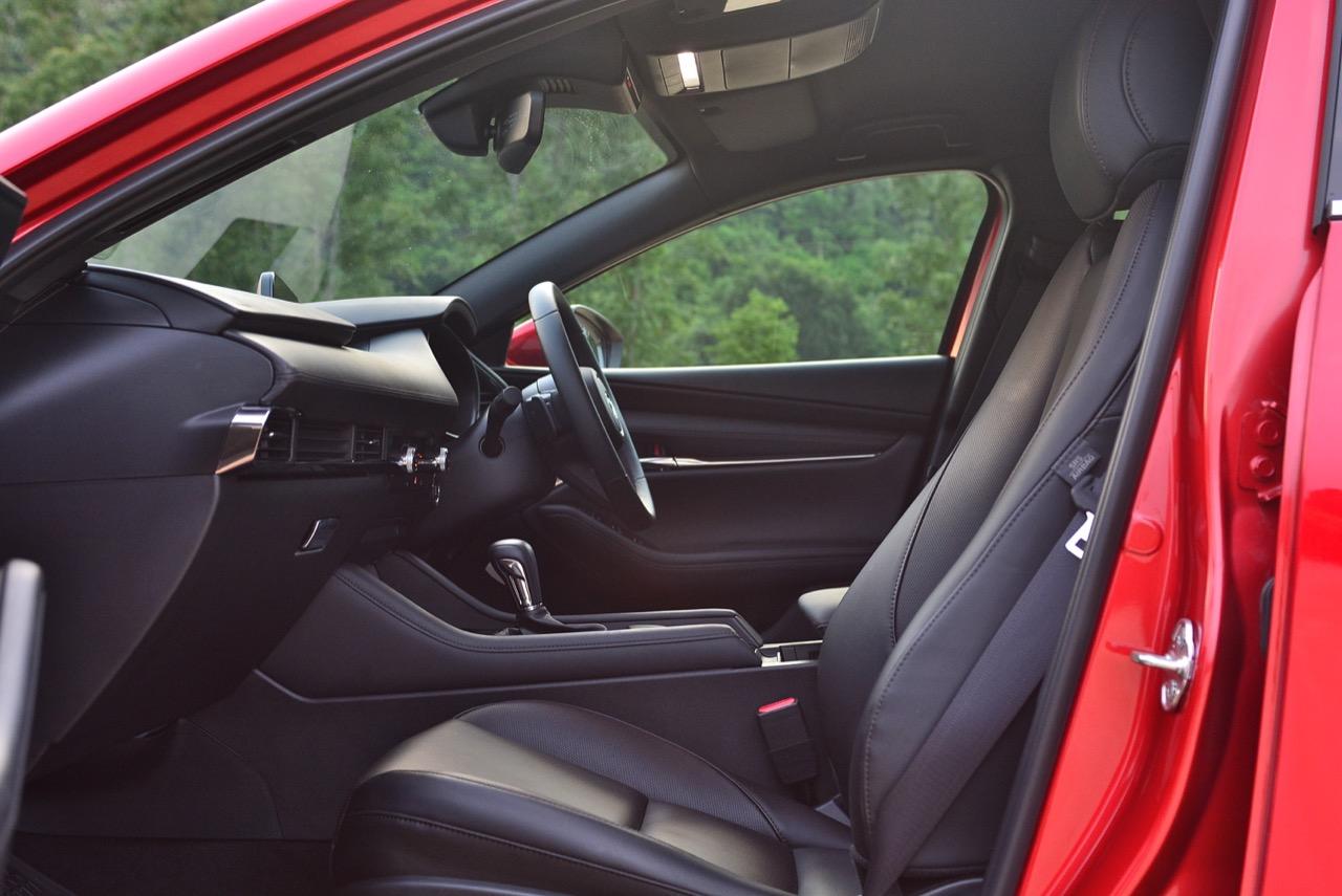 ห้องโดยสารของ All New Mazda 3 2019 มาพร้อมความหรูหราด้วยวัสดุเกรดสูง จุดนี้ต้องยอมรับว่า Mazda ทำออกมาได้ดี มีอุปกรณ์ใช้งานครบครันทุกฟังก์ชั่น ภายในเลือกใช้วัสดุคุณภาพสูง ผ่านการออกแบบและพัฒนาใหม่ทั้งหมดทุกรายละเอียดโดยออกแบบให้คนขับเป็นจุดศูนย์กลางในการจัดวางตำแหน่งของอุปกรณ์ต่างๆ อย่างเหมาะสม เบาะดีไซน์ใหม่ รองรับสรีระช่วยให้กระดูกเชิงกรานตั้งตรง แนวกระดูกสันหลังคงรูปตัว S เหมือนขณะเดิน เพื่อให้การขับขี่ทำได้อย่างเป็นธรรมชาติและสมดุล เบาะนั่งคนขับปรับไฟฟ้า 10 ทิศทาง พร้อมระบบบันทึกตำแหน่งเบาะนั่งของผู้ขับ 2 ตำแหน่ง ส่วนเบาะคนนั่งยังคงใช้การปรับด้วยมือและน่าจะให้มาเป็นแบบไฟฟ้าคู่หน้าได้แล้ว