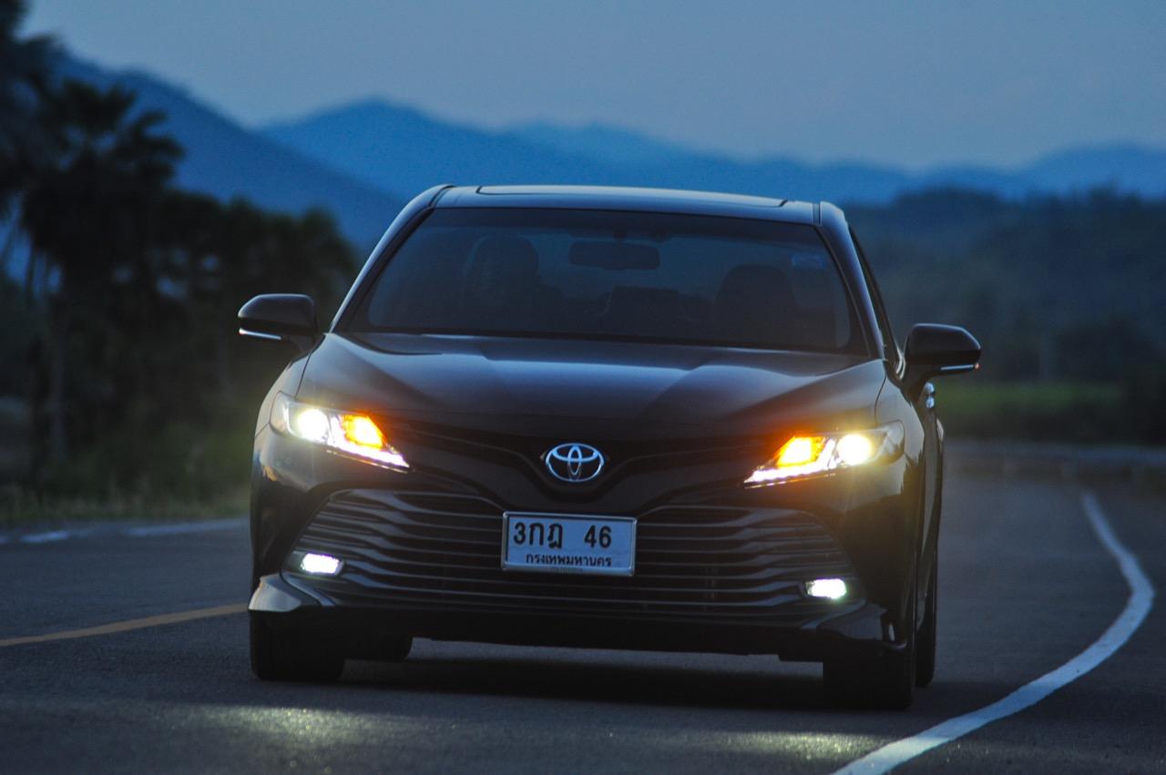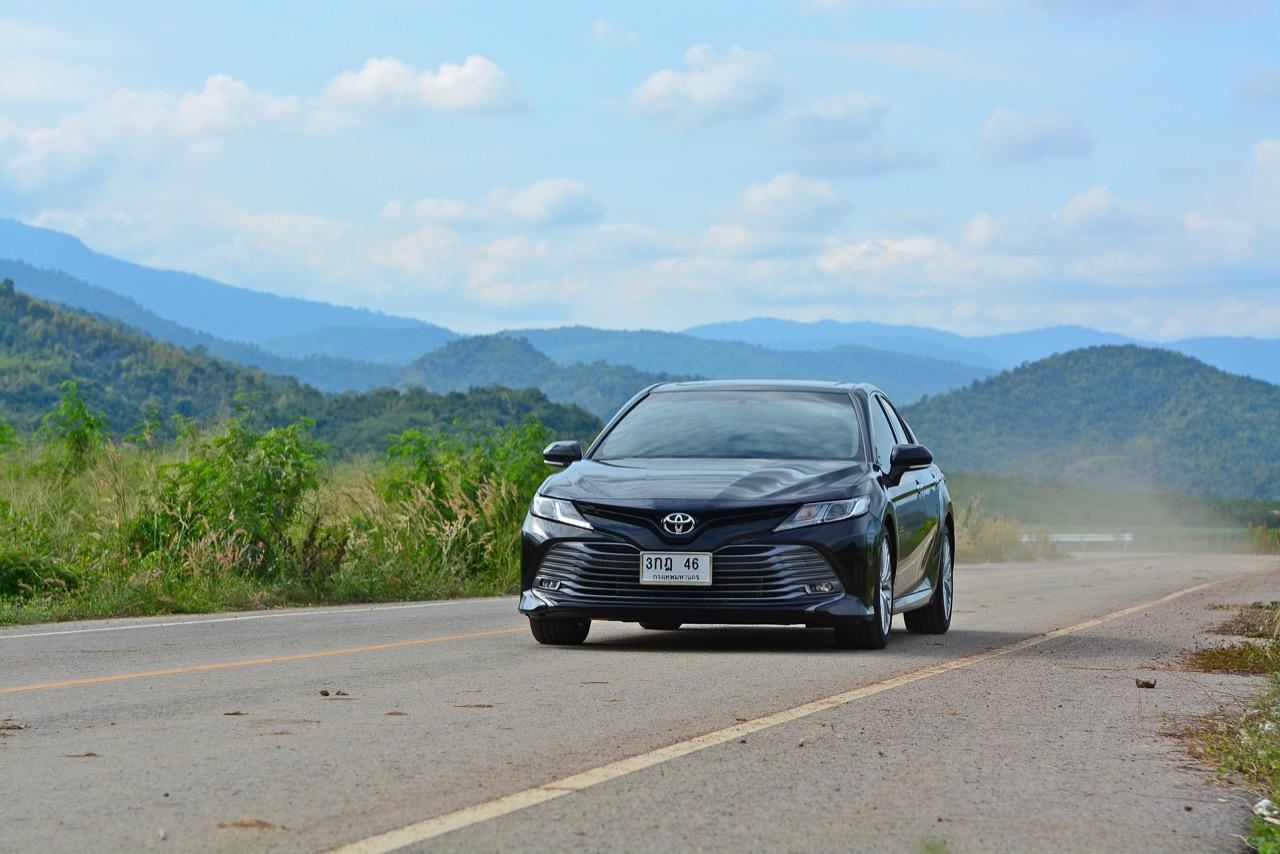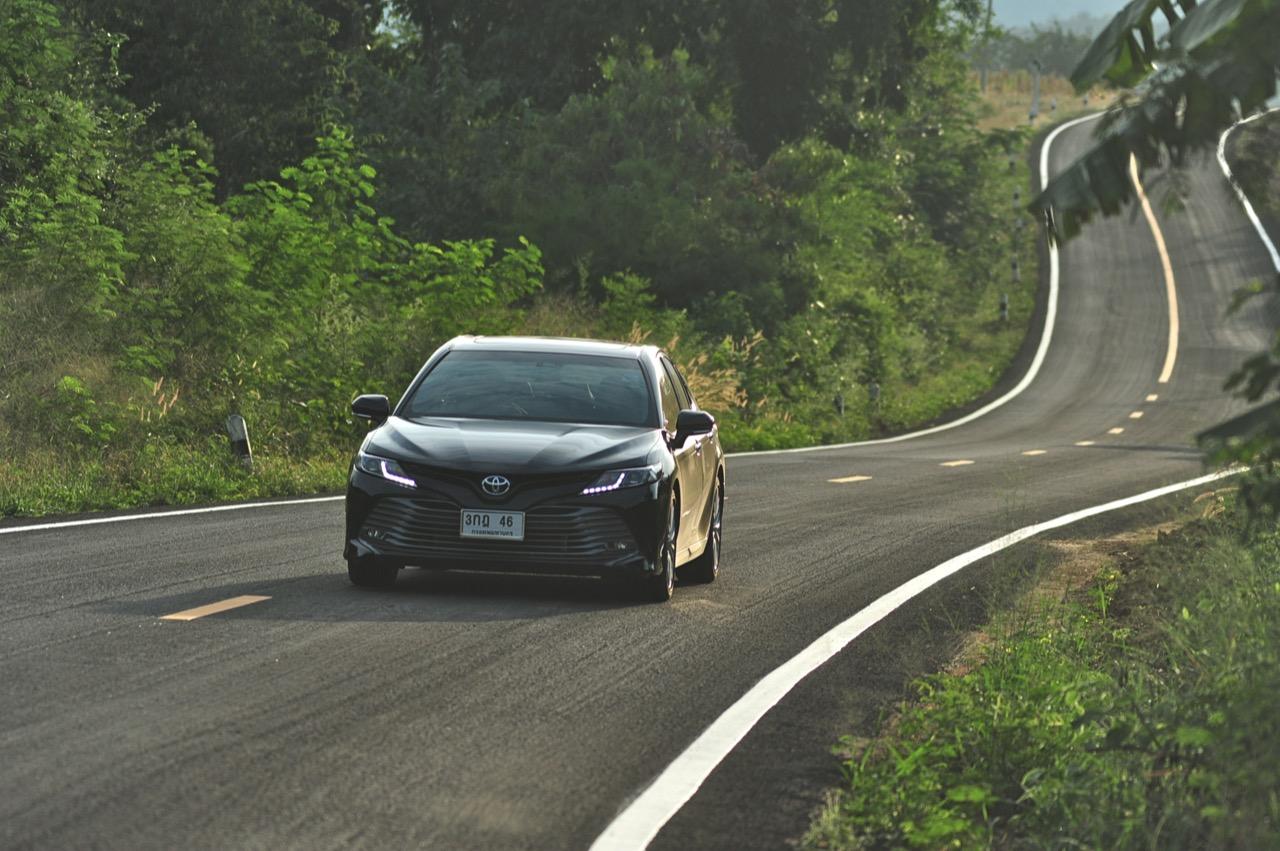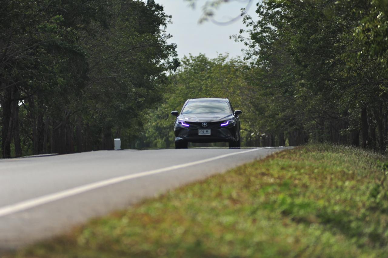 ลองในเมืองไปแล้วก็ถือว่าเป็นรถคันโตที่คล่องตัว พอเอาออกมาลองทางไกลลากกันยาวๆ จากสุพรรณฯ ไปเมืองกาญจนบุรี ก็พบกับความดีงามของแชสซีใหม่ TNGA ที่ปรับให้การควบคุมมีความสมดุลสูง การใช้แพลตฟอร์มใหม่ที่มีความยืดหยุ่นผลิตเป็นรถหลายรุ่นโดยไม่ต้องปรับเปลี่ยนมากนักแถมยังขับดีขึ้นกว่าเดิมคือความสำเร็จของ TNGA หรือ Toyota new Global Architecture กดปุ่มสตาร์ตเครื่องยนต์แต่ละทีมีเสียงเบาๆ จากการทำงานของเครื่อง 2.5 ลิตร Dynamic Force 8AT ที่มีฝูงม้าประจำการถึง 209 ตัว เมื่อทะยานไปบนไฮเวย์คุณก็จะเริ่มเข้าใจจุดประสงค์หลักของ new Camry ที่เน้นความสบายไม่ว่าจะขับหรือนั่งก็จะพบกับคำว่าผ่อนคลายทั้งสิ้นชุดบังคับเลี้ยวในรถยนต์สมัยใหม่เป็นอีกจุดที่ได้รับการใส่ใจ เนื่องจากมันจะส่งผลโดยตรงกับการบังคับควบคุมทิศทาง ถ้าทำออกมาไม่ดีการขับก็จะแย่ตามไปด้วยแบบช่วยไม่ได้ พวงมาลัยไฟฟ้าที่ได้รับการปรับเซตน้ำหนักมาใหม่หมดของ Camry 2.5G ทำให้น้ำหนักของพวงมาลัยใน new Camry 2.5G มากกว่า Camry รุ่นเก่าอย่างชัดเจน เมื่อลองหักพวงมาลัยไปมา สลับซ้ายที-ขวาที ก็จะพบว่ามันตอบสนองต่อการหักเลี้ยวได้ดีมาก ทั้งแรงต้านเบาๆ กับความแม่นยำที่ดีขึ้นกว่าเดิม เป็นรถที่พวงมาลัยดีงาม ทำให้ขับได้คล่องเหมือนกับตั้งใจจะเซตน้ำหนักของพวงมาลัยให้ออกมาเป็นแบบนี้ พวงมาลัยคล้ายรุ่นไฮบริดทั้งการหน่วงน้ำหนักไปตามความเร็วและความคมของการเปลี่ยนช่องทาง เมื่อคุณมีพวงมาลัยที่ดีก็จะทำให้การควบคุมง่ายดายขึ้นไม่ต้องคอยมานั่งแต่งโน่นเติมนี่กับพวงมาลัยเพื่อรักษาทิศทาง