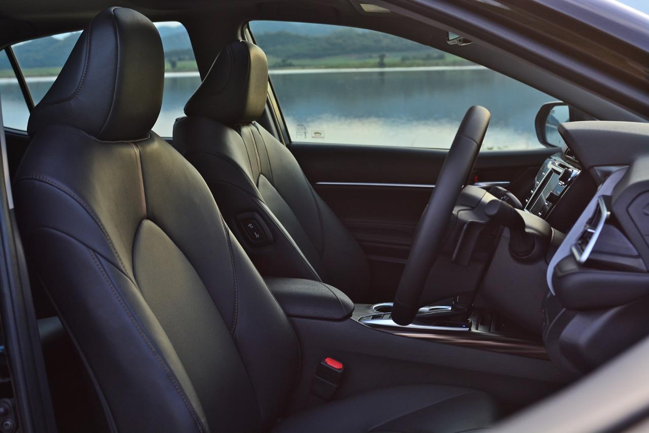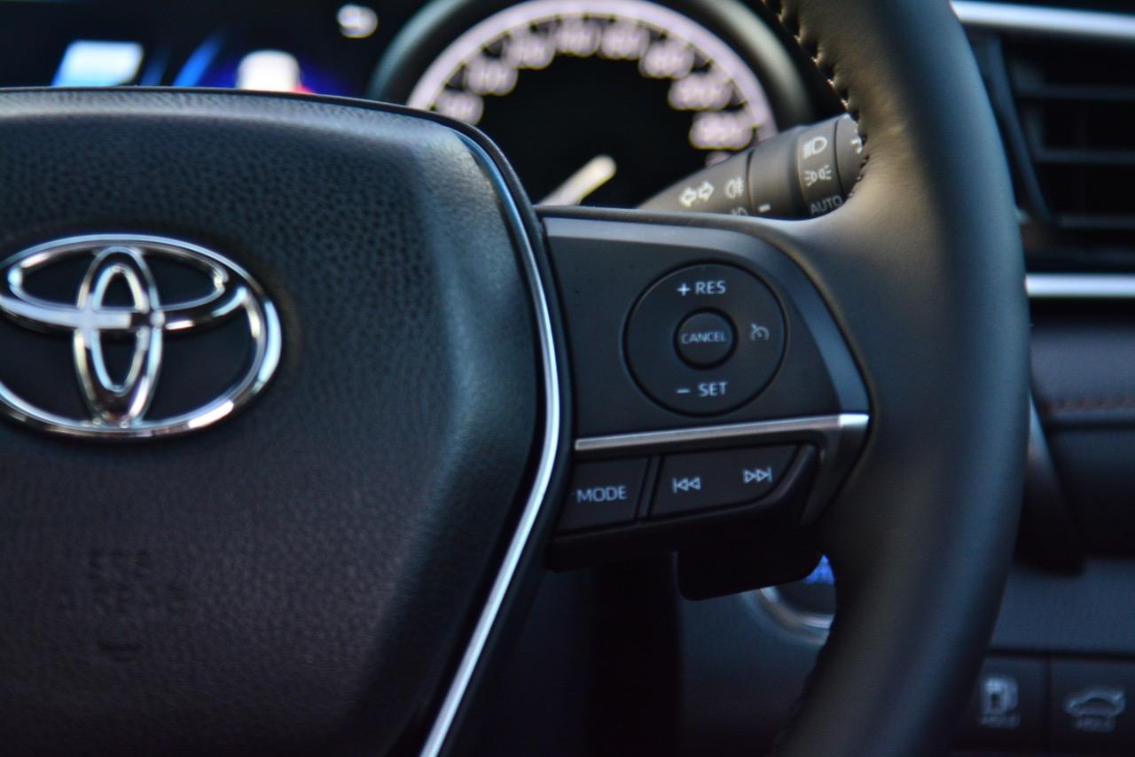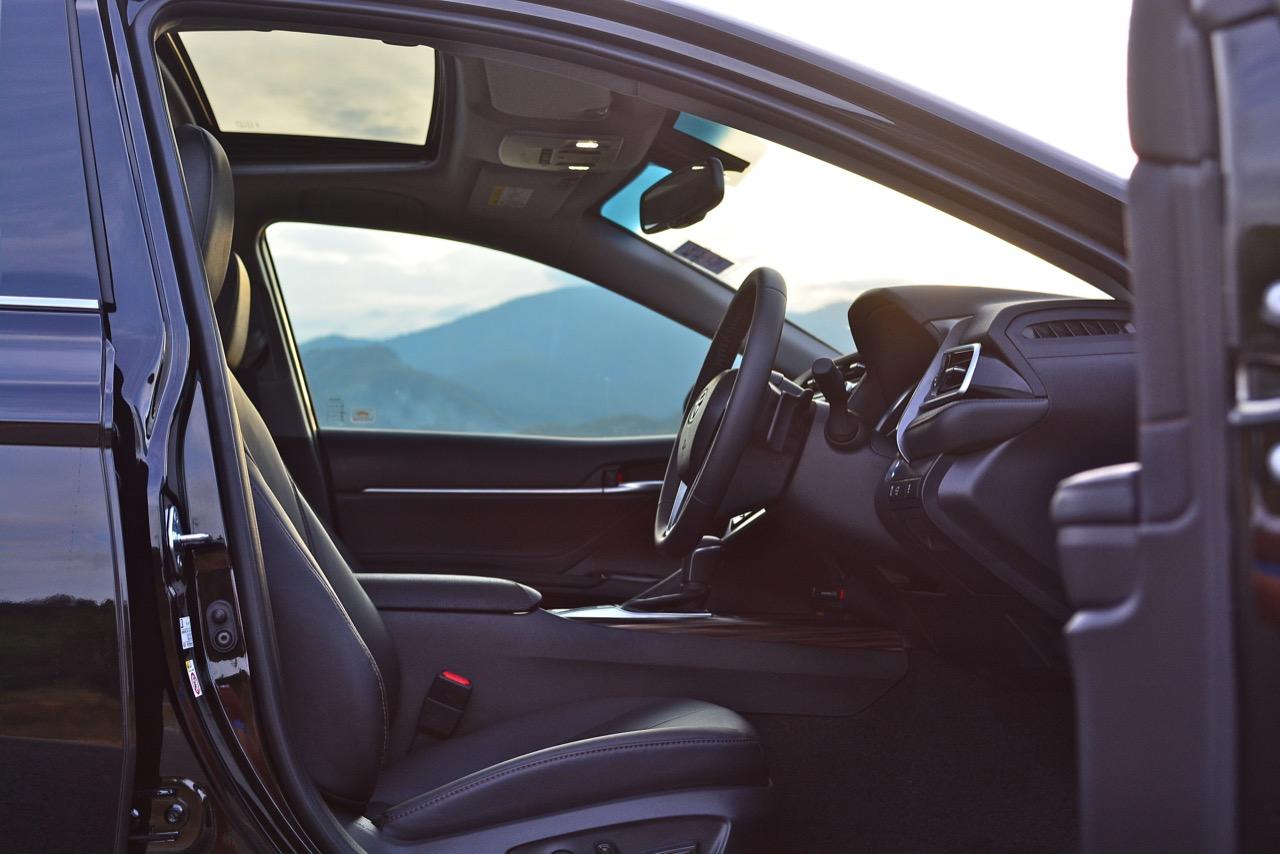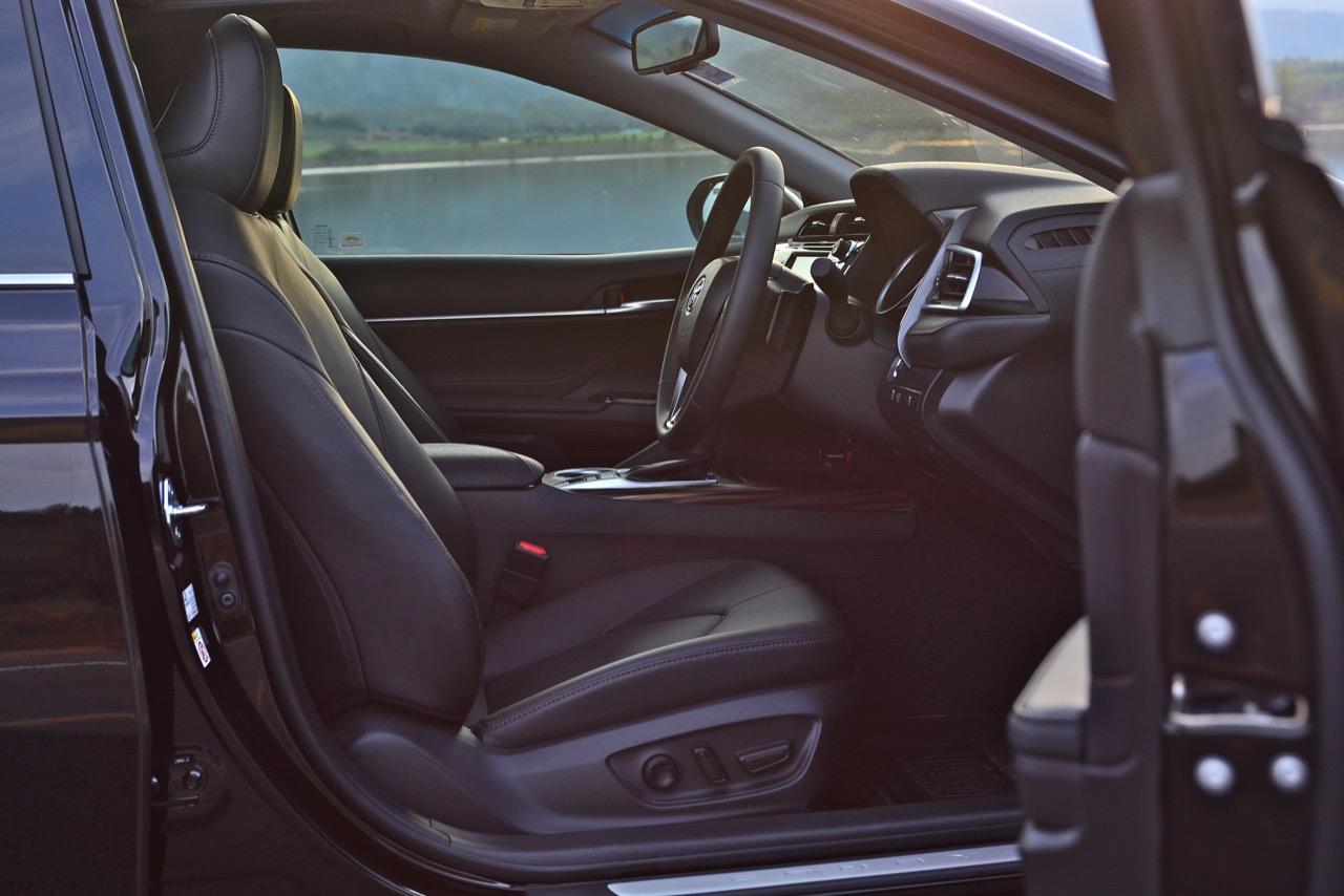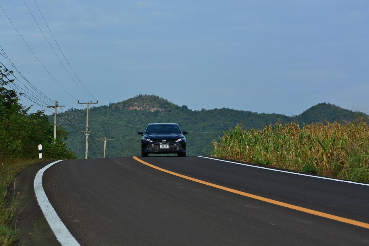 ลองในเมืองไปแล้วก็ถือว่าเป็นรถคันโตที่คล่องตัว พอเอาออกมาลองทางไกลลากกันยาวๆ จากสุพรรณฯ ไปเมืองกาญจนบุรี ก็พบกับความดีงามของแชสซีใหม่ TNGA ที่ปรับให้การควบคุมมีความสมดุลสูง การใช้แพลตฟอร์มใหม่ที่มีความยืดหยุ่นผลิตเป็นรถหลายรุ่นโดยไม่ต้องปรับเปลี่ยนมากนักแถมยังขับดีขึ้นกว่าเดิมคือความสำเร็จของ TNGA หรือ Toyota new Global Architecture กดปุ่มสตาร์ตเครื่องยนต์แต่ละทีมีเสียงเบาๆ จากการทำงานของเครื่อง 2.5 ลิตร Dynamic Force 8AT ที่มีฝูงม้าประจำการถึง 209 ตัว เมื่อทะยานไปบนไฮเวย์คุณก็จะเริ่มเข้าใจจุดประสงค์หลักของ new Camry ที่เน้นความสบายไม่ว่าจะขับหรือนั่งก็จะพบกับคำว่าผ่อนคลายทั้งสิ้นชุดบังคับเลี้ยวในรถยนต์สมัยใหม่เป็นอีกจุดที่ได้รับการใส่ใจ เนื่องจากมันจะส่งผลโดยตรงกับการบังคับควบคุมทิศทาง ถ้าทำออกมาไม่ดีการขับก็จะแย่ตามไปด้วยแบบช่วยไม่ได้ พวงมาลัยไฟฟ้าที่ได้รับการปรับเซตน้ำหนักมาใหม่หมดของ Camry 2.5G ทำให้น้ำหนักของพวงมาลัยใน new Camry 2.5G มากกว่า Camry รุ่นเก่าอย่างชัดเจน เมื่อลองหักพวงมาลัยไปมา สลับซ้ายที-ขวาที ก็จะพบว่ามันตอบสนองต่อการหักเลี้ยวได้ดีมาก ทั้งแรงต้านเบาๆ กับความแม่นยำที่ดีขึ้นกว่าเดิม เป็นรถที่พวงมาลัยดีงาม ทำให้ขับได้คล่องเหมือนกับตั้งใจจะเซตน้ำหนักของพวงมาลัยให้ออกมาเป็นแบบนี้ พวงมาลัยคล้ายรุ่นไฮบริดทั้งการหน่วงน้ำหนักไปตามความเร็วและความคมของการเปลี่ยนช่องทาง เมื่อคุณมีพวงมาลัยที่ดีก็จะทำให้การควบคุมง่ายดายขึ้นไม่ต้องคอยมานั่งแต่งโน่นเติมนี่กับพวงมาลัยเพื่อรักษาทิศทาง