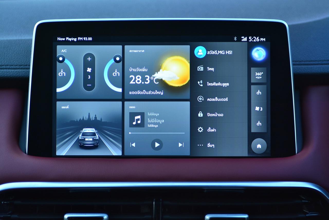 จอมอนิเตอร์กลางระบบสัมผัสขนาดใหญ่ยักษ์สะใจ Smart Touchscreen ขนาด 10 นิ้ว สั่งงานด้วยระบบสัมผัสที่หน้าจอ ควบรวมการปรับตั้งค่าต่างๆ เพื่อความสะดวกสบายและรวดเร็วเชื่อมต่อกับ iSMART เวอร์ชั่นล่าสุดที่มีความเสถียรมากกว่าเดิม คุณสามารถปรับตั้งอุณหภูมิภายในห้องโดยสารด้วยระบบแอร์แบบดิจิทัล Dual Zone แยกส่วน พร้อมช่องแอร์ของผู้โดยสารตอนหลัง แจ้งเตือนอุณหภูมิภายนอก ระบบแผนที่นำทาง ระบบให้ความบันเทิงผ่านอุปกรณ์ต่อเชื่อมทั้งบลูทูธ USB วิทยุ จอภาพมอนิเตอร์กลางขนาด 10 นิ้วยังเป็นจอของกล้องมองภาพรอบคันแบบ 360 องศาพร้อมเส้นระนาบสำหรับกะระยะและสัญญาณเสียงแจ้งเตือนการขับเข้าไปใกล้กับสิ่งกีดขวาง New MG HS ยังมีไฟตกแต่งในเวลากลางคืนหรือ Ambient Lights ปรับได้ถึง 64 เฉดสีพอๆ กับ Mercedes-Benz รุ่นใหม่ กับไฟ welcome light เท่ๆ ที่ใช้ตราสัญลักษณ์ MG ส่องลงพื้นเมื่อเปิดประตูฝั่งคนขับในตอนกลางคืน iSMART เวอร์ชั่นล่าสุดของ MG HS X มาพร้อมระบบปฏิบัติการ Smart Command สั่งงานด้วยเสียงภาษาไทย เช่น โทรออก สั่งงานควบคุมระบบเครื่องเสียง ระบบปรับอากาศ ระบบเปิด-ปิดกระจกฝั่งคนขับ ระบบเปิด-ปิดหลังคา Panoramic sunroof สั่งให้ค้นหาจุดที่น่าสนใจยามขับท่องเที่ยวเดินทาง หรือ Point of Interest ผ่านระบบนำทางด้วยดาวเทียม หรือสั่งการผ่าน MG Mobile Application บนโทรศัพท์ เพื่อค้นหาเพลงที่อยากฟัง เพลงดังออนไลน์ ค้นหาร้านอาหารเจ้าเด็ดๆ สถานที่ท่องเที่ยวและโรงแรมที่พัก แสดงผลสภาพการจราจร อัปเดตข่าวสาร ตรวจสอบสถานะของตัวรถในระบบต่างๆ สั่งงานให้ล็อกหรือปลดล็อกประตูแบบอัตโนมัติ ตรวจสอบตำแหน่งของรถ แจ้งเตือนเมื่อพบสิ่งผิดปกติ ช่วยค้นหาศูนย์บริการ MG ทั้งหมดนี้ก็ใช้ไม่หมดละครับ