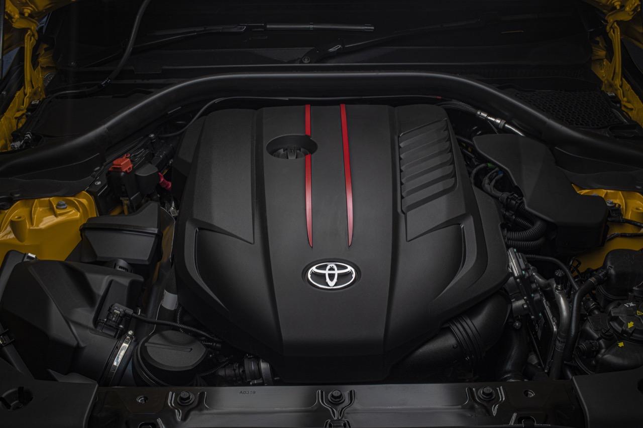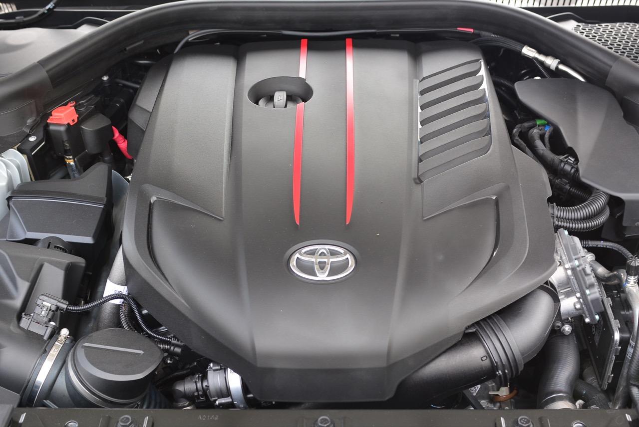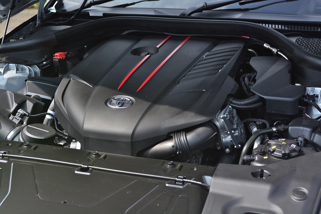 Toyota GR Supra ติดตั้งเครื่องยนต์เบนซินแบบ 6 สูบเรียง เป็นเครื่องยนต์รุ่นเดียวกับ BMW Z4 M40i มาพร้อมเทคโนโลยี TwinPower Turbo อัดอากาศด้วยเทอร์โบแปรผันเดี่ยวตัวเดียวโดดๆ Twin Scroll Turbo ระบบส่งกำลังใช้เกียร์อัตโนมัติ 8 สปีด ของ ZF กำลังถูกจูนจนมีม้าพอให้ได้เสียวสันหลังที่ 340 ตัว แรงม้าของ GR Supra เมื่อจับขึ้น Dyno test มากกว่า Z4 M40i นิดๆ แรงบิดสูงสุดทำได้ถึง 500 นิวตันเมตร หรือ 50.1 กิโลกรัม-เมตร ที่ 4,000-5,380 รอบต่อนาที อัตราสิ้นเปลืองเฉลี่ย 8.4 ลิตรต่อระยะทาง 100 กม. (11.9 กิโลเมตรต่อลิตร) อัตราเร่ง 0-100 กิโลเมตรต่อชั่วโมงใน 4.6 วินาที และ 80-120 กิโลเมตรต่อชั่วโมง ในเวลา 5 วินาที ความเร็วสูงสุด 250 กิโลเมตรต่อชั่วโมง เครื่องยนต์ 6 สูบเรียงวางตามยาวโดยร่นแท่นเครื่องแท่นเกียร์ให้เข้าใกล้กับจุดศูนย์กลางของรถเพื่อการกระจายน้ำหนักที่ดี เครื่องยนต์ 6 สูบเทอร์โบเดี่ยว ติดตั้งอินเตอร์คูลเลอร์เพื่อช่วยลดอุณหภูมิไอดี ทำให้ GR Supra เป็นรถที่เร็วอย่างน่ากลัว และต้องใช้ความคุ้นเคยกันพอสมควรก่อนจะคิดปล่อยม้า 340 ตัวลงพื้นแบบเต็มๆ