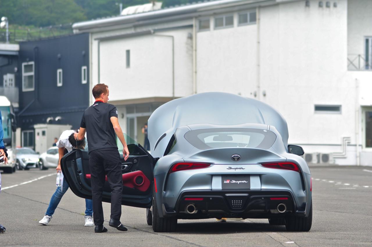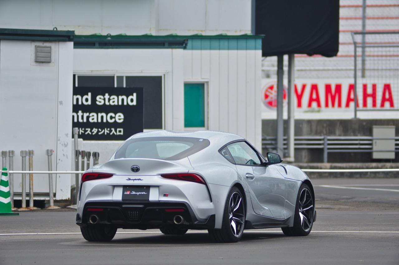 คุณสามารถขับ GR Supra ได้ง่ายเหมือนกับการขับ Vios หรือ Yaris เครื่อง 6 สูบเทอร์โบและมีกำลังมหาศาลหลับใหลไปตามสภาพของการจราจรที่ถูกกำหนดให้ใช้ความเร็วได้ไม่เกิน 50 กิโลเมตรต่อชั่วโมง เป็นการขับออกถนนปกติบนเกาะญี่ปุ่นเป็นครั้งแรกของผมหลังจากใช้ชีวิตส่วนใหญ่ทดสอบรถอยู่แต่ในสนามแข่งหรือสนามทดสอบของบริษัทรถญี่ปุ่นมาโดยตลอด GR Supra เลี้ยวไปตามทางที่คดเคี้ยวได้อย่างแม่นยำ ในโค้งมันก็ยังทำตัวได้อย่างสมดุลจากการกระจายน้ำหนักที่โดดเด่นและมีจุดศูนย์ถ่วงที่ต่ำกว่ารถทั่วไป ทางตรงช่วงขึ้นเขา GR Supra ดีดตัวพุ่งทะยานทิ้งรถคันอื่นเอาไว้ข้างหลัง Hideto Yasuoka ปรับโหมดการขับด้วยการกดไปที่สวิตช์ Sport ผมทำตามด้วยการส่งคันเร่งเต็มที่ GR Supra โต้กลับทันทีด้วยแรงดึงมหาศาลระดับ 500 นิวตันเมตรและกระชากพรวดเดียวก็มาถึงจุดสูงสุดของสันเขาพร้อมกับเสียงท่อท้ายที่ไพเราะเพราะพริ้งราวกับเครื่อง V8 ของซุปเปอร์คาร์จากอิตาเลียน เมื่อถึงจุดแวะพัก พอจอดรถเรียบร้อย Hideto Yasuoka หันมาถามว่า เป็นยังไงรู้สึกอะไรบ้างมั้ย ถ้าคุณยังไม่สาแก่ใจในถนนชนบทของญี่ปุ่นเดี๋ยวตอนบ่ายเราจะไปมันกันต่อในสนามแข่ง! ตัวถังของ Supra ใหม่ ทั้งเตี้ย และกว้าง ดูดุดันสมกับเป็นรถที่เกิดมาเพื่อความสปอร์ต เสียงรอบเดินเบาทุ้มและมีความดังในระดับที่บ่งบอกได้ว่าเป็นรถไม่ธรรมดา เครื่องยนต์เทอร์โบ 3.0 ลิตร 340 แรงม้าวางอยู่ข้างหน้า แน่นอนว่าเป็นเครื่องยนต์ของ BMW แต่ใช้ Software คุมเครื่องของ Toyota เกียร์ และเฟืองท้ายลิมิเต็ดสลิปไฟฟ้าจาก BMW เฟืองท้ายไฟฟ้านี้ ทำงานโดยใช้มอเตอร์ปรับอัตราทดส่วนต่างของเฟืองภายในเวลาอันรวดเร็วโดยใช้เฟืองทดแยกอีกตัว รูปทรงของรถนั้นมีจุดเด่นที่หลังคานูนคู่ เส้นสายด้านข้างค่อยๆ บานออกเหมือนขวดโค้ก กระจกหน้าและข้างแบบ Wraparound คล้ายแว่นกันแดดทรงทันสมัย และท้ายรถที่มีขนาดใหญ่ ทำให้รถดูโตกว่าความเป็นจริงทั้งที่ขนาดตัวมันก็เท่าๆ กับ Porsche Cayman