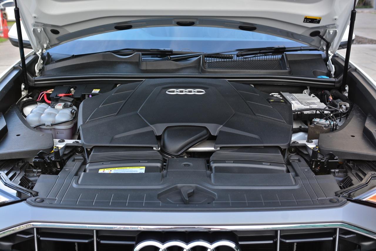 ขุมกำลังอันเป็นที่มาของสมรรถนะที่ดีเยี่ยม Audi Q8 55TFSi Quattro S-Line วางเครื่องยนต์เบนซินแบบ mild hybrid (MHEV) V6 อัดอากาศด้วยเทอร์โบ เครื่องยนต์ V6 มีปริมาตรความจุ 2,995 ซีซี ความกว้างกระบอกสูบ 84.5 มิลลิเมตร ช่วงชัก 89.0 มิลลิเมตร อัตราส่วนกำลังอัด 11.2:1 มีกำลังสูงสุด 245 กิโลวัตต์ หรือ 340 แรงม้า ที่ 5000-6400 รอบต่อนาที แรงบิดจัดเต็มมากถึง 500 นิวตันเมตร ที่ 1370-4500 รอบต่อนาที ระบบส่งกำลังใช้เกียร์อัตโนมัติขับเคลื่อน 4 ล้อ Tiptronic 8 speed พร้อมกลไก Quattro with ultra technology ระบบ MHEV ติดตั้งเครื่องกำเนิดไฟฟ้ากระแสสลับ (BAS) 48V แบตเตอรี่ Lithium-ion แยกจ่ายกระแสไฟฟ้าเพื่อไม่ทำให้กินกำลังแบตเตอรี่มากเกินไป เกียร์อัตโนมัติขับเคลื่อน 4 ล้อ Tiptronic ZF 8 speed พร้อมกลไก Quattro with ultra technology กระจายแรงบิดผ่านกระบวนเฟืองสุริยะ หรือ Planetary Gear ระบบ Quattro ใน Q8 ทำงานด้วยกลไกเฟืองต่างขนาดควบคุมด้วยสมองกลอิเล็กทรอนิกส์ ในสภาวะของการขับแบบปกติ Quattro จะกระจายกำลังแรงขับเคลื่อนไปที่ล้อหน้าและล้อหลังในอัตราส่วน 40/60 พร้อมส่งแรงบิดไปที่ล้อหน้าได้อย่างอิสระมากถึง 70/30 หรือส่งแรงบิดไปที่ล้อหลังได้ถึง 85% (หน้า 15% หลัง 85%) การกระจายแรงบิดในลักษณะดังกล่าวมอบสัมผัสที่มั่นคงและเต็มไปด้วยความเสถียรเมื่อต้องวิ่งผ่านผิวถนนที่มีความหลากหลาย
