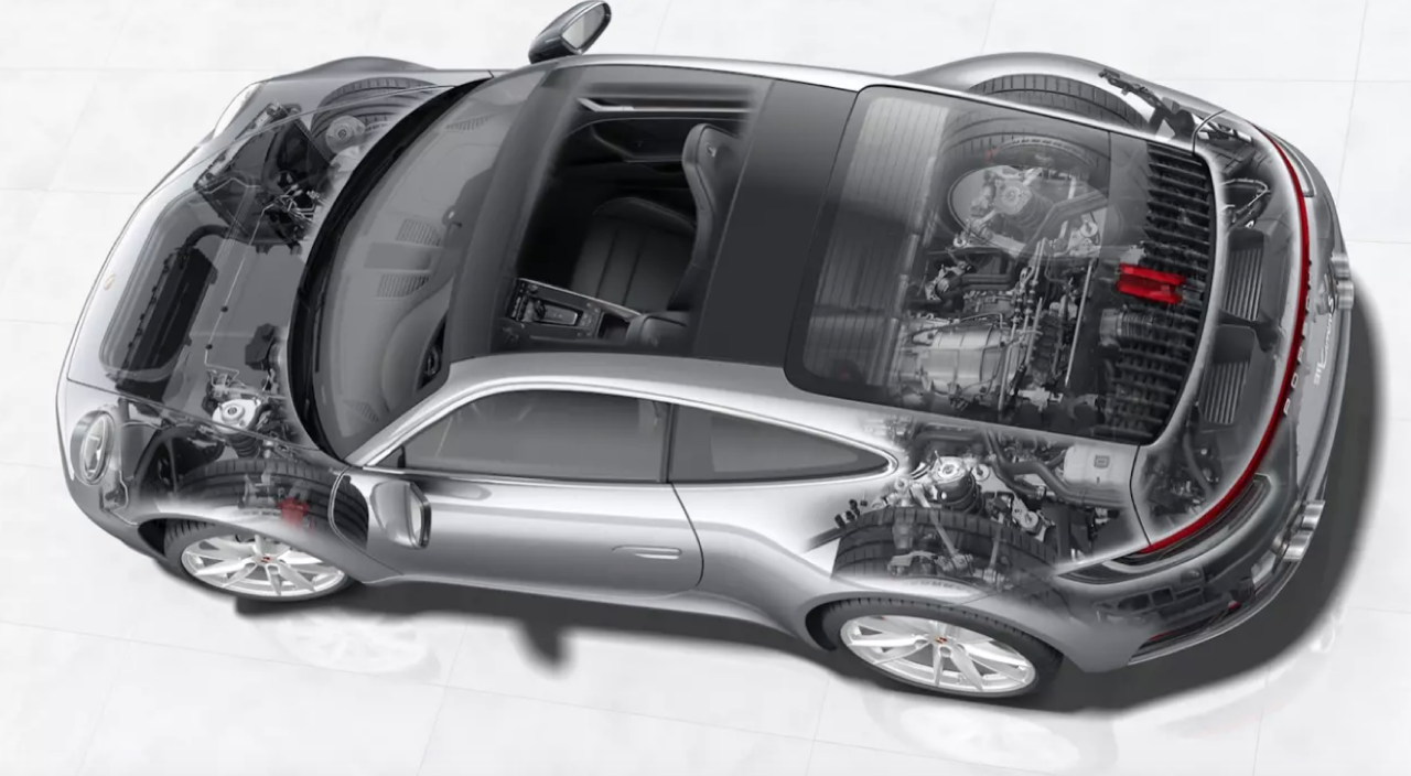 รหัสตัวถัง 992 เติมเต็มงานวิศวกรรมยานยนต์ที่ก้าวล้ำทั้งในเรื่องวัสดุศาสตร์ การลดน้ำหนัก ขุมกำลังที่ถูกปรับจูนใหม่ในด้านวงจรการทำงานของระบบอัดอากาศ เปลี่ยนแปลงระบบจ่ายเชื้อเพลิง ย้ายตำแหน่งของยางแท่นเครื่องใหม่หมดและเปลี่ยนชุดส่งกำลังแบบ PDK จาก 7 สปีดมาเป็นเกียร์ PDK ใหม่แบบ 8 สปีด ระบบขับเคลื่อน PTM และชุดควบคุมเสถียรภาพ PASM สอดรับกับสมรรถนะในการวิ่งบนถนนที่เปียกชื้นด้วย Wet Mode