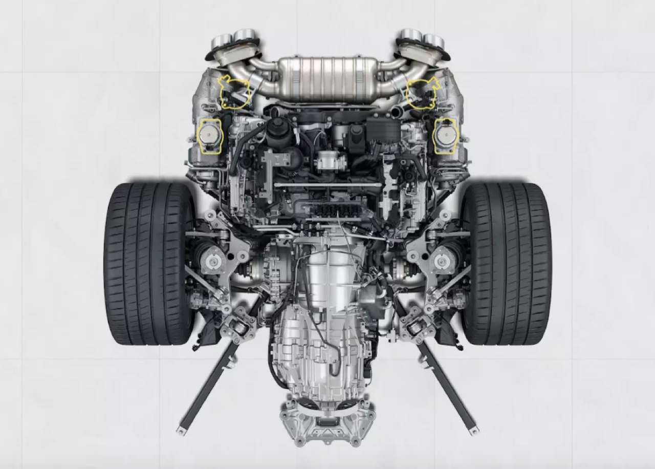 อัตราส่วนกำลังอัดของเครื่องยนต์เพิ่มขึ้นจาก 10.0:1 เป็น 10.2:1 มีการขยับขยายขนาดของเทอร์โบกังหันเทอร์ไบน์มีขนาด 48 มิลลิเมตร ใบพัดด้านอัดอากาศเข้ามีขนาด 55 มิลลิเมตร ชุดเทอร์โบคู่หรือ Bi-Turbo ติดตั้งเวสเก็ตไฟฟ้าที่มีความแม่นยำในการทำงานสูง รับหน้าที่ควบคุมแรงดันในระบบอัดอากาศ เครื่องยนต์ของ 911/992 ยังติดตั้งชุดกรองอากาศแบบใหม่ สามารถป้องกันฝุ่นผงขนาดเล็กที่มักพบในไอเสียของรถยนต์