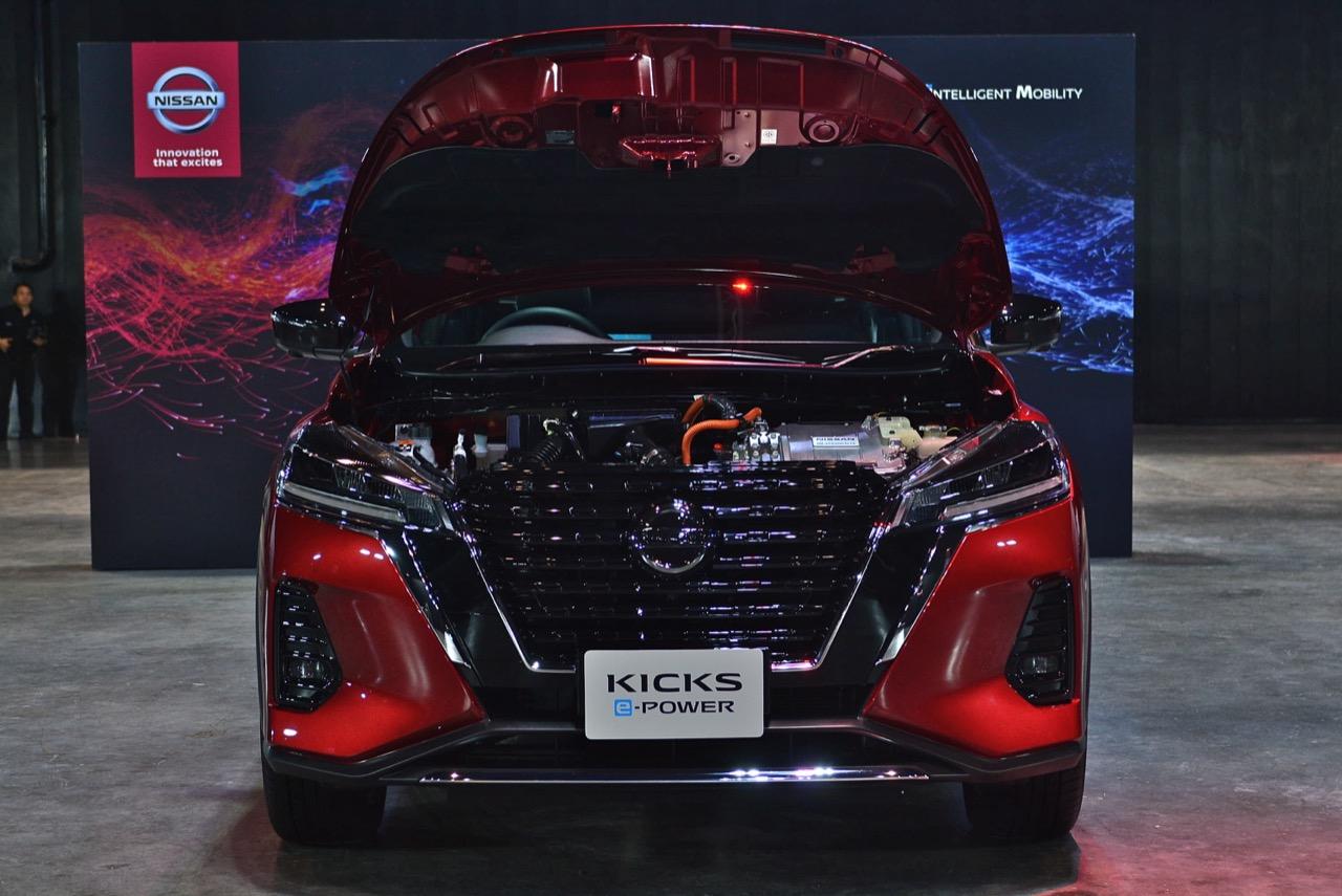 แนวคิด e-Power จาก Nissan ใช้หลักการ range extender นั่นก็คือ เครื่องยนต์ตัวเล็กแค่ 3 สูบ จะรับหน้าที่ปั่นไฟโดยมีตัวแปลงกระแสไฟฟ้าหรือ Inverter ทำการแปลงกระแสไฟฟ้าป้อนให้กับมอเตอร์ไฟฟ้าในระบบขับเคลื่อน แนวคิดดังกล่าวถูกนำไปใช้ใน Nissan Note และรถ Mini MPV อย่าง Nissan Serena โดย Kicks ถือว่าเป็นรถยนต์รุ่นล่าสุดที่ใช้ระบบขับเคลื่อนที่พัฒนามานานกว่า 6 ปีแล้ว เครื่องยนต์เบนซินแถวเรียง 3 สูบของมันมีความจุแค่ 1,198 ซีซี. ปั่นไฟผ่าน Inverter ป้อนให้กับมอเตอร์ไฟฟ้า EM57 ระบบ e-Power ของ Nissan Kicks มีเรี่ยวแรงประมาณ 95 กิโลวัตต์ หรือ 129 แรงม้า เป็นแรงจากมอเตอร์ไฟฟ้าล้วนๆ โดยที่เครื่องยนต์ไม่ได้มาเกี่ยวข้องกับการปั่นให้ล้อหมุนแต่อย่างใดทั้งสิ้น สำหรับแรงบิดสูงสุดอยู่ที่ 260 นิวตันเมตร เมื่อเทียบกับแรงบิดของเครื่องยนต์จะคล้ายกับแรงบิดจากเครื่องดีเซลตัวเล็ก Mazda Skyactiv-D 1.5 ลิตร ซึ่งมีแรงบิดประมาณ 250 นิวตันเมตร สำหรับแรงบิดจากมอเตอร์ของ Kicks แรงกว่า 10 นิวตันเมตร ถือว่ามีกำลังแรงฉุดลากอยู่ในเกณฑ์ดีเลยทีเดียว