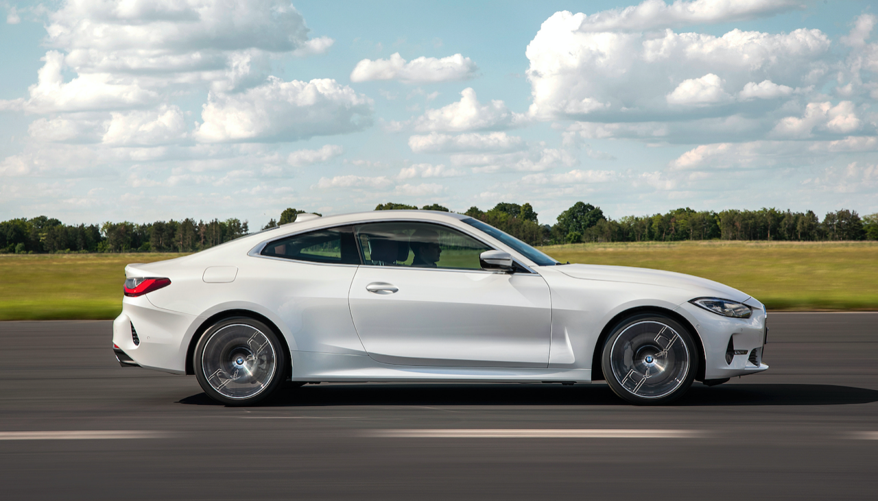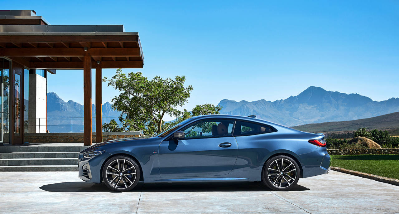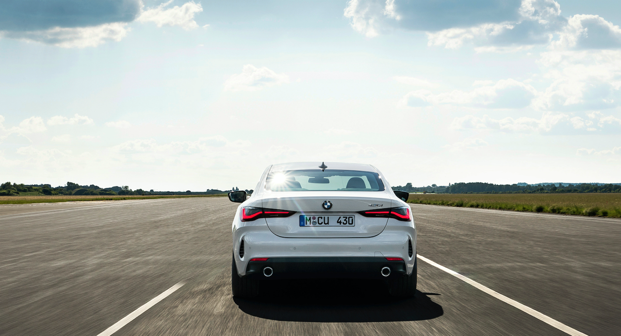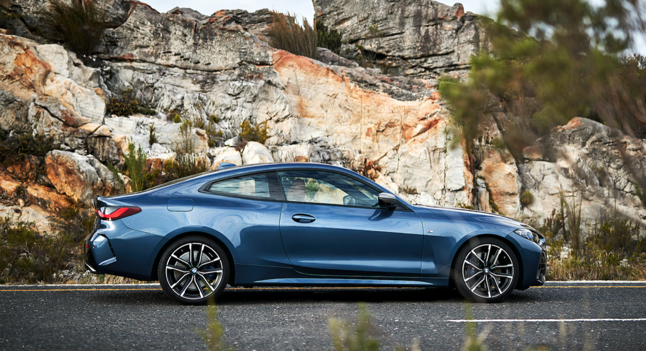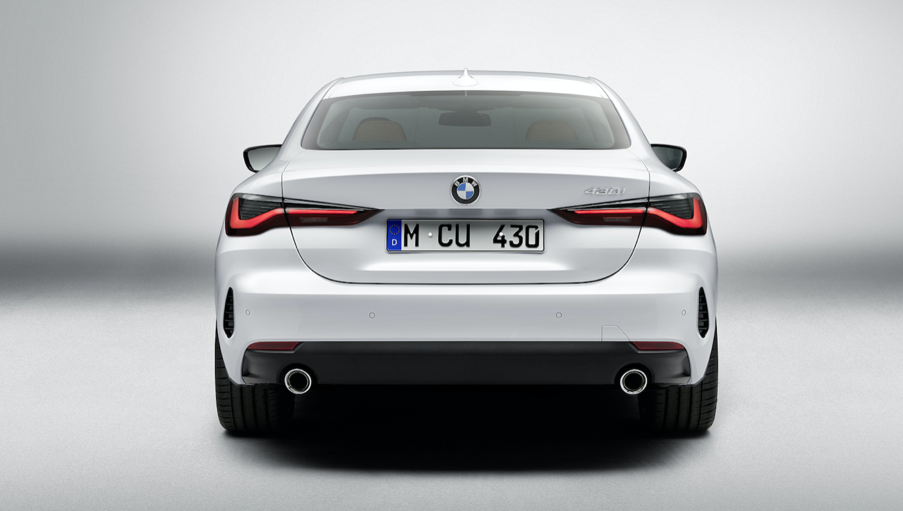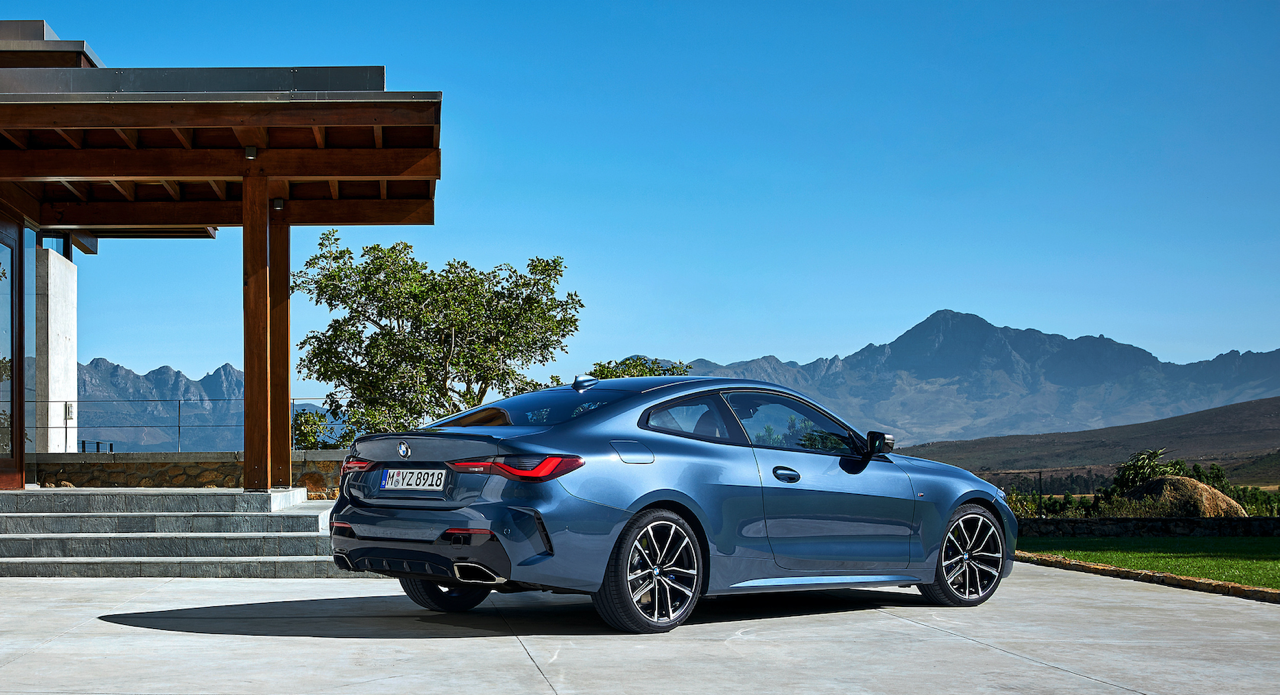 รูปลักษณ์ที่ลงตัวบริเวณด้านข้างตัวถัง ออกแบบได้อย่างสวยงามด้วยเส้นนำสายตากึ่งกลางตัวรถลากจากแก้มข้างไปจดกับแนวของโป่งซุ้มล้อหลัง เส้นนำสายตาบริเวณชายล่างของบานประตูสอดรับกับแนวโป่งของล้อหน้า ล้ออะลูมิเนียมลายใหม่ขอบ 20 นิ้ว บานประตูไร้กรอบกระจกสไตล์ Sport Coupe ขอบของบานกระจกเดินเส้นอัลลอยสีเงินยวง จุดที่สวยงามอีกตำแหน่งก็คือองศาความลาดเอียงของเสาท้ายที่สอดรับกับผืนหลังคาทรงโค้ง เสาอากาศทรงครีบฉลามยังได้รับความนิยมและนำมาติดตั้งเหมือนเดิม ไฟท้าย LED ทรงยาวเข้ากับฝาท้ายไฟฟ้าและกันชนหลัง สำหรับ New Series-4 รุ่นมาตรฐานติดตั้งท่อระบายไอเสียทรงกลม แยกสองฝั่งซ้าย-ขวา ส่วน New Series-4 รุ่นสูงสุด M440i xDRIVE ใช้ปลายท่อระบายไอเสียทรงสี่เหลี่ยมคางหมู (คล้ายท่อของ Z4 M40i) มิติตัวถัง ยาว 4,472 มิลลิเมตร กว้าง 2,080 มิลลิเมตร สูง 1,386 มิลลิเมตร ความยาวฐานล้อ 2,850 มิลลิเมตร น้ำหนัก 1,622 กิโลกรัม (รุ่น M440i xDRIVE)