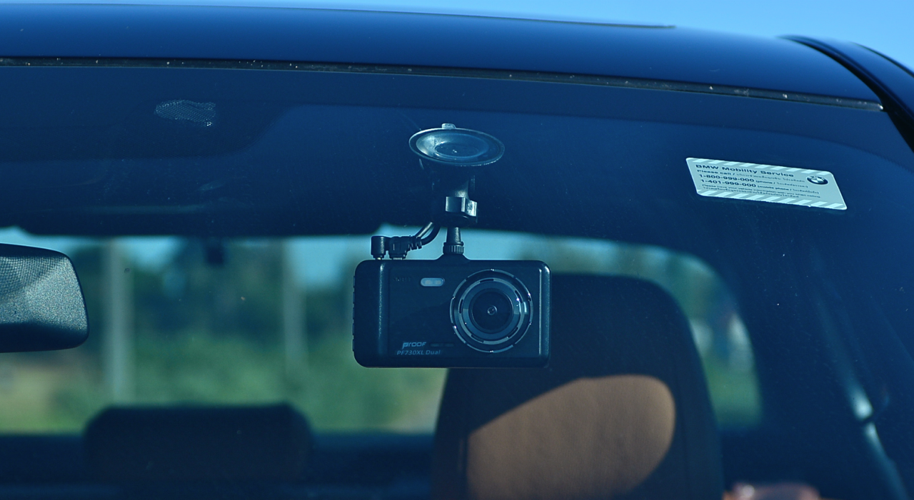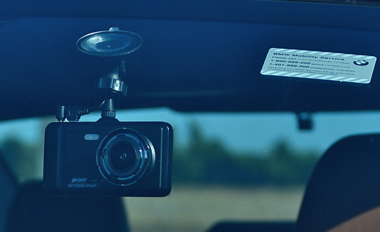 Proof บริษัทกล้องติดรถชั้นนำในไทย ซึ่งขายสินค้าประเภทกล้องติดรถยนต์ที่มีคุณภาพ ส่งกล้องรุ่นใหม่ PF730XL Dual ราคา 4,790 บาท มาให้ทดลองประสิทธิภาพการทำงาน PF730XL Dual เป็นกล้องฝาแฝดแบบ Dual มาทั้งกล้องด้านหน้าและกล้องด้านหลัง แยกบันทึกคนละเมม สายกล้องหน้ายาว 3.5 เมตร สายกล้องหลังยาว 8 เมตร ตัวดูดกระจกสุญญากาศ คู่มือการใช้งานและใบรับประกันสินค้า หลังจากการติดตั้งด้วยการซ่อนสายทั้งหมดอย่างเรียบร้อยของช่างจาก Proof โดยทำการซ่อนสายไฟทั้งหมดอย่างเนียน ไม่มีสายโผล่หรือห้อยมาแบบไส้กระสือเหมือนกล้องยุคแรกๆ อีกต่อไป การเดินสายที่มีความชำนาญของช่างจากบริษัท Proof ช่วยทำให้เกิดความเรียบร้อยปราศจากสายที่รกรุงรัง โดยเฉพาะรุ่น PF730XL Dual ที่มาทั้งกล้องหน้าและหลัง พร้อมสายกล้องที่ยาวเหยียดเผื่อไว้สำหรับติดตั้งในรถที่มีความกว้างและยาว เช่น รถตู้ MPV