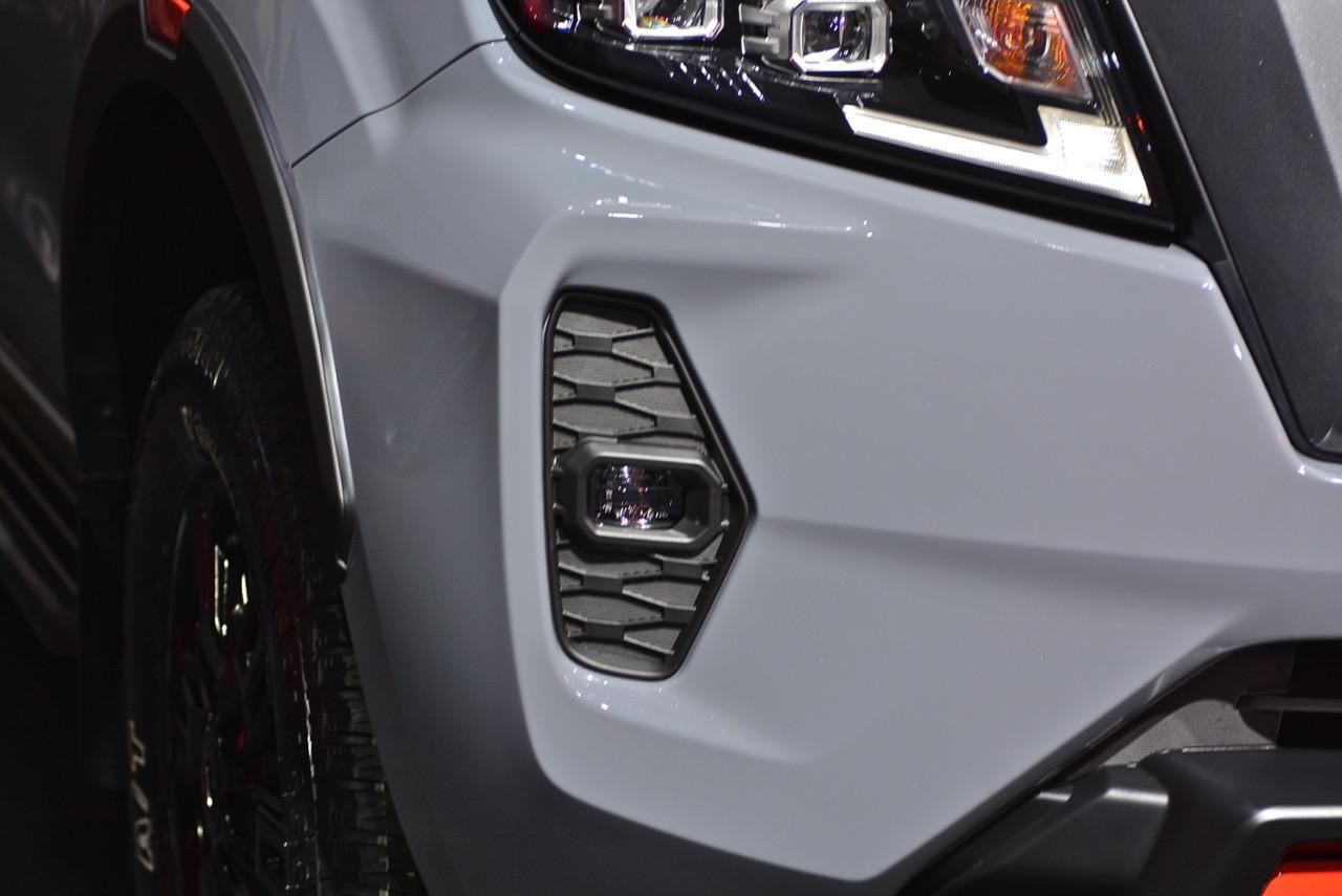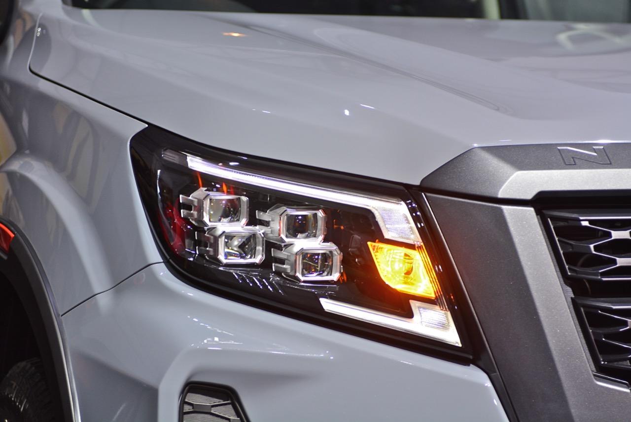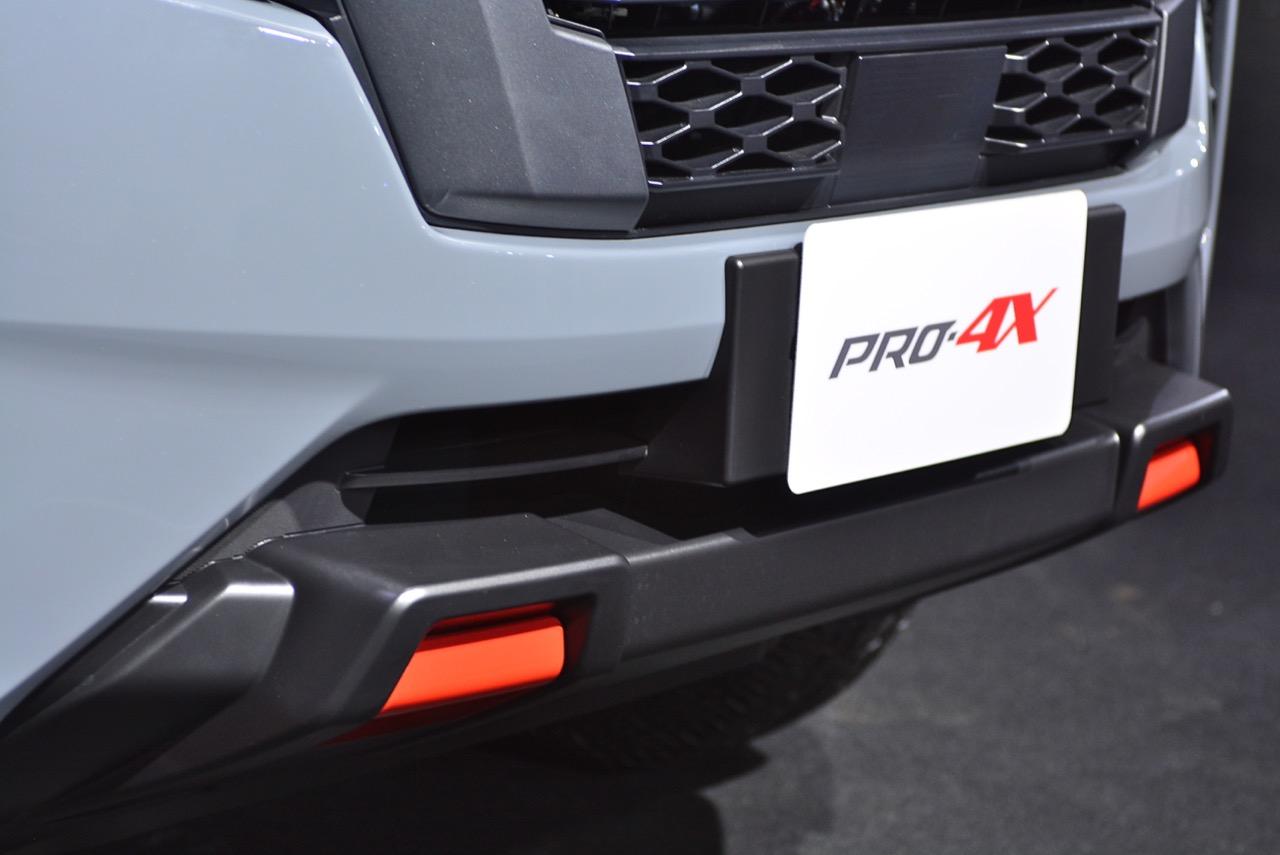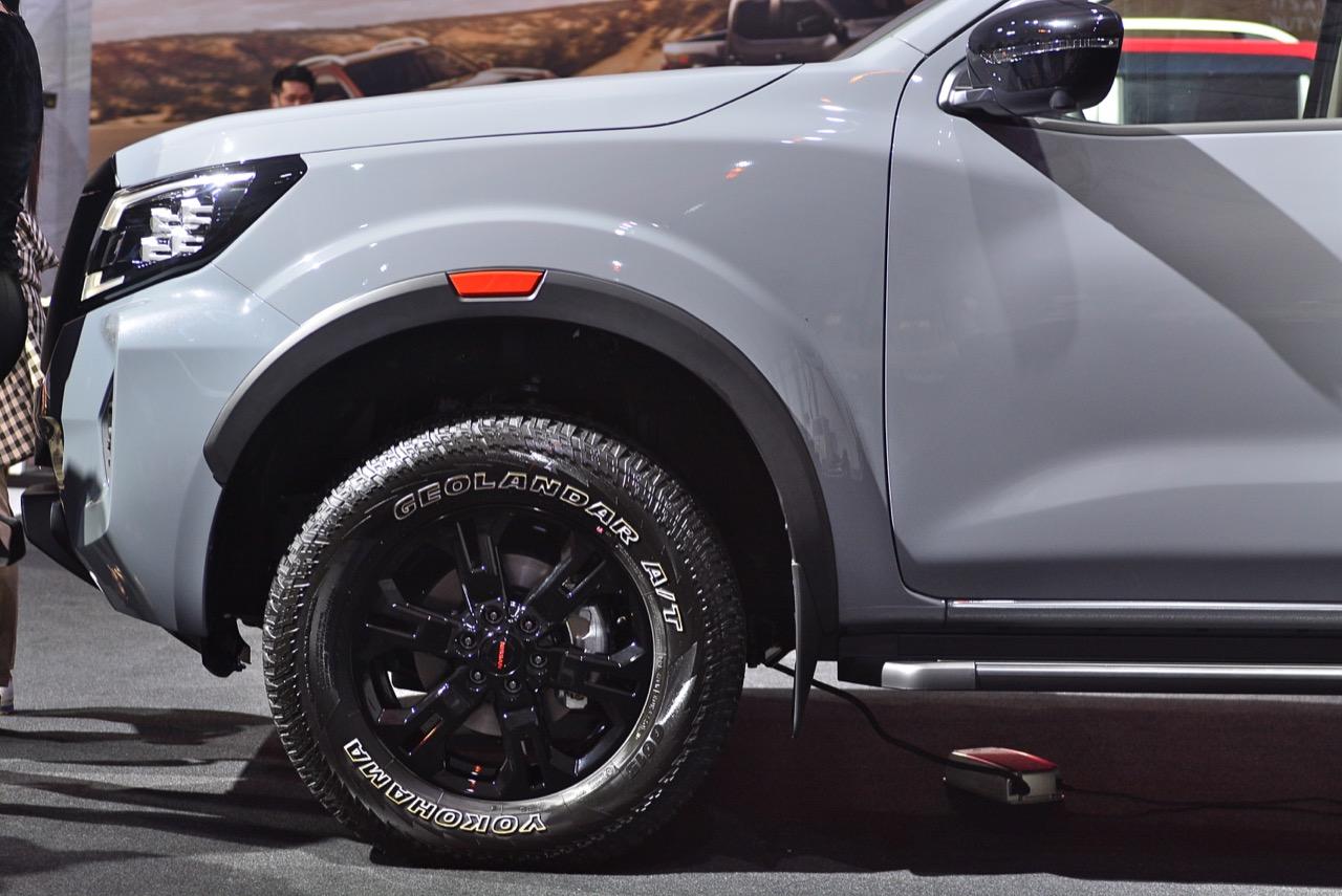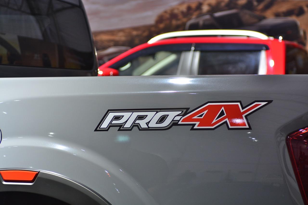 งานดีไซน์ใบหน้าใหม่ของ Navara รุ่นปรับโฉม Pro4X ออกแบบกระจังหน้าใหม่ Interlock กระจังพลาสติกสีเงิน ช่องรับอากาศแบบตาข่ายที่มีลวดลายซับซ้อนสวยงาม ไฟหน้าใหม่คล้ายไฟของรถกระบะ Titan ที่ขายในอเมริกา ระบบไฟหน้าแบบ QUAD - LED คุณภาพสูง 4 ดวง พร้อมไฟหรี่กลางวัน Daytime Running Light ไฟท้ายแบบ LED แบบเส้นเดียว ซุ้มล้อใหม่ขยายขนาดให้กว้างขึ้น สอดรับกับ ล้ออัลลอย ขอบ 17 นิ้ว ลาย 6 ก้านอย่างบึก สี gun metallic ยาง Yokohama Geolandar A/T 255/65R17 110H