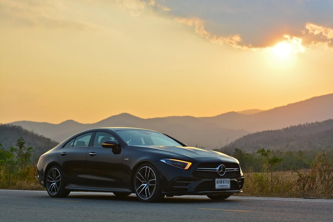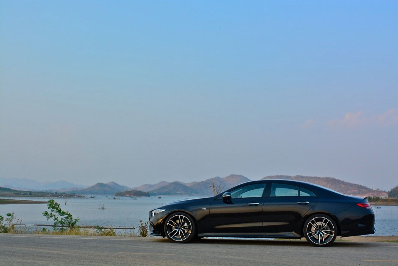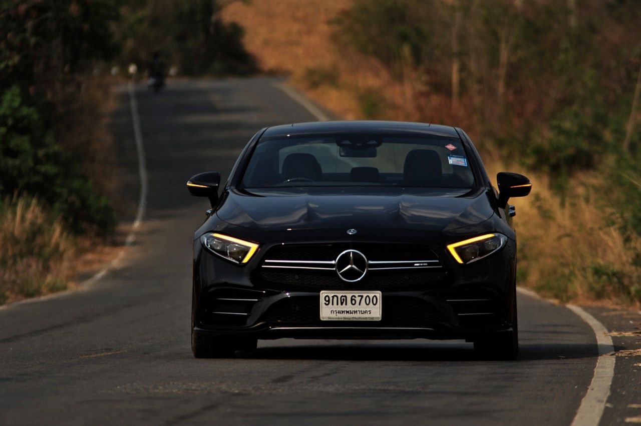 ผมลากเจ้าตราดาวสีดำคันนี้ไปแถวด่านช้าง ทะลุออกอ่างเก็บน้ำลำตะเพิน แล้วขับผ่านโครงการพระราชดำริ อ่างเก็บน้ำห้วยองคต ที่เงียบสงบและสวยงาม กำลัง 435 แรงม้า กับแรงบิด 520 นิวตัน-เมตร (แรงบิดจากมอเตอร์ไฟฟ้าในระบบ EQ Boost 250 นิวตัน-เมตร) พร้อมระบบขับเคลื่อน 4 ล้อ ที่ฉลาดหลักแหลมอย่างระบบ 4MATIC+ ชุดควบคุมระบบขับเคลื่อนเพื่อกระจายแรงบิดให้มีความสมดุลตลอดการขับขี่ ช่วงล่าง Adaptive Air Suspension ที่ถูกปรับปรุงใหม่ทั้งหมด ผลที่ได้รับก็คือ CLS 53 AMG เร็วพอที่จะไล่จี้ BMW M4 แบบสบายๆ ทั้งๆ ที่คันใหญ่กว่าเยอะ เมื่อกดคันเร่งลงลึกในโหมด Comfort ความรู้สึกย้อนแย้งก็เริ่มเกิดขึ้น เมื่อคุณใช้โหมดธรรมดาสามัญในการขับเคลื่อนรถสปอร์ตสองบุคลิกคันนี้ แต่ดันทะลึ่งขับเร็ว เซนเซอร์ที่ตรวจจับการทำงานของคันเร่งไฟฟ้าพยายามสื่อสารกับ ECU ว่า ควรจะเปิดทุกสิ่งทุกอย่างตามที่คนขับต้องการ หลังจากนั้นแค่แวบเดียว เสียงเครื่องยนต์ที่เคยดังเบาๆ แบบสุภาพก็เปลี่ยนไปทันที CLS 53 AMG แตกต่างจาก AMG ทั่วไป ในด้านของบุคลิก ส่วนสมรรถนะ การเร่งจาก 0-100 กิโลเมตรต่อชั่วโมงที่ว่องไวนั้นสูสีกับพี่น้องในตระกูล 53 ทุกรุ่น คือพอขับแล้วก็ให้ความรู้สึกในการตอบสนองที่คล้ายกัน