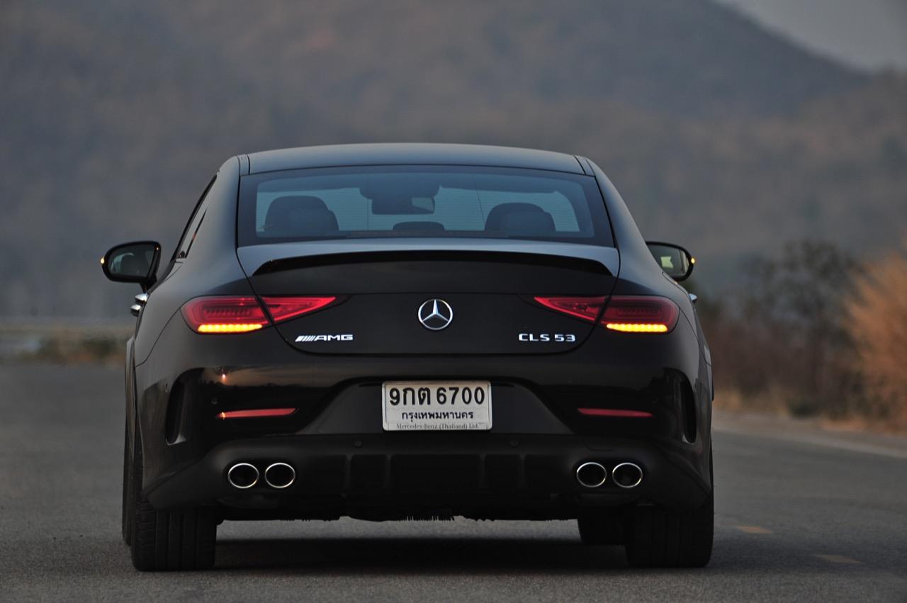 การปรับหน่วงของชุดบังคับเลี้ยว Active Steering Assist ขึ้นตรงกับสปีดความเร็วและโหมดขับเคลื่อนที่เลือก ระบบควบคุมจะมอบน้ำหนักพวงมาลัยที่พอดิบพอดีกับความเร็วที่ใช้ในขณะนั้น ทำให้ CLS 53 AMG เป็นซาลูนไซส์กลางตัวยาวที่ควบคุมได้ง่ายแทบจะไม่แตกต่างไปจาก BMW 540i xDrive รถคู่แข่งที่มีเครื่องยนต์ 6 สูบเรียงเหมือนกัน แต่มีกำลังน้อยกว่าเจ้าตราดาวสายโหดรุ่นนี้พอสมควร AMG Performance 4MATIC+ all-wheel drive พร้อมชุดกระจายแรงบิด fully variable torque distribution รับหน้าที่จัดสรรแรงบิดไปยังล้อต่างๆ ผ่านเซนเซอร์ที่คอยตรวจจับลักษณะของการขับ แรง G การเร่งหรือเลี้ยว องศาของพวงมาลัยและสปีดความเร็ว ส่วนตัวเลขสมรรถนะของ CLS 53 AMG เร่งจาก 0-100 กิโลเมตรต่อชั่วโมงใน 4.5 วินาที เป็นอัตราเร่งที่อยู่ในกลุ่มเดียวรถสปอร์ตกำลัง 400 แรงม้า ส่วนความเร็วสูงสุดถูกจำกัดเอาไว้ด้วยระบบอิเล็กทรอนิกส์ที่ 250 กิโลเมตรต่อชั่วโมง อัตราสิ้นเปลืองเชื้อเพลิงทั้งในและนอกเมืองเคลมมาที่ 8.7 ลิตร ต่อระยะทาง 100 กิโลเมตร ขับจริงๆ ในเมืองกินเชื้อเพลิงประมาณ 9.7 กิโลเมตรต่อลิตร ส่วนนอกเมือง ถ้าขับเรื่อยๆ ไม่กดคันเร่งลงลึกบ่อยครั้ง อยู่ที่ 12.4 กิโลเมตรต่อลิตร อัตราการปล่อยคาร์บอนไดออกไซด์อยู่ที่ 200 กรัม ต่อระยะทาง 1 กิโลเมตร การออกแบบภายนอกและภายในที่เน้นบรรยากาศของรถสปอร์ตกับไดนามิกของการควบคุมบนแนวทางการปรุงแต่งจากสำนัก AMG จุดเด่นของเครื่องยนต์เบนซินแบบใหม่ขนาด 3.0 ลิตร คือ ระบบเทอร์โบชาร์จเจอร์และคอมเพรสเซอร์ไฟฟ้า EQ Boost Assist บอกเลยว่าแรงและขับสนุกมาก