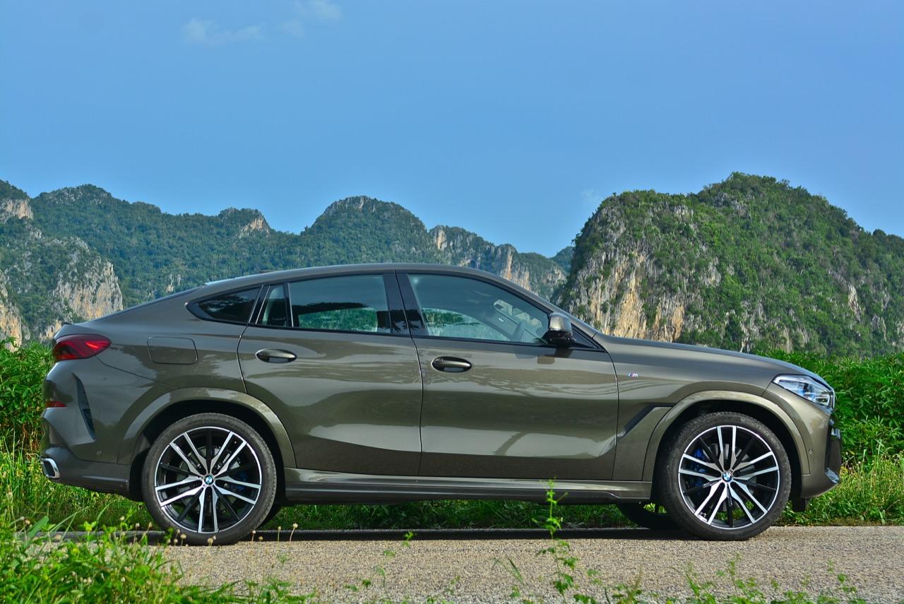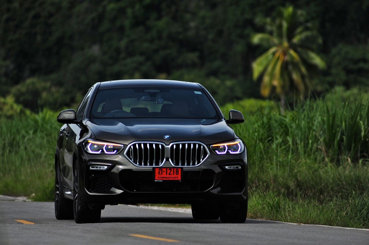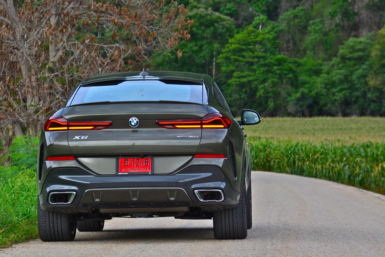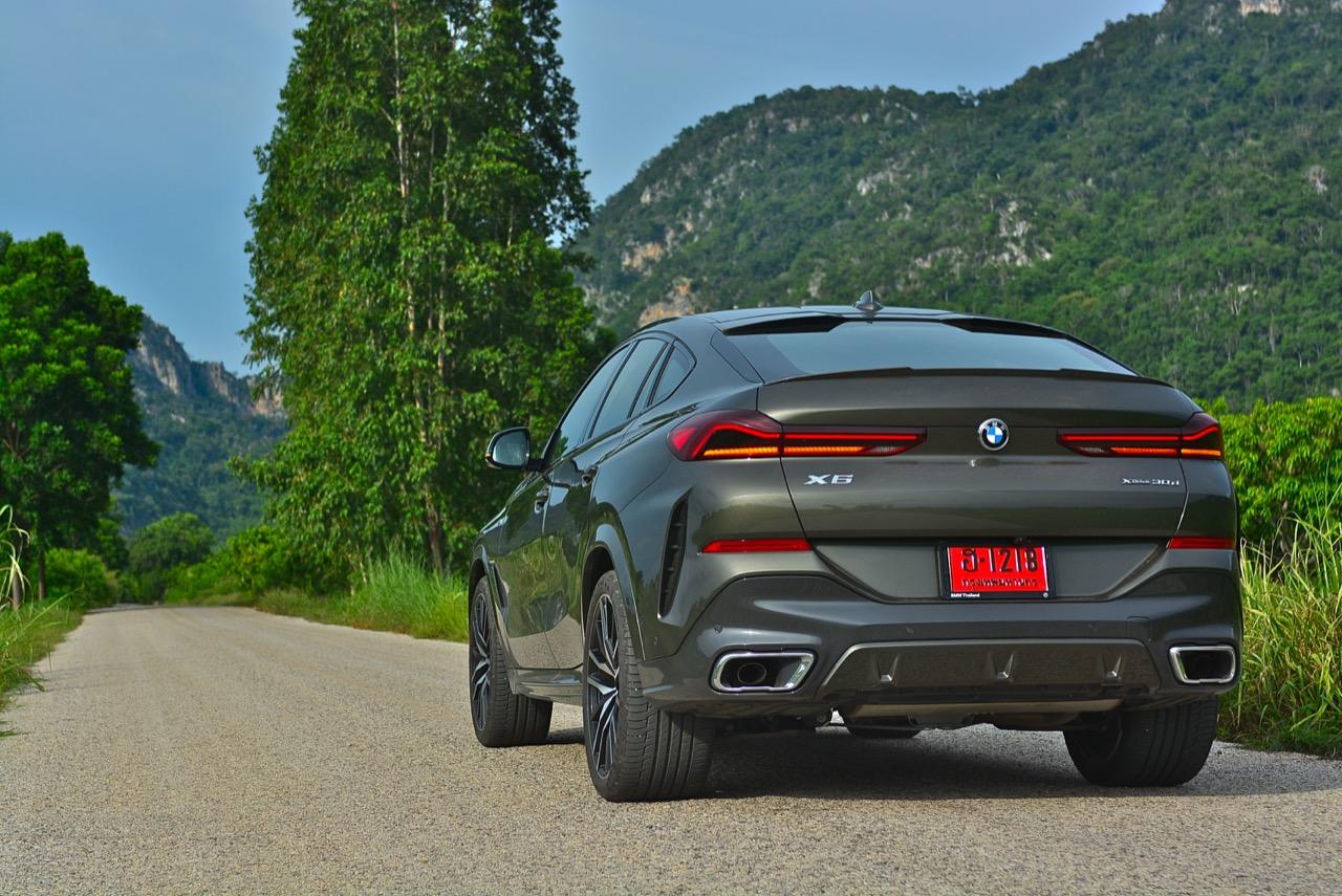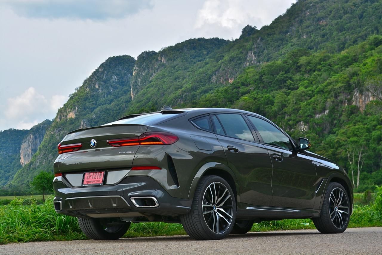 X6 รุ่นดีเซล 3.0 ลิตร เทอร์โบ มีน้ำหนักตัวเบากว่ารุ่นที่แล้วเล็กน้อย นอกจากนั้นมันยังขับได้ดีขึ้น เพราะได้การปรับเซ็ตช่วงล่างหน้าแบบปีกนกคู่ใหม่หมด ด้านหลังแบบ 5 Link ก็มีการปรับใหม่ ทำให้การบังคับควบคุมส่วนท้ายดีกว่าเดิม มันเป็นรถที่คล่องตัวในเมืองและโลดโผนโจนทะยานบนไฮเวย์ข้ามจังหวัดได้อย่างมาดมั่น เครื่องยนต์ดีเซลยังประหยัดใช้ได้ เชื้อเพลิง 1 ถังลากกันยาวๆ เฉียด 800 กิโลเมตร หรือมากกว่านั้นถ้าคุณขับไม่เร็ว แต่ใครจะซื้อสปอร์ตเอสยูวีราคา 7 ล้านมาคลานเล่นกันละครับ ช่วงล่างที่นุ่มสบายเหมาะกับเจ้าของ X6 รุ่นเก่าที่เริ่มมีอายุมากขึ้น ความเป็นผู้ใหญ่ของมันไม่ได้อยู่ที่รูปลักษณ์ แต่อยู่ที่ความสบายของระบบรองรับ ผมเคยขับทดสอบทางไกลในรถ X6 Gen 1 และซัดหนักๆใน X6 M Gen 2 ที่เซปัง ในรถ X6 Gen 3 นั้น ช่วงล่างที่นิ่มนวลของมันจะทำให้คุณรู้สึกดีเมื่อต้องขับทั้งวัน มันเป็นรถที่เหมาะกับการใช้ชีวิตกลางแจ้ง ซึ่งกำลังเป็นที่นิยมของคนรุ่นใหม่ แถมยังวิ่งในเมืองได้อย่างคล่องตัว อย่างที่บอกว่าช่วงล่างดูดซับแรงสะเทือนได้ดี (มาก) แม้จะไม่ใช่ Adaptive Air Suspension แต่ด้วยค่าที่คงที่ทำให้ผมรู้สึกชอบ ช่วงล่างแบบธรรมดาดูจะไม่เหมาะสมกับระดับของราคาค่าตัว แต่เมื่อคิดถึงการใช้งานระยะยาว บนถนนที่มีความหลากหลายของประเทศไทย ช่วงล่างถุงลมจะมีค่าใช้จ่ายสูงกว่าเห็นๆ ความเปลี่ยนแปลงหลักๆ นอกจาก Dynamic ที่ดีขึ้นผิดหูผิดตาแล้ว X6 ใหม่ยังมาพร้อมกับรูปลักษณ์ที่สวยงามและดุดัน บั้นท้ายของมันเป็นจุดที่น่ามองมากที่สุด ส่วนกระจังหน้าที่มีไฟอยู่ข้างในก็ถือเป็นเรื่องที่ BMW พยายามจะเอาชนะ Mercedes-Benz ด้วยลูกเล่นที่ยังไม่มีใครทำ ไฟท้าย ฝาท้ายและท่อไอเสียแบบใหม่ที่ลงตัว ช่วยเสริมความดุดันให้กับ X6 ราวกับหลุดออกมาจากโลกอนาคต ห้องโดยสารแนวอนุรักษ์นิยมที่ยังคงตามหลัง Mercedes-Benz ในด้านการออกแบบ แต่ X6 ใช้การตกแต่งอย่างแพรวพราว ด้วยวัสดุราคาแพง สามารถรองรับการใช้งานจริงได้อย่างเต็มที่ ระบบ iDRIVE เวอร์ชั่นล่าสุด พัฒนาไปไกลลิบ สารพัดปุ่มบนซุ้มคันเกียร์ใช้งานได้ง่าย สามารถเข้าถึงองค์ประกอบหลักของตัวรถได้อย่างรวดเร็ว สิ่งเหล่านี้จะช่วงสร้างความพึงพอใจในระยะยาว ข้อมูลของระบบนำทางแบบใหม่ที่ละเอียดยิบย่อย การปรับตั้งต่างๆที่ต้องใช้เวลาในการเรียนรู้กันพอสมควรเพราะเยอะเหลือกำลังลาก! สิ่งที่ชอบก็คือ เครื่องเสียง Harman Kardon Premium Logic 7® มาพร้อมลำโพง 16 ตัว รวมซัฟวูฟเฟอร์ใหญ่ขนาดกะละมังใบเล็ก กำลังขับ 600 WATTS พร้อมระบบ SURROUND SOUND TECHNOLOGY แม้จะไม่เนียนเท่า B&W ใน X6 xDRIVE M50d แต่มีความคมชัดหนักแน่นครบถ้ว