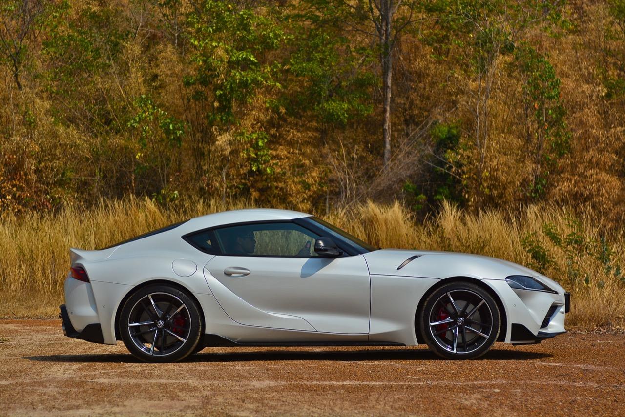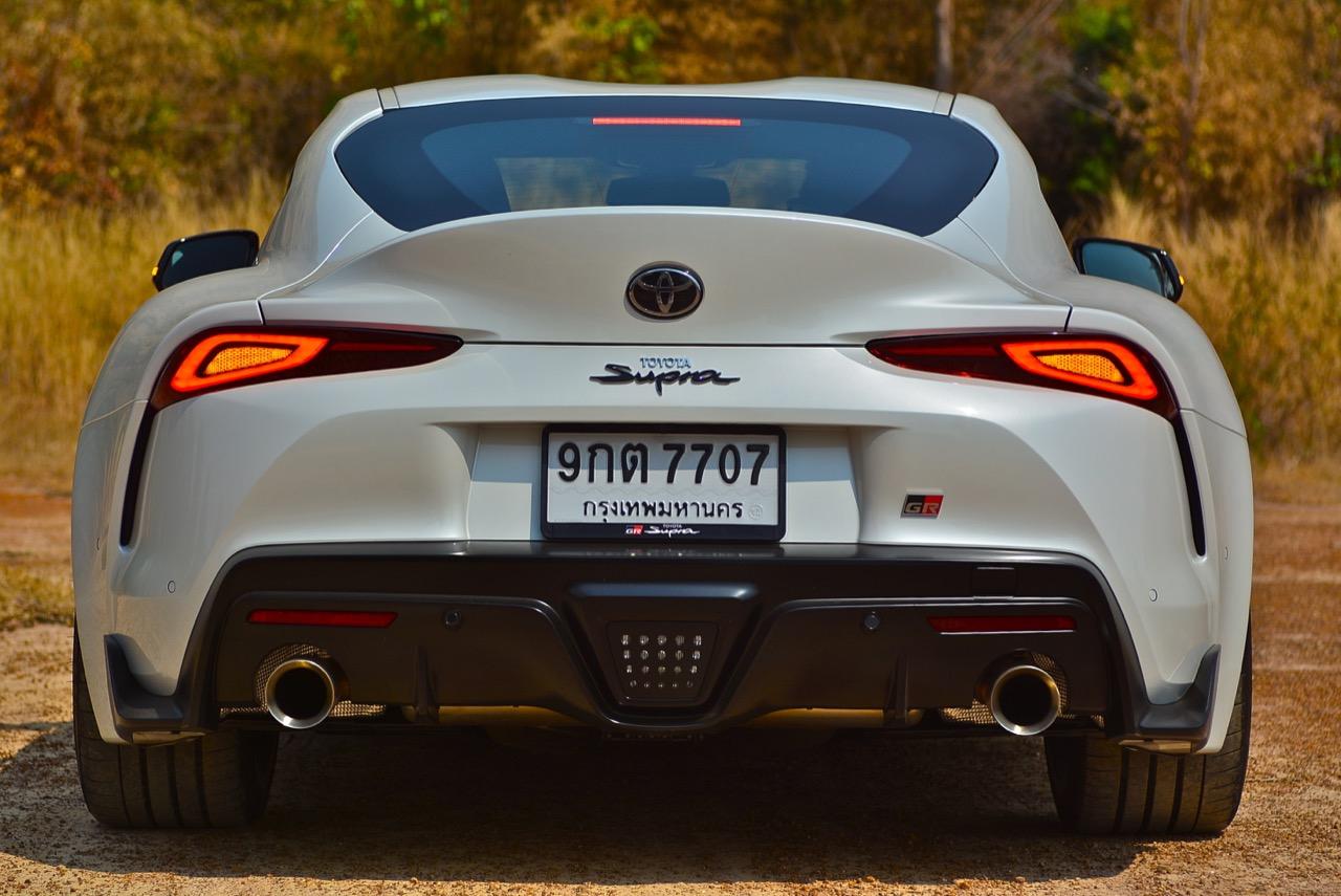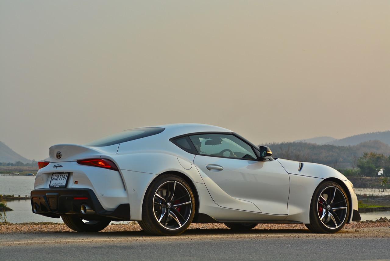 แพลตฟอร์มใหม่ที่ยอดเยี่ยม เครื่องยนต์ 6 สูบเรียงเทอร์โบเดี่ยวคล้ายรุ่นเดิม แต่ทันสมัยและมีประสิทธิภาพสูงกว่าเครื่อง 2JZ GTE ที่กลายเป็นตำนานไปแล้ว อันที่จริงคุณควรจะลืมเครื่องเก่ารุ่นนี้ไปได้แล้วละครับ เพราะความทันสมัยไฮเทคจากเครื่องยนต์ B58B30C ของ BMW มีอะไรให้เล่นและทันสมัยมากกว่าเยอะ กำลังสูงสุด 340 แรงม้า พร้อมชุดเกียร์ ZF แบบใหม่ ที่มีให้สับถึง 8 สปีด ช่วงล่างใหม่ที่มีความโดดเด่น กับภาพลักษณ์แนวรถสปอร์ตญี่ปุ่นเจ้าแห่งตำนานการซิ่ง ซึ่งมีทั้งคนที่ชอบและไม่ชอบ ราคา 4.9 ล้านบาท ของ Toyota GR Supra A90 เปิดทางเลือกให้กับลูกค้าที่กำลังเล็ง Porache Cayman แต่เงินไม่พอ สามารถสัมผัสประสบการณ์ของการควบคุมพร้อมกลิ่นอายของรถซิ่ง ที่ผสมผสานกันระหว่างความเฉียบคมของดาบซามูไร และความอร่อยของไส้กรอกเยอรมันที่ถูกย่างมาเป็นอย่างดี เสน่ห์ของ Supra คือการที่มันเป็นรถที่ผู้คนให้ความสนใจ ซึ่งก็มีทั้งคนที่ชอบและไม่ชอบ รูปลักษณ์ด้านหน้ามีกลิ่นไอของ Toyota FT-1 Concept ไฟหน้า LED กับไฟ Daytime Running Lights ดูเรียบร้อยไม่ค่อยจะดุร้ายสายโหดเท่าที่ควร คล้ายกับการซ่อนความร้ายกาจเอาไว้ภายใต้ใบหน้าที่อ่อนโยน! โป่งซุ้มล้ออย่างใหญ่ทั้งหน้าและหลังทำให้ทรงด้านข้างของมันคล้ายกับขวดโค้ก ช่องอากาศด้านข้างโค้งเว้าและเข้ากับแนวเส้นโค้งของบานประตู กระจกที่กรอบปิดกับผืนหลังคาและเสาหน้าทำออกมาคล้ายกับค็อกพิตของเครื่องบินขับไล่ หลังคาที่ออกแบบให้มีความเตี้ยมากกว่าเดิมทำให้การเข้า-ออกจากห้องโดยสารต้องก้มหัวกันพอสมควรไม่งั้นมีหวังหัวโขกกับหลังคาแน่นอน Supra ใหม่ เป็นรถที่กำเนิดขึ้นโดยมีการวิจัยและพัฒนาไปพร้อมๆ กับ BMW Z4 รุ่นใหม่รหัส G29 อย่างไรก็ตาม GR Supra จะมีความชัดเจนกว่าในแง่ของการเป็นรถสปอร์ตขับเคลื่อนล้อหลังที่แตกต่างจากสปอร์ตโรดสเตอร์เปิดประทุนสองที่นั่งอย่าง BMW New Z4 ทั้งคู่ขับได้ดีสูสีกัน แต่ GR Supra จะดิบกว่า และมีตัวถังที่แข็งแรงกว่า เนื่องจากเป็นสปอร์ตคูเป้หลังคาแข็งไม่ใช่ Z4 ที่มีตัวถังเป็นรถเปิดประทุนโรดสเตอร์สองที่นั่งซึ่งต้องใช้การดามแชสซีเพื่อป้องกันอาการบิดตัว แนวคิดของวิศวกร Toyota ที่นำเอา Porsche Cayman มาเป็นรถที่ใช้เปรียบเทียบเมื่อลงมือวิจัยพัฒนา Supra รุ่นใหม่ อันที่จริงแนวทางแบบนี้มันก็คือสิ่งที่ Toyota อยากให้ Toyota 86 มันเป็นมาโดยตลอด แค่นึกอยากจะขับก็สนุกแล้ว ว่าถ้าเราได้รถที่มีลักษณะเหมือน 86 แต่ใหญ่ขึ้นมาอีกนิด มีทรงที่ดุดันขึ้น เกาะถนนมากยิ่งขึ้นแล้วใส่เครื่องยนต์ที่แรงกว่ามาก และมากพอให้เอาไปไล่กวดรถสปอร์ตจากฝั่งยุโรปได้ มันจะดีขนาดไหน? แน่นอนว่ามันดีชั