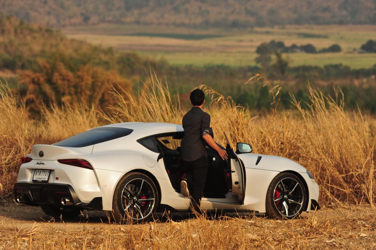 ช่วงเวลาที่ขับทดสอบตลอด 7 วัน มีจอดแวะตามร้านอาหารหรือปั๊มน้ำมันข้างทาง ก็มักจะมีคนที่ชอบรถเดินเข้ามาคุย เพื่อสอบถามด้วยความอยากรู้อยากเห็นว่า GR Supra ใหม่นั้นดีจริงหรือเปล่า? ยกตัวอย่างเช่น โอ้ ตัวจริงมันสวยกว่าในรูปนะผมว่า นี่กำลังดูอยู่เลย ว่าแต่มันขับดีเท่ากับ Z4 มั้ยเนี่ย! หรืออีกคนนึง เป็นเด็กหนุ่มที่เดินมาถามผมว่า มันยังใช้เครื่อง 2JZ อยู่หรือเปล่าครับน้า! บางคนก็แค่สงสัยอย่างพี่แท็กซี่ที่ลงทุนเดินเข้ามาถามดื้อๆ ว่ามันคือ Toyota รุ่นไหน? เพราะไม่เคยเห็น Toyota ทำรถหน้าตาประหลาดแบบนี้มาก่อน (นั่นแสดงว่าเค้ายังไม่เคยเห็น GT86 ที่มีหน้าตากุดๆ ประหลาดๆ พิกลอยู่) เห็นได้ชัดว่าจุดประสงค์ของ Supra ใหม่ที่บอสใหญ่ของค่ายสามห่วง วาดฝันให้มันมาปลุกเร้าอารมณ์ความรักที่คนมีต่อรถสปอร์ตของ Toyota นั้น นับว่าเกิดผลสำเร็จ ยิ่งถ้าคิดดูดีๆ ว่า Supra รุ่นที่แล้วเลิกขายไปนานกว่า 20 ปีแล้วนั้น ยิ่งถือว่ารถรุ่นใหม่ทำออกมาได้ดีมาก รูปลักษณ์ที่ดูแปลกตาแต่ผสมผสานเส้นสายได้อย่างสมบูรณ์แบบ ผมอยากให้หน้ามันโหดกว่านี้ แต่เฮีย Tada หัวหน้าทีมวิศวกรผู้ลงมือพัฒนา GR Supra บอกว่า หน้าแบบนี้แหละดูดีที่สุดแล้ว!