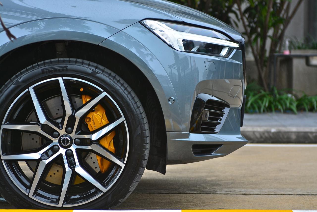 แรงบิด 670 นิวตันเมตร หลั่งไหลออกมาให้ใช้งานอย่างต่อเนื่องและยาวนาน คุณสามารถขับลากรอบ ตั้งแต่ 2,000 รอบต่อนาที เป็นต้นไปจนถึงรอบสูงสุดที่ 6,700 รอบต่อนาที เสียงเครื่องยนต์ในรอบสูงแทบจะไม่ลอดเข้ามาให้ได้ยินในห้องโดยสาร นี่คือหนึ่งในเครื่องยนต์ตระกูล Twin Engine ที่ประจำการอยู่ใน XC90 S90 และ V90 รวมถึงV60 และ S60 ในตระกูล T8 Twin Engine คุณจะสัมผัสได้ถึงแรงบิดที่มันเทออกมา ทุกครั้งที่ลงคันเร่งลึก ก็จะพบกับแรงกระชากที่ทำให้รถพุ่งลิ่วๆ จนต้องระวังเรื่องสปีดความเร็ว ระบบเบรกของ Akebono ที่ถูกอัพเกรดเพิ่มประสิทธิภาพ เชื่อมโยงการทำงานกับระบบไฮบริด เป็นระบบเบรกแบบสะสมพลังงานไฟฟ้า คาร์ลิปเปอร์ 6 พอตหน้า พร้อมจานเบรกใหญ่ยักษ์ทำให้การชลอความเร็ว มีประสิทธิภาพมากกว่า XC60 T8 รุ่นมาตรฐานอย่างเห็นได้ชัด ระยะเบรกและสัมผัสของแป้นเบรกแตกต่างไปจากรถ T8 รุ่นปกติ การควบคุมในย่านความเร็วเดินทางด้วยโหมด Hybrid แค่กดคันเร่งลงลึกมันก็จะพุ่งทันที โดยไม่มีความจำเป็นจะต้องไปปรับโหมดของการตอบสนองให้เป็นโหมดสูงสุดหรือ Polestar Engineered แต่อย่างใดทั้งสิ้น