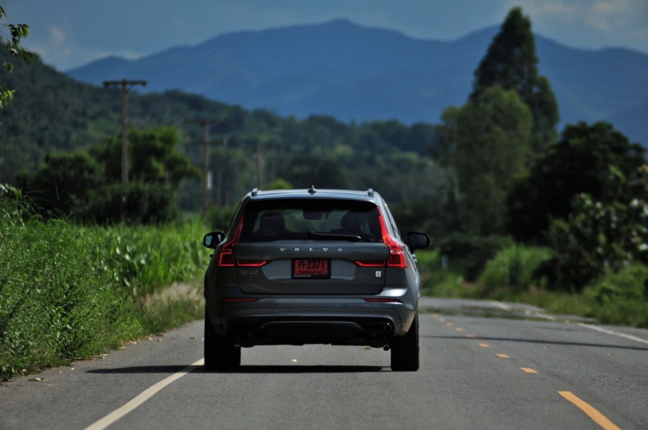 ชาร์จไฟจนเต็ม ไม่ว่าจะชาร์จที่บ้านด้วยแท่นชาร์จของ Volvo หรือชาร์จตามสถานีบริการชาร์จไฟที่เร่ิมหนาตาตามห้างดังของกรุงเทพฯ Volvo เคลมว่า XC60 T8 AWD Polestar Engineered สามารถวิ่งด้วยมอเตอร์เพียวๆ โดยเครื่องยนต์ไม่ทำงานได้ไกล 40 กิโลเมตรแต่เมื่อลองวิ่งจริง ทำระยะทางได้ประมาณ 26-30 กิโลเมตร หากบ้านและที่ทำงานของคุณไม่ไกลกันมากโดยมีระยะทางไป-กลับไม่เกิน 30 กิโลเมตร เจ้าไวกิ้งจอมโหดคันนี้ก็แทบจะไม่ได้ใช้น้ำมันเชื้อเพลิงเลยแม้แต่หยดเดียว การวิ่งด้วยมอเตอร์ไฟฟ้าประสิทธิภาพสูงในเมือง ท่ามกลางความเงียบ ปราศจากเสียงการทำงานของเครื่องยนต์ รวมถึงไม่มีการปล่อยมลพิษ ตลอดระยะทางเกือบ 30 กิโลเมตร ช่วยทำให้รู้สึกสงบและสะอาด! สิ่งที่อยู่ใต้ฝ่าเท้าของคุณก็คือฝูงม้า 422 ตัว ที่กำลังหลับใหลรอจังหวะเวลาที่จะถูกกระตุ้นให้ตื่นขึ้นมา พร้อมกับการเทแรงบิดในแบบที่จะทำให้คุณตกใจ! ในเมืองกับโหมด Hybrid หากชาร์จไฟใส่แบตเตอรี่จนเต็ม มอเตอร์ไฟฟ้าในระบบไฮบริดจะเข้ามาจัดการกับระบบขับเคลื่อนโดยตัดการทำงานของเครื่องยนต์ลงอย่างสิ้นเชิง เมื่อแบตฯเหลือกำลังไฟน้อยลง เครื่องยนต์จะติดขึ้นมาอย่างแผ่วเบาเพื่อรับหน้าที่ต่อจากมอเตอร์ไฟฟ้า เป็นการทำงานในระบบ parallel hybrid ไม่ว่าจะเบรกหรือเร่งความเร็ว เจนเนอเรเตอร์จะชาร์จไฟเข้าไปเก็บในแบตฯที่วางอยู่กึ่งกลางของตัวรถด้านล่างเพื่อสะสมพลังงานไฟฟ้าเอาไว้ใช้ในเวลาเร่งความเร็วเพื่อแซง การตัดต่อระหว่างการขับเคลื่อนด้วยมอเตอร์ หรือเครื่องยนต์ หรือทั้งสองระบบผสมผสานกัน ปราศจากอาการกระตุกกระชาก เครื่องยนต์มีเสียงการทำงานปกติไม่ดังจนรู้สึกรำคาญ ที่ยอดเยี่ยมก็คือ ความเนียนของชุดส่งกำลังไฮบริด 8 สปีด เกียร์ออโต้ของ XC60 T8 AWD Polestar Engineered ปรับอัตราทดใหม่ เพื่อให้เข้ากับย่านกำลังแรงบิดที่เพิ่มมากขึ้น เกียร์ทำงานตัดต่อขึ้น-ลงไหลลื่นและไม่มีอาการกระตุกแม้จะลงคันเร่งเร็วๆ ในบางจังหวะที่ต้องการเร่งแซงรถช้า