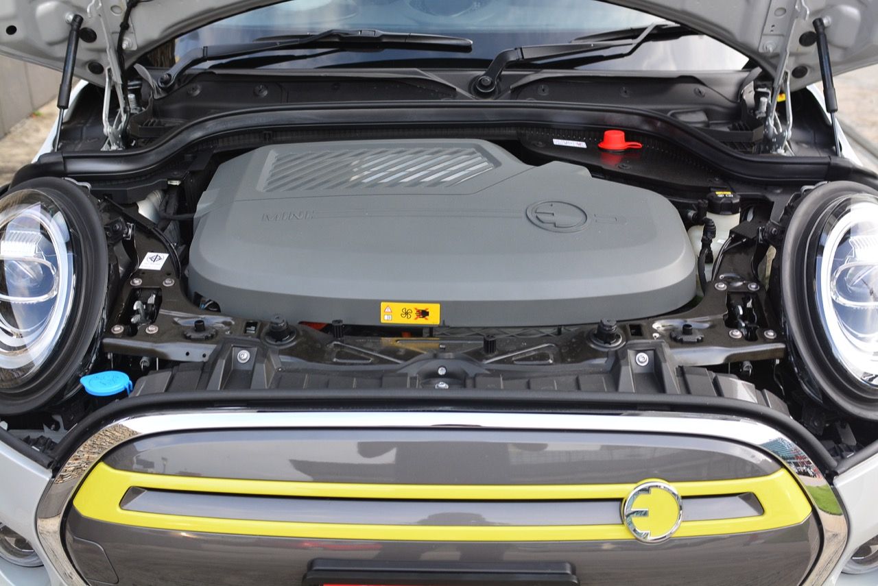 เมื่อมองดู MINI Cooper SE ยานยนต์พลังงานไฟฟ้ารุ่นแรกของ MINI นี่คือรถเล็กที่สืบทอดตำนานความคลาสสิกของรูปลักษณ์ ตามแบบฉบับของรถ MINI Hatch 3 ประตู ขับเคลื่อนด้วยล้อคู่หน้า พร้อมสมรรถนะและสัมผัสแบบ Hot Hatch จากการเทแรงบิดด้วยมอเตอร์ไฟฟ้าประสิทธิภาพสูง การใช้ไฟฟ้าขับเคลื่อน ทำให้มันเป็นยานพาหนะที่ไร้การปล่อยมลพิษ ระบบส่งกำลังและวงจรอิเล็กทรอนิกส์ที่ควบคุมการจ่ายพลังงานไฟฟ้าไปยังระบบต่างๆ ติดตั้งอยู่บริเวณด้านหน้าของรถ ในโครงสร้างรูปทรงท่อที่ออกแบบให้มีความแข็งแรง รองรับมอเตอร์ขับเคลื่อนขนาดใหญ่ที่ติดตั้งอยู่ด้านหน้า ส่วนแบตเตอรี่แรงดันสูง ที่ได้รับการพัฒนาขึ้นใหม่สำหรับวางใน Cooper SE ประกอบไปด้วยเซลล์แบตเตอรี่แบบลิเทียมไอออน จำนวน 12 โมดูล ติดตั้งในรูปทรงตัว T บริเวณใต้พื้นห้องโดยสาร การวางตำแหน่งดังกล่าวเพื่อการกระจายน้ำหนักที่สมดุล ชุดแบตฯ จุพลังงานไฟฟ้ารวม 32.6 กิโลวัตต์ชั่วโมง Cooper SE พลังงานไฟฟ้า ออกแบบให้มีจุดศูนย์ถ่วงต่ำกว่า MINI Cooper S ถึง 30 มิลลิเมตร ตัวเลขการกระจายน้ำหนักอยู่ในเกณฑ์สมมาตร เพื่อการควบคุมที่ดี โดยเฉพาะตอนเข้าโค้ง จากการวางตำแหน่งของแบตเตอรี่ที่สามารถกระจายน้ำหนักให้มีความสมดุลทั่วทั้งคัน