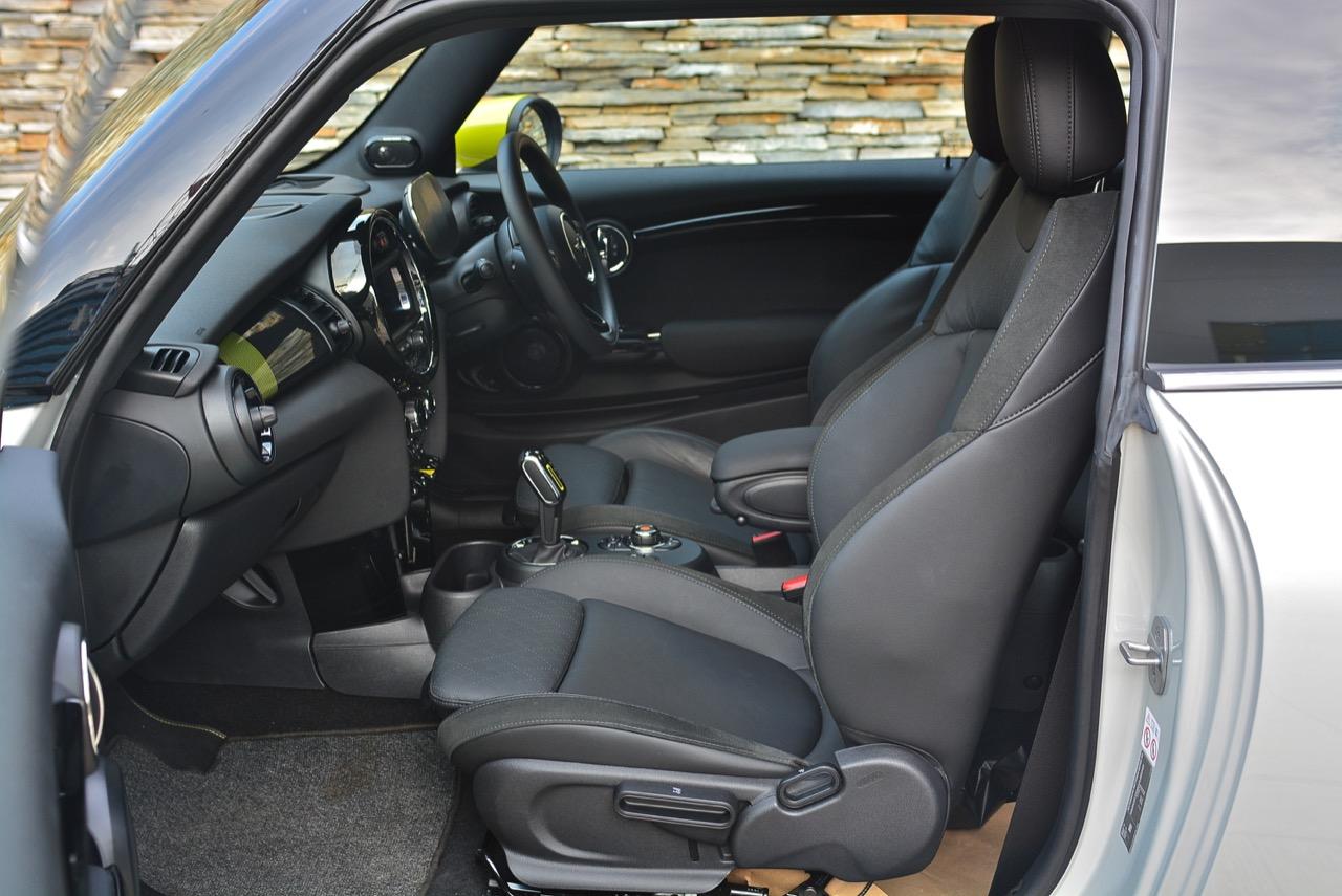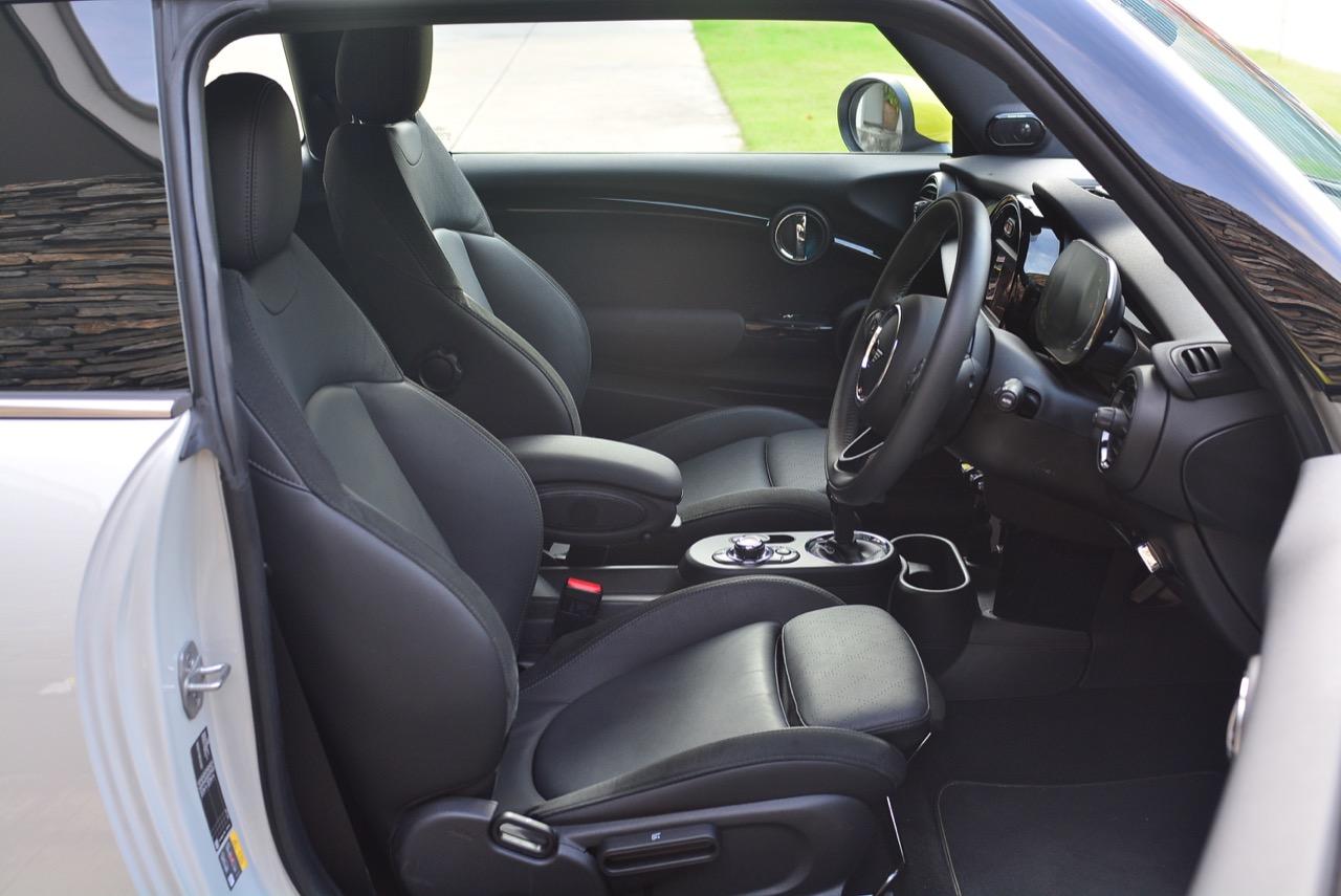 เช่นเดียวกับงานดีไซน์ภายนอกห้องโดยสารของ Cooper ยุคใหม่ทุกรุ่นที่อุดมไปด้วยอุปกรณ์หน้าตาอ่อนเยาว์ Cooper SE พลังงานไฟฟ้า มีการออกแบบภายในที่เน้นควาสดใหม่ จากรูปแบบและฟังก์ชันการใช้งาน วัสดุคุณภาพสูงและความสมบูรณ์ของโครงสร้างที่แข็งแรง ส่วนวงกลมที่คุ้นเคยตรงกลาง เป็นที่ตั้งของหน้าจอสาระบันเทิงตัวควบคุมเครื่องเสียง ระบบนำทาง การเชื่อมต่อและการปรับตั้ง แถวของสวิตช์สีเงินแบบมันวาวที่อยู่ต่ำลงมาก็ยังอยู่เหมือนเดิม รวมถึงเครื่องเสียงเกรดดีของ Harman/Kardon ใน Mini ไฟฟ้า การจัดวางตำแหน่งที่เน้นการใช้งานของคนขับและผู้โดยสารตอนหน้า ช่วยให้ผู้ขับขี่สามารถสลับระหว่างโหมดการขับที่เป็นเอกลักษณ์ แผงหน้าปัดมาตรวัดดิจิทัลขนาด 5.5 นิ้ว ซึ่งจะแสดงระดับการชาร์จแบตเตอรี่ ความเร็ว คำนวณระยะทางต่อกระแสไฟฟ้าในแบตฯ ที่สามารถวิ่งถึง และข้อมูลที่สำคัญอื่นๆ SE ไฟฟ้า ทุกรุ่นติดตั้งเบาะนั่งคู่หน้าแบบอุ่น และระบบควบคุมสภาพอากาศแบบดูอัลโซน พร้อมขอบหน้าปัดย่อยที่สูงขึ้นเพิ่มความพิเศษ เช่น การควบคุมระยะจอดด้านหลัง การชาร์จโทรศัพท์แบบไร้สาย กล้องมองหลัง และระบบควบคุมการทรงตัวแบบไดนามิก Mini Cooper SE ติดตั้งถุงลมนิรภัย 8 จุด เพื่อปกป้องผู้โดยสารในกรณีที่เกิดอุบัติเหตุ นอกจากขับสนุกและไม่ต้องเติมน้ำมันแล้ว การไม่ปล่อยมลพิษ พร้อมๆกับการวิ่งอย่างเงียบเชียบ รวมถึงเร่งความเร็วน้องๆตัวแสบอย่าง Cooper JCW ในช่วง 0-96 กิโลเมตร นั้นเร็วมาก การยึดเกาะในสไตล์รถโกคาร์ท ทำให้มันขับสนุกเหมือน Cooper S แต่จ่ายถูกกว่า และได้ของตกแต่งกับออปชั่นที่เหมือนกัน จุดที่ชอบก็คือ ช่วงเร่งความเร็ว แรงดึงที่เกิดจากแรงฉุดลากหรือแรงบิดของมอเตอร์ไฟฟ้านั้นเหลือรับประทาน ความมันหลังพวงมาลัยจากฟีลลิ่งของตัวรถที่จูนมาดี และความคล่องตัวเมื่อขับในเมือง เป็นมาตรฐานของรถ MINI ทุกรุ่น ที่ถูกบรรจุอยู่ในยานยนต์พลังงานไฟฟ้าคันแรกของแบรนด์รถเล็กจากอังกฤษ ซึ่งมีเจ้าของเป็นแบรนด์หรูจากเยอรมนีอย่าง BMW Group บางสิ่งบางอย่างของมัน ทำให้ผมรู้สึกชอบ Cooper SE มากกว่า i3S โดยเฉพาะการเร่งความเร็วในสไตล์ของ MINI พร้อมอาการทอร์คสเตียร์นั้น ลืมไม่ลงจริงๆ